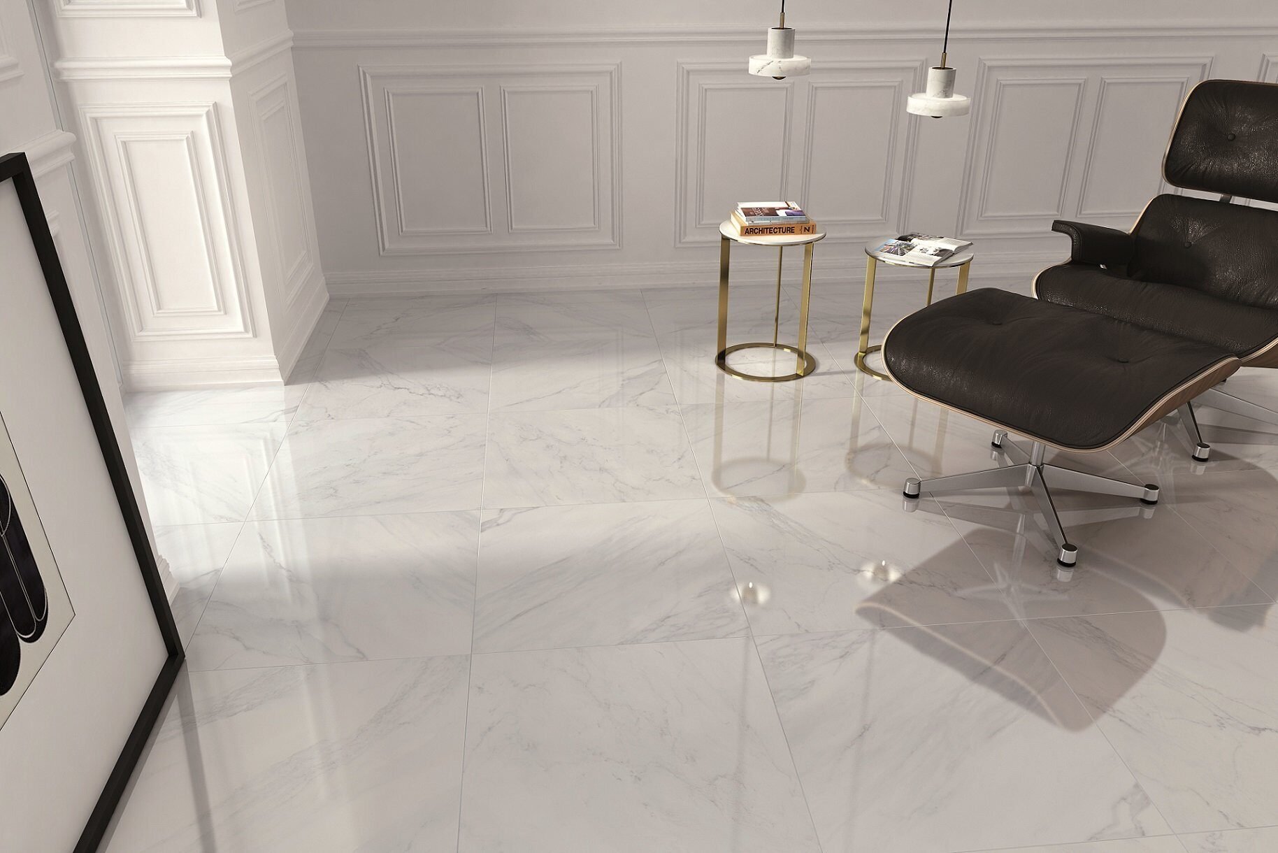 Напольная плитка под мрамор в интерьере
