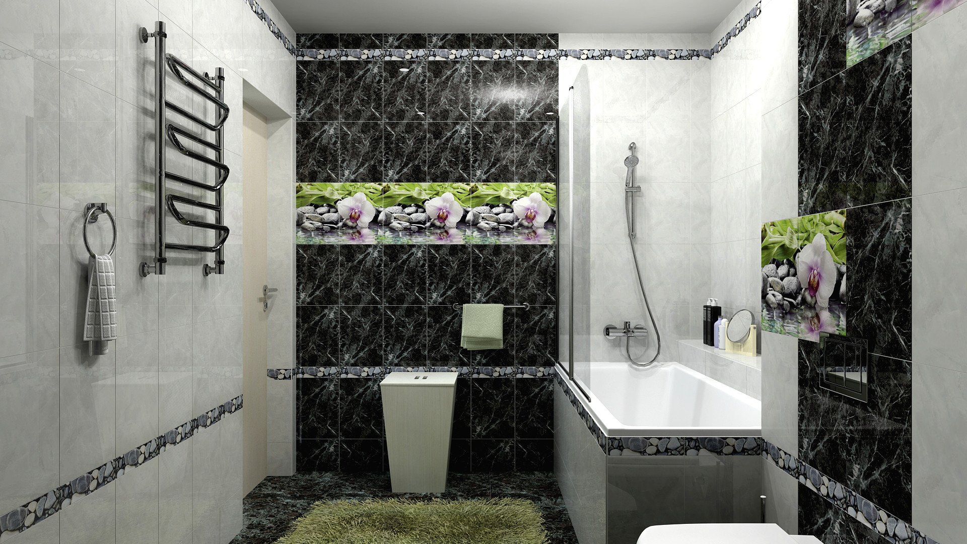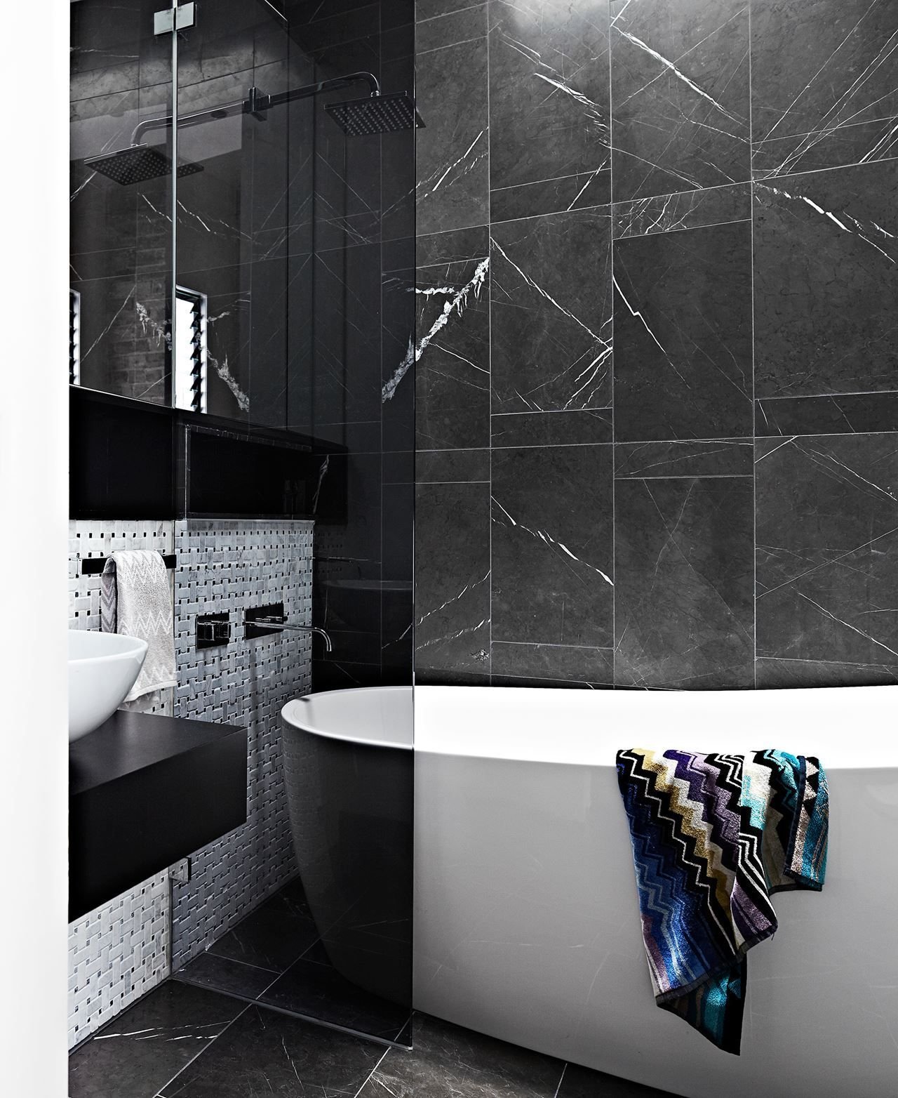 Ванная с черной плиткой