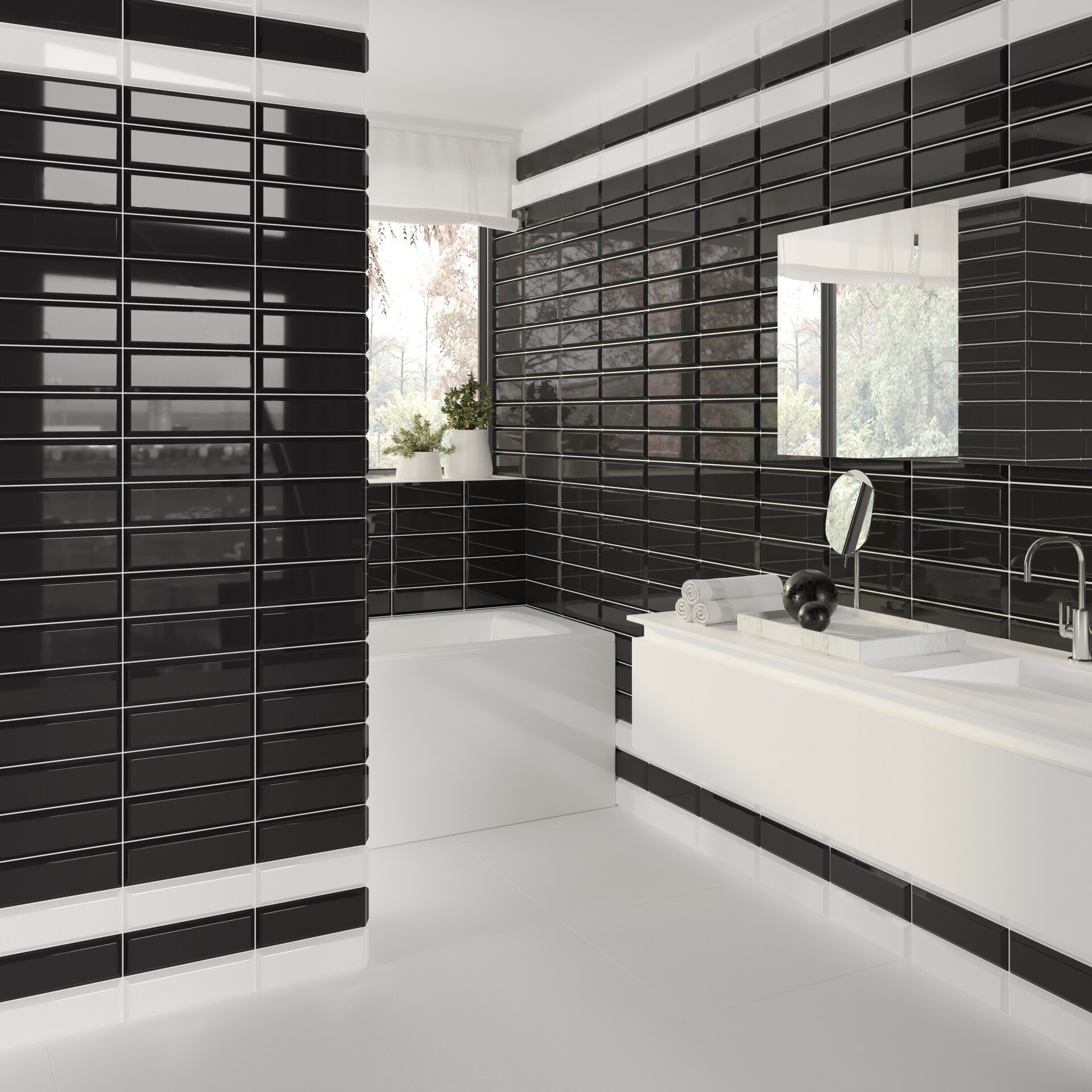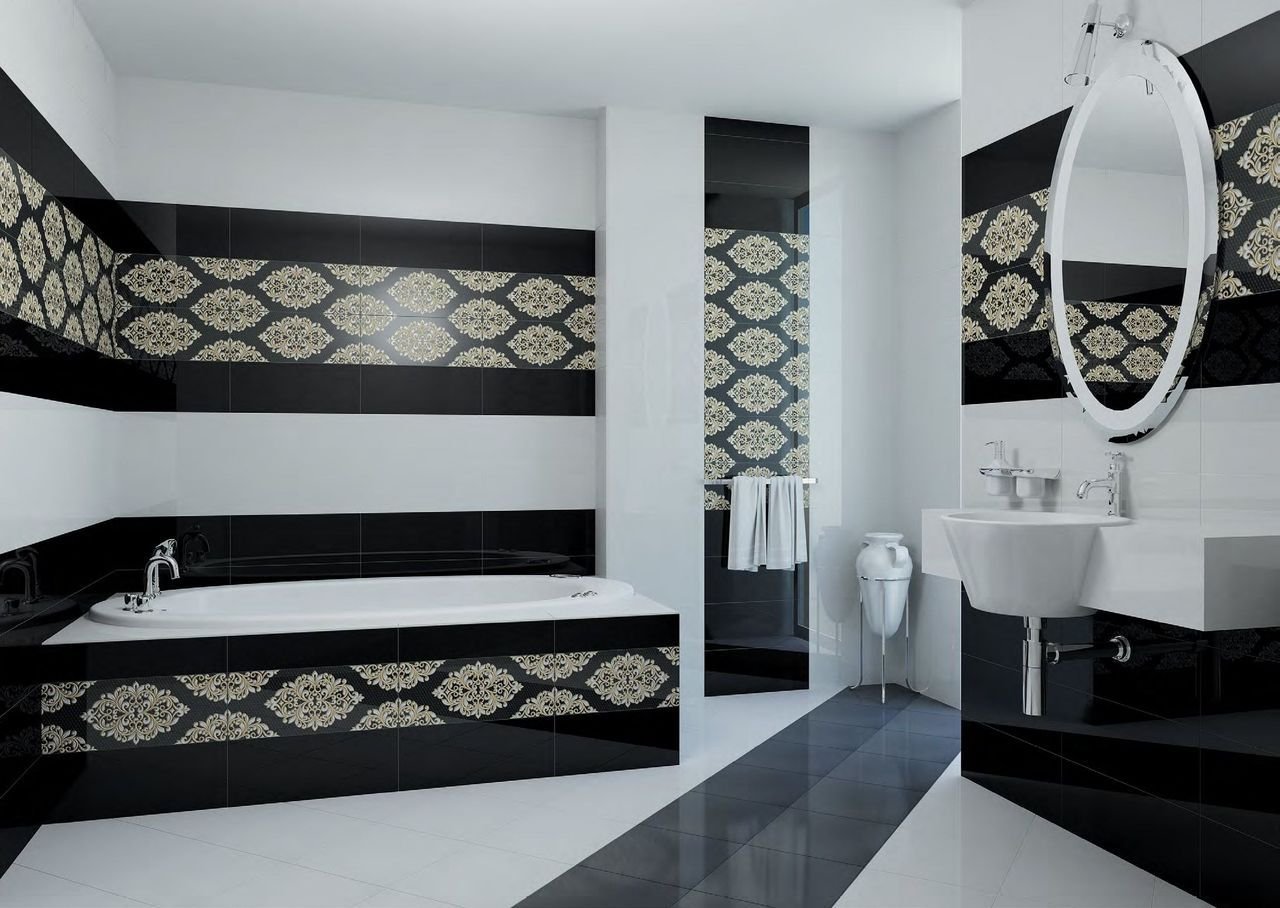 Черно белая плитка в ванной