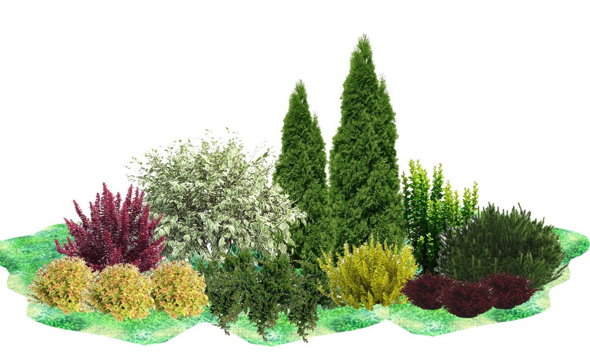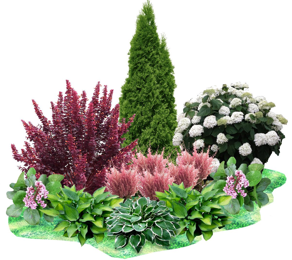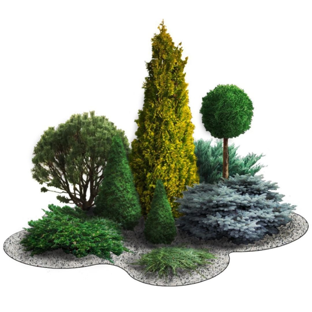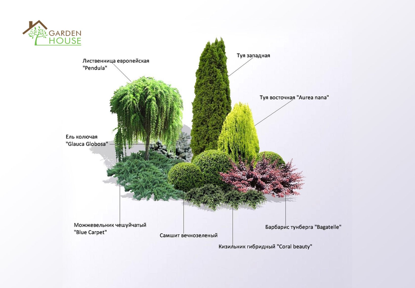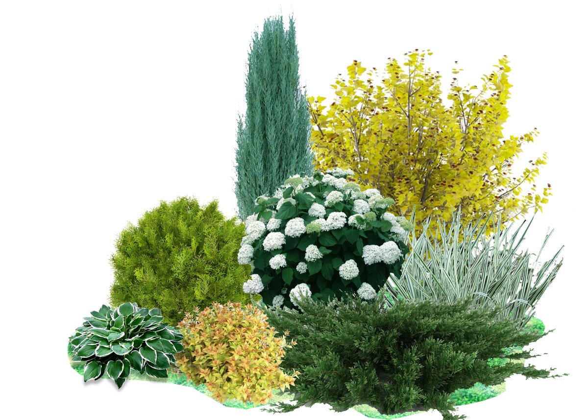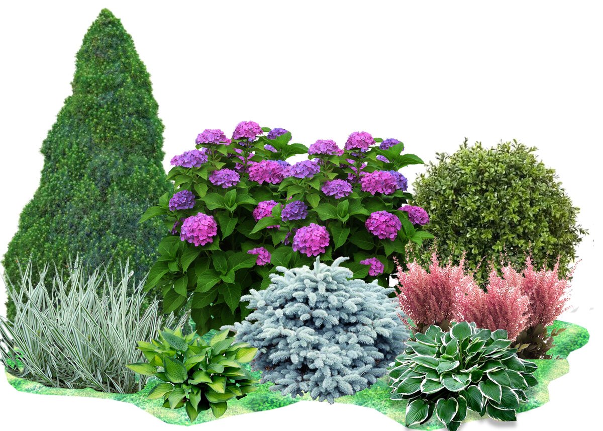 Композиция туя Смарагд , Горная сосна, гортензия, можжевельник