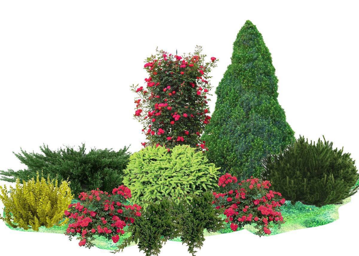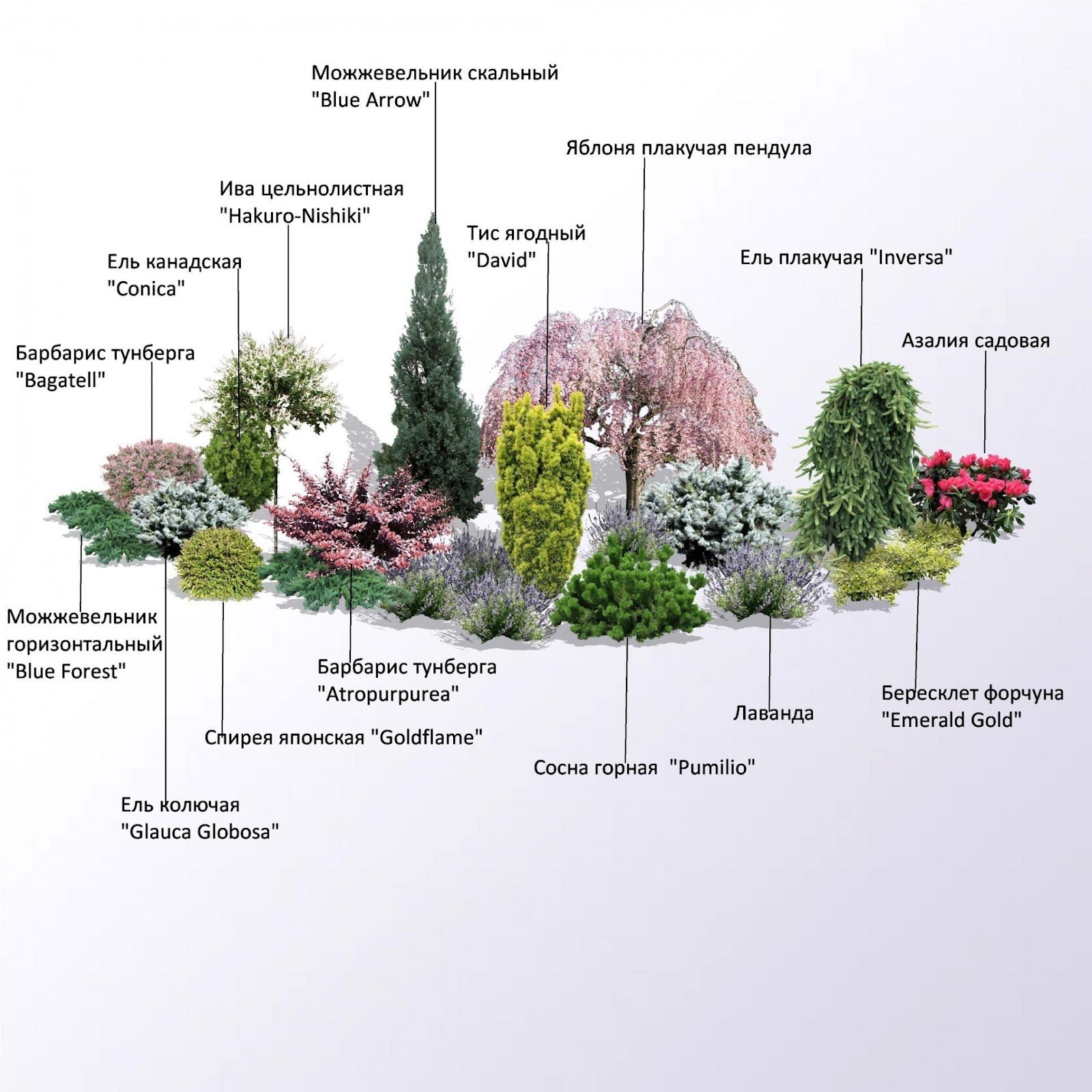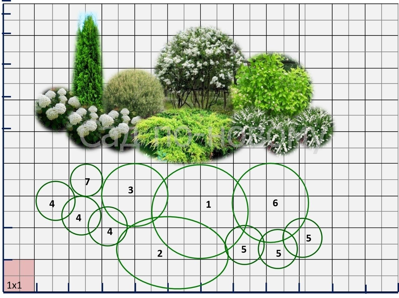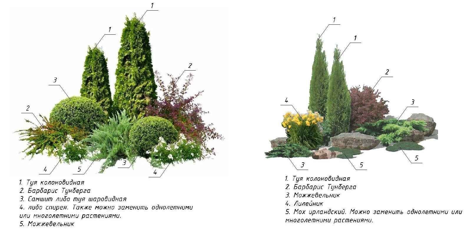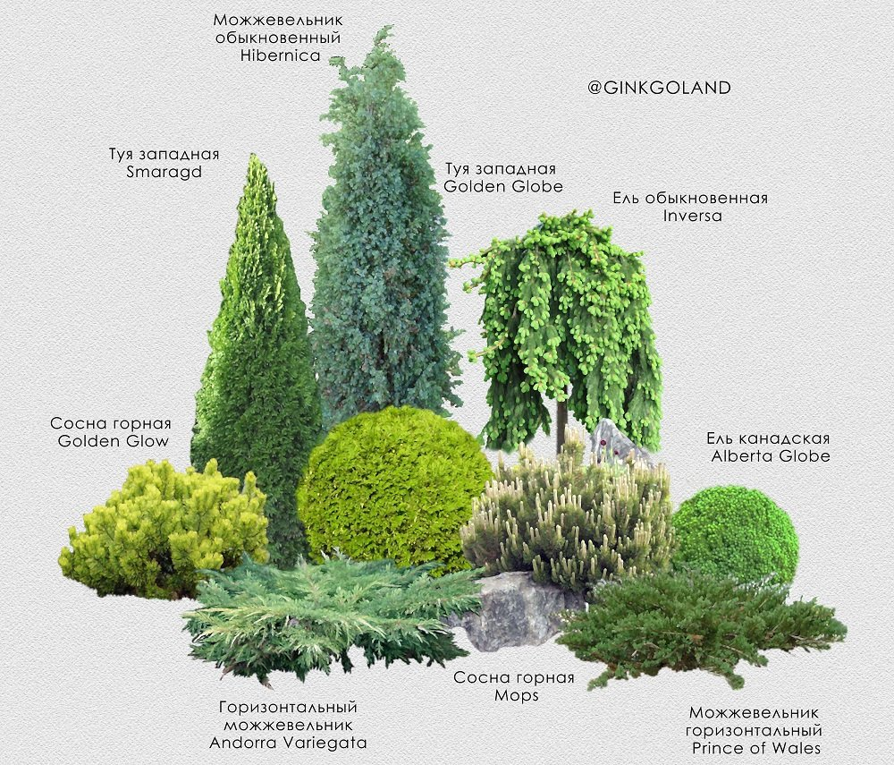 Композиция туя Смарагд , Горная сосна, гортензия, можжевельник