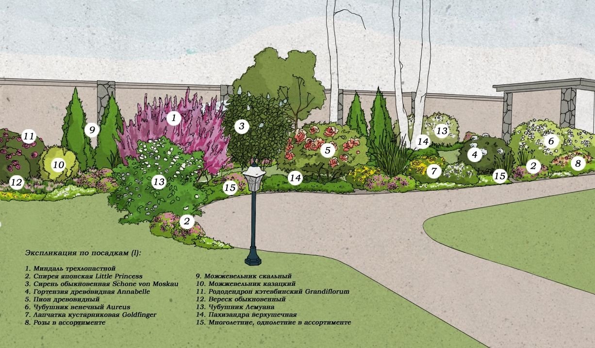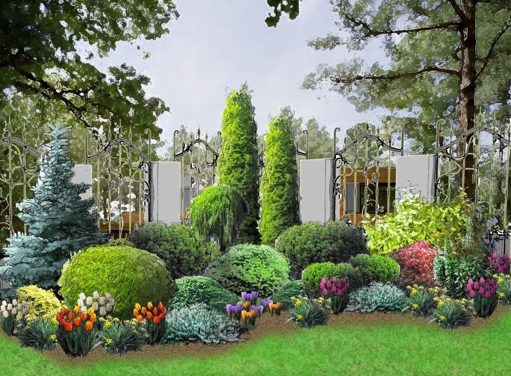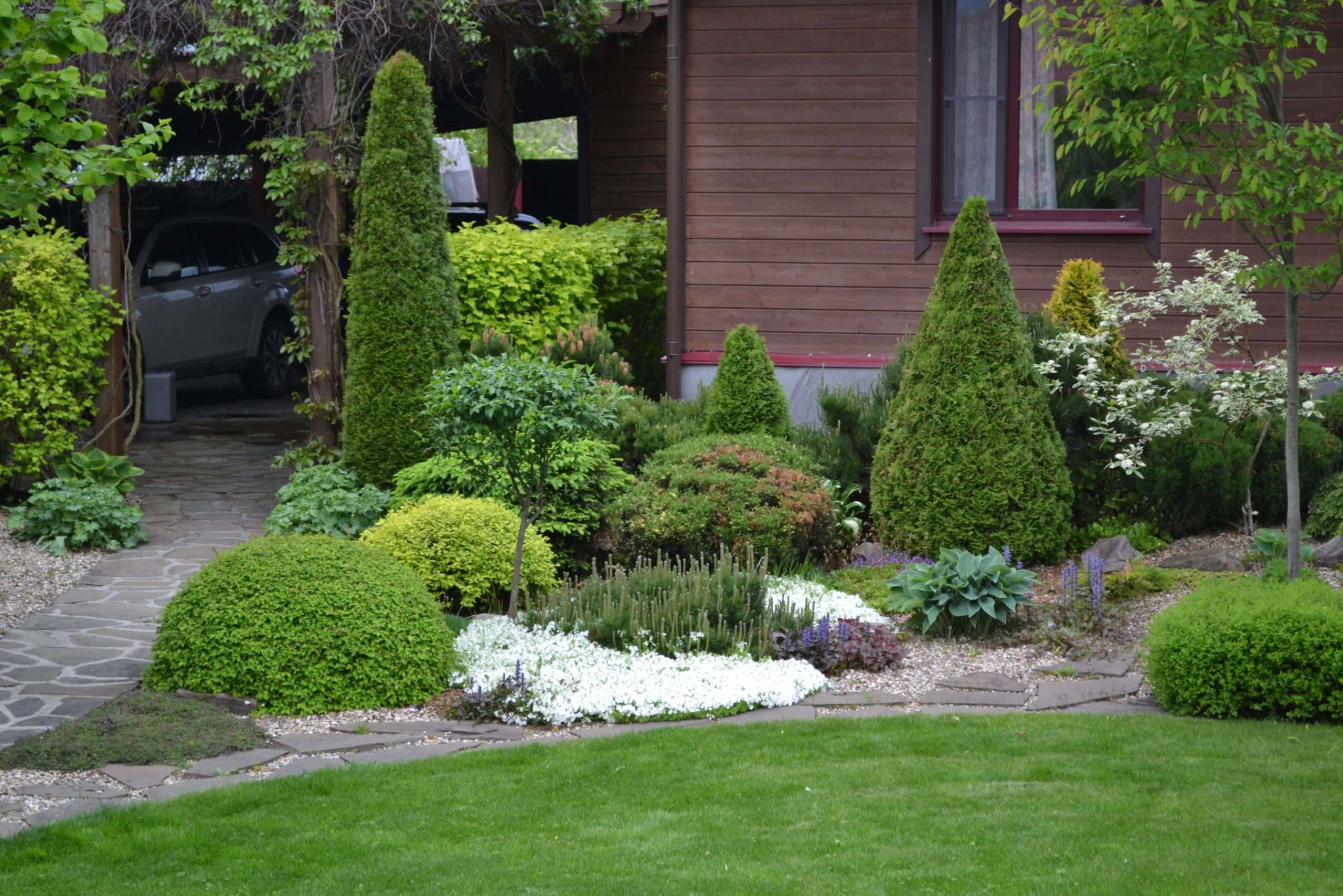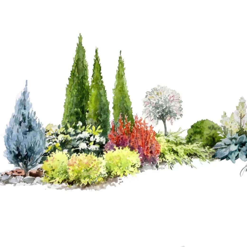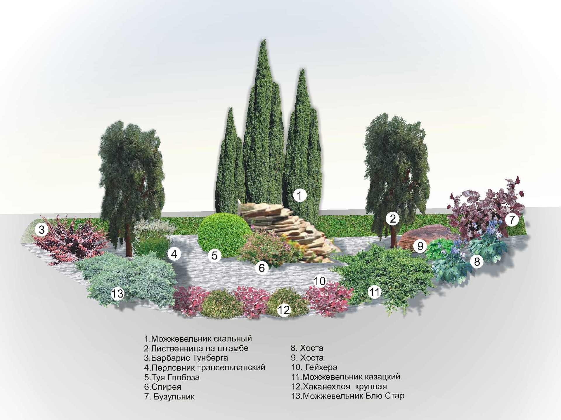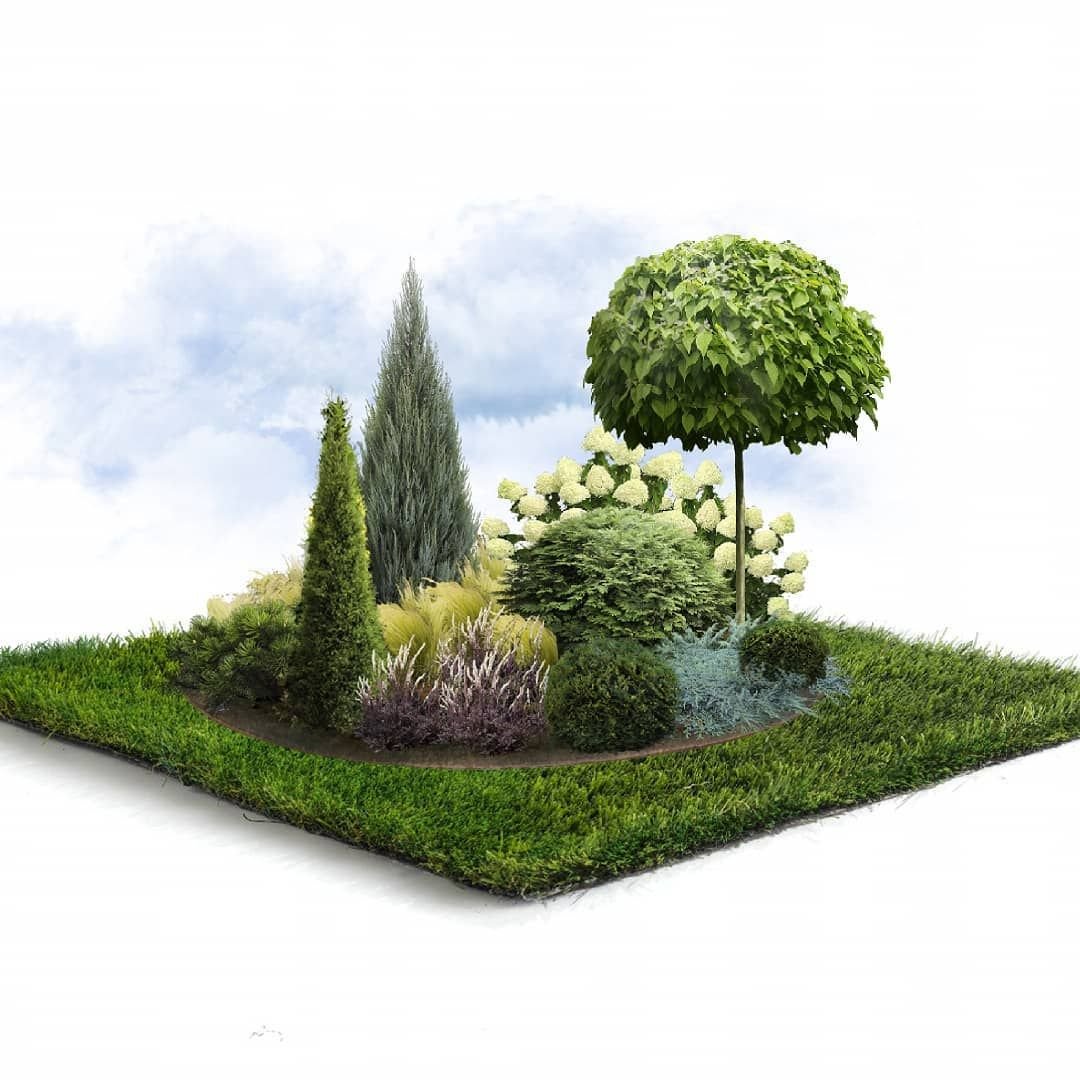 Композиция туя Смарагд , Горная сосна, гортензия, можжевельник