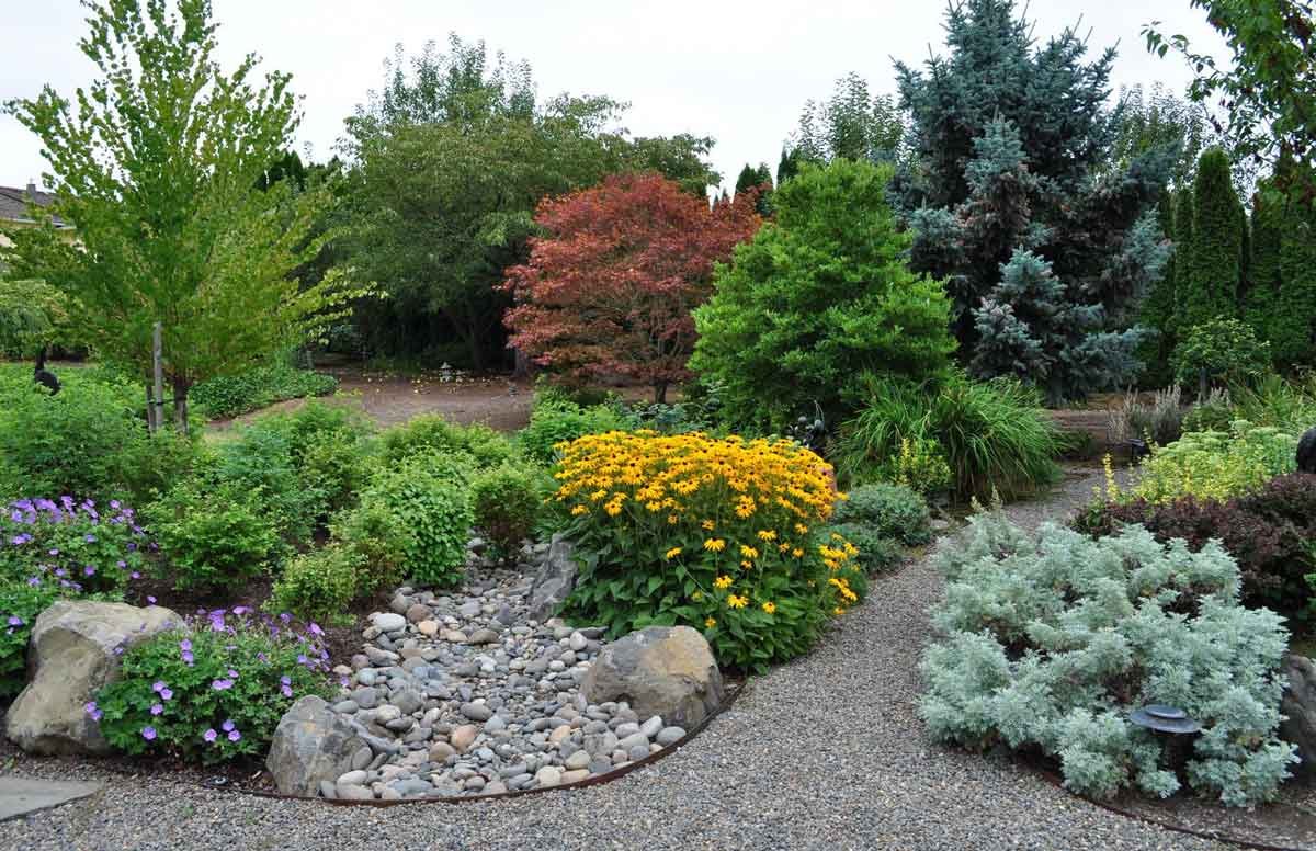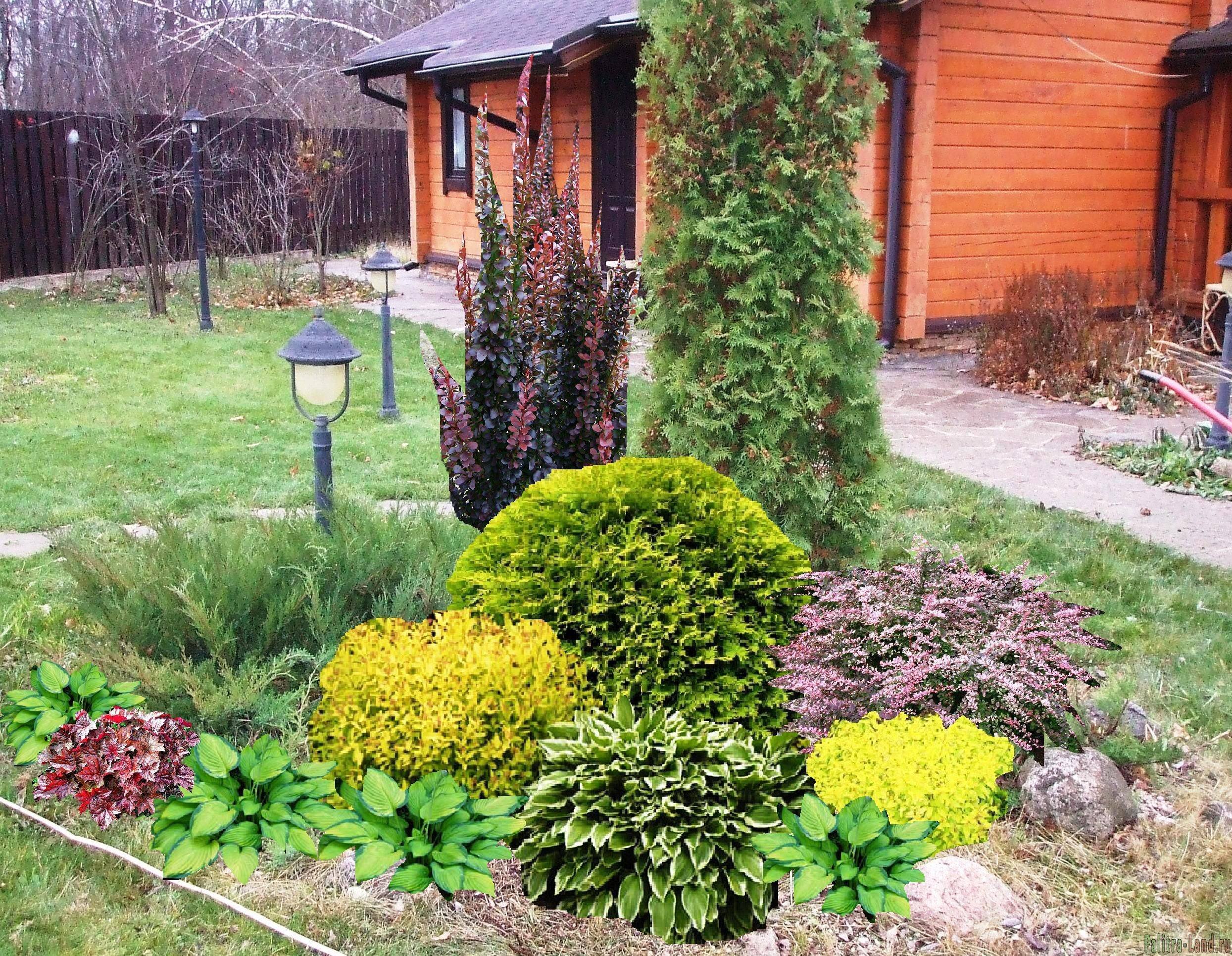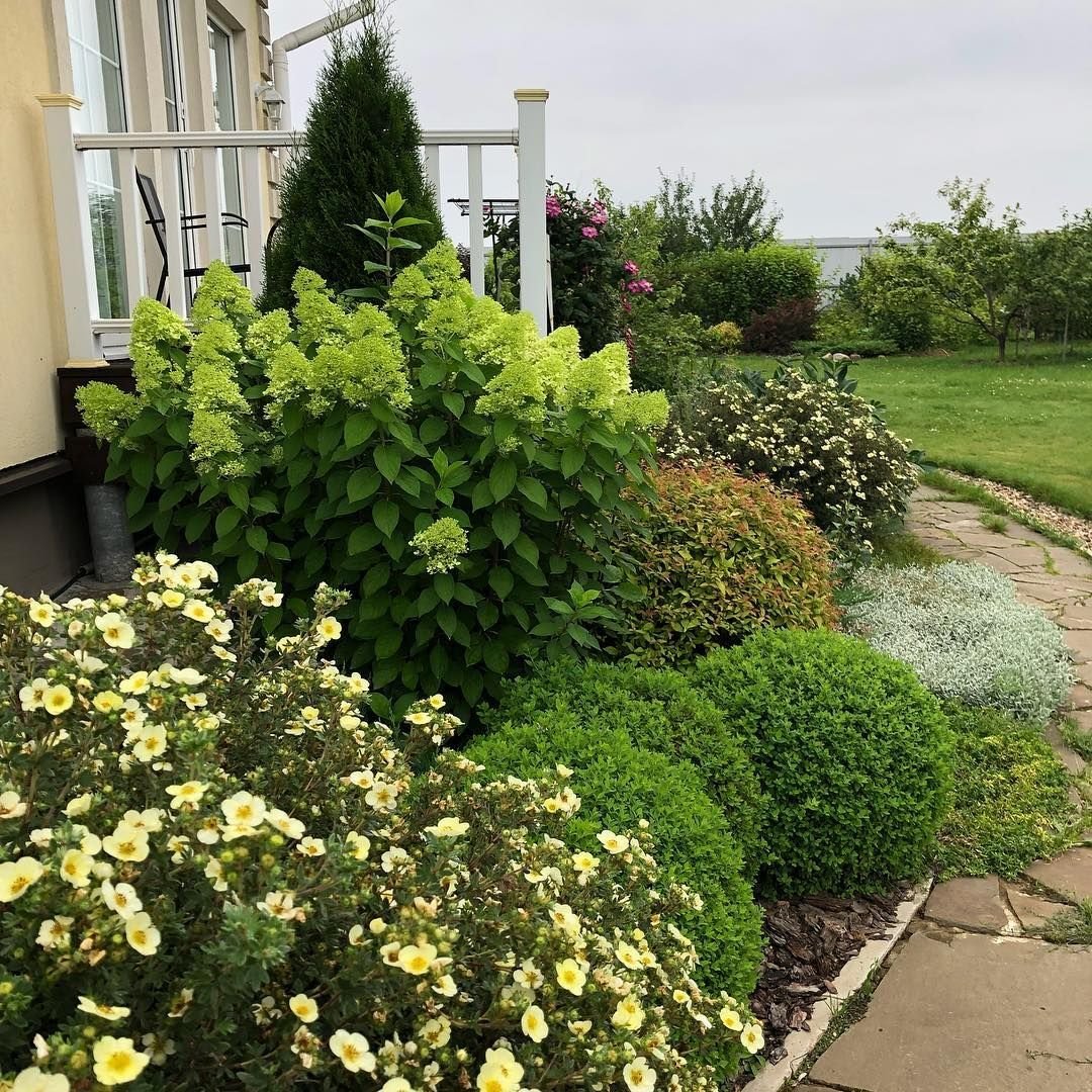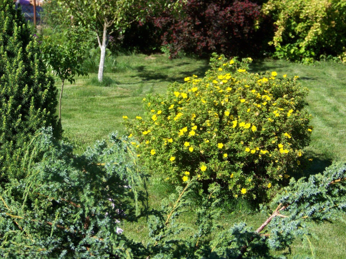 Лапчатка и хвойные в ландшафтном дизайне
