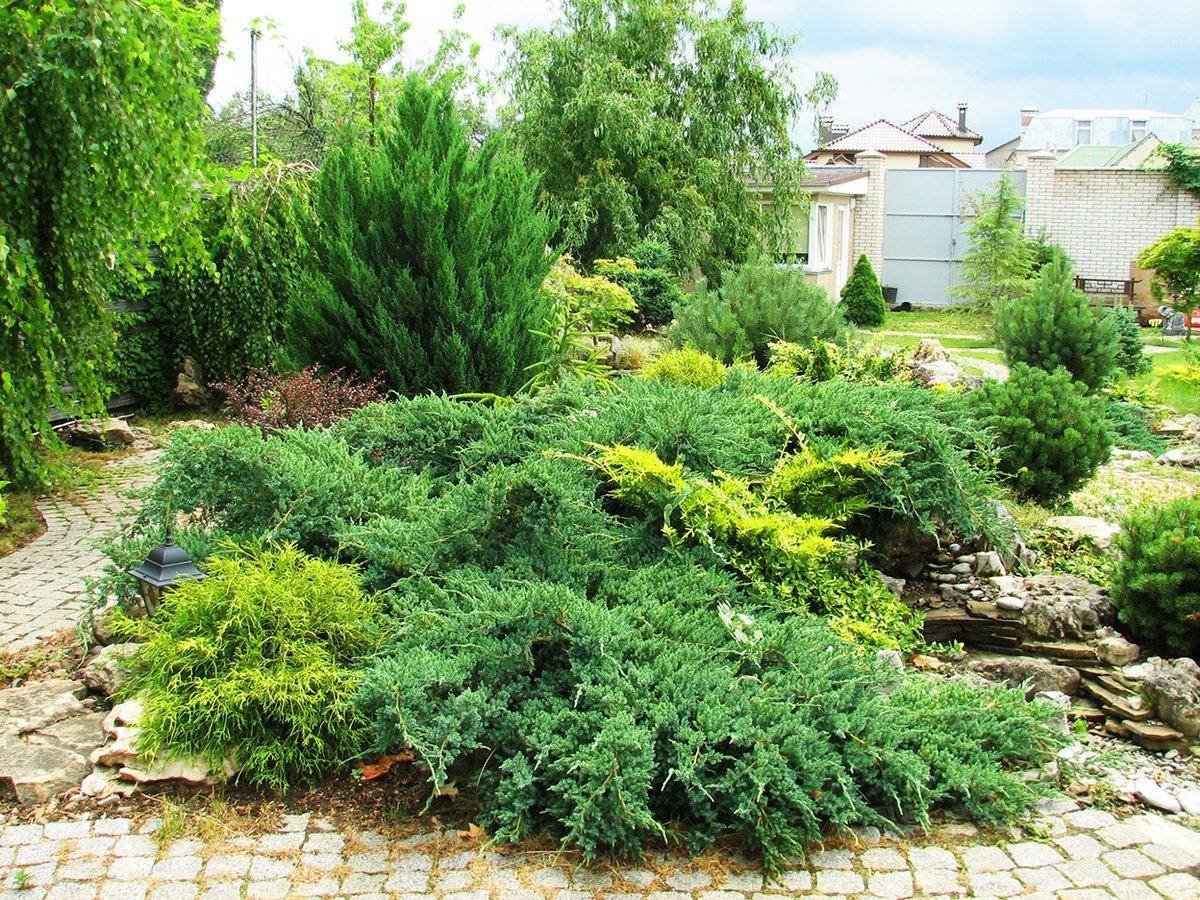 Можжевельник и лапчатка в ландшафтном