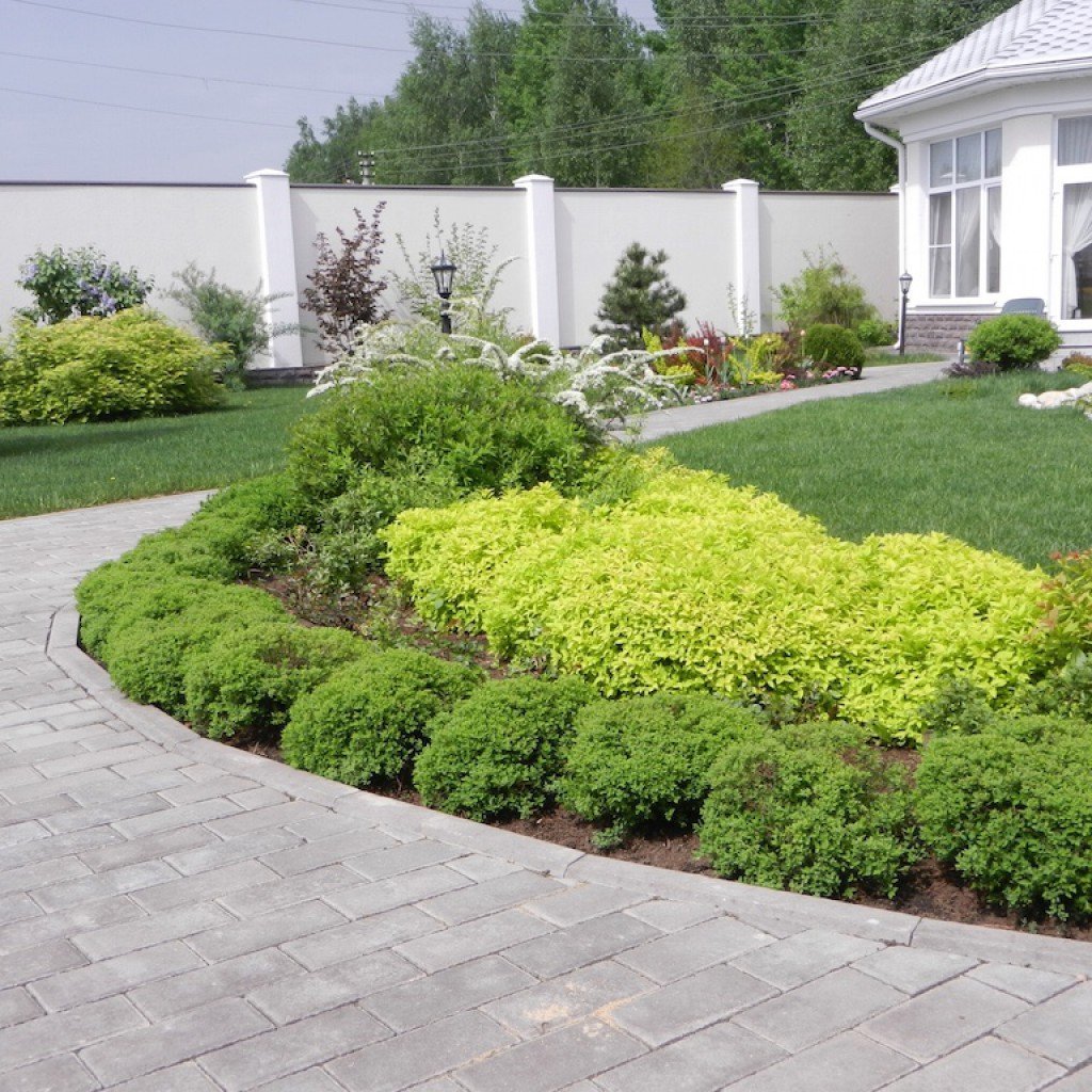 Клумбы с баданом и спиреей