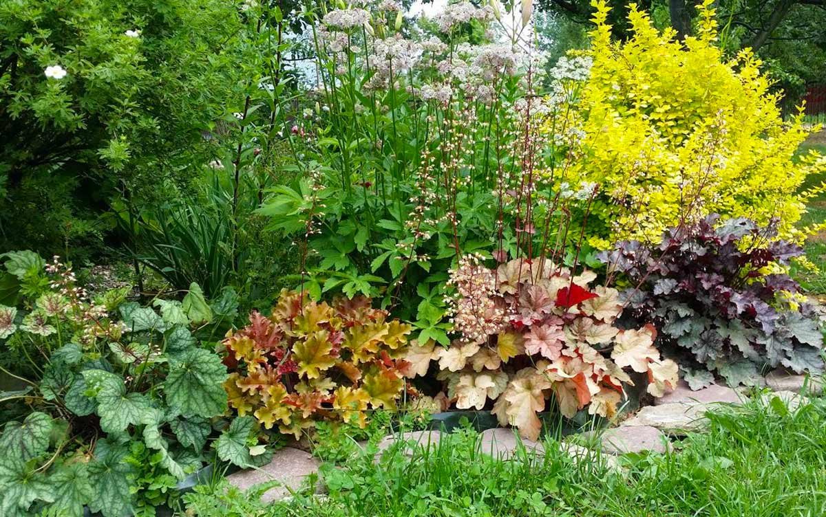 Клумба Волжанка астильба Хоста