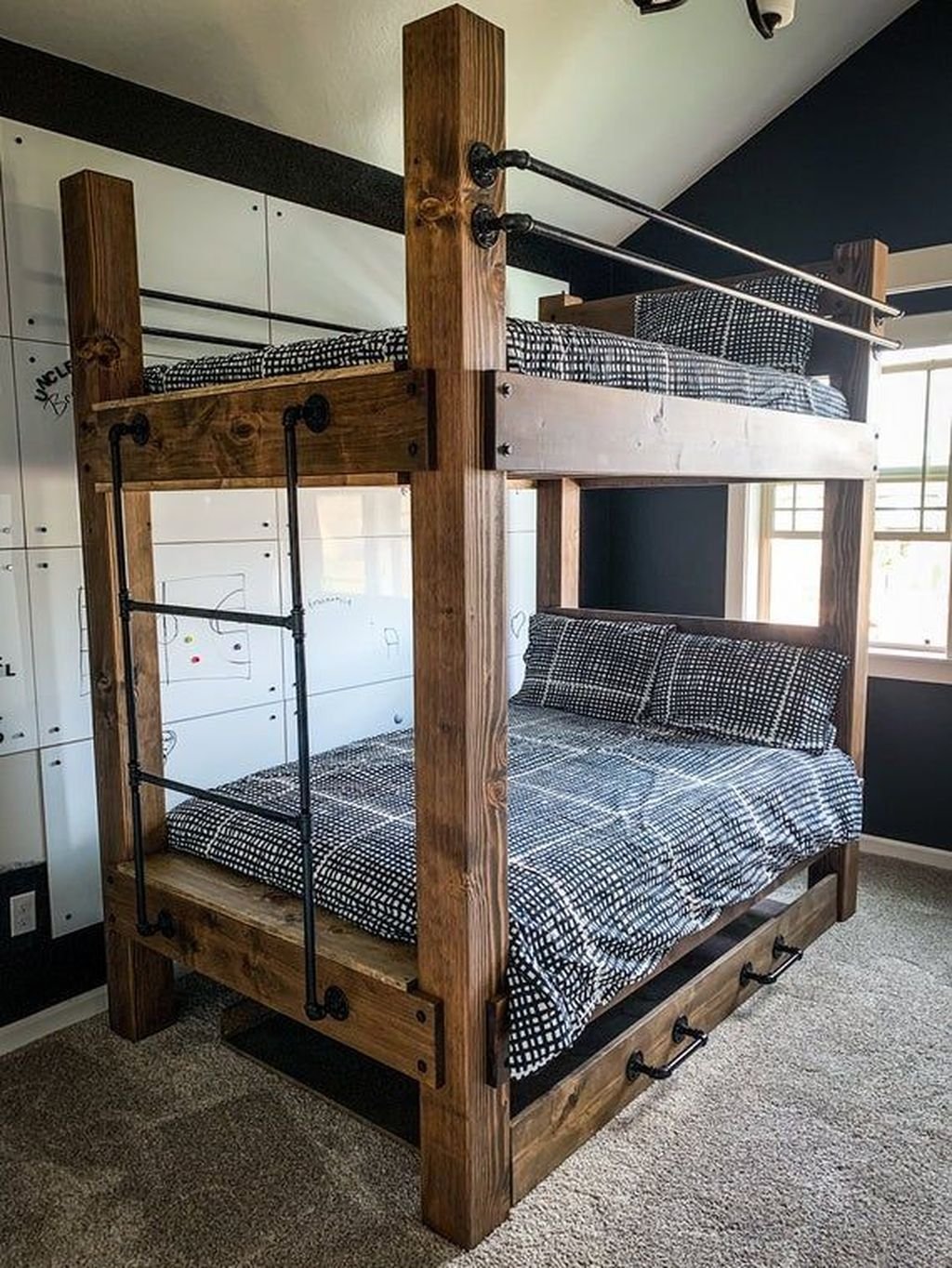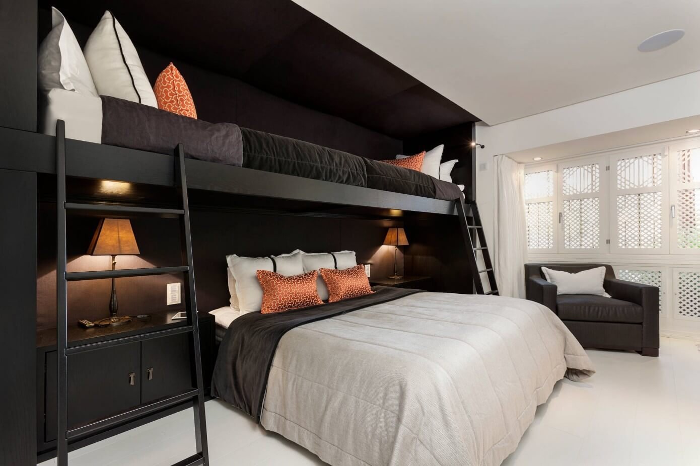 Черно белая комната с двухэтажной кроватью