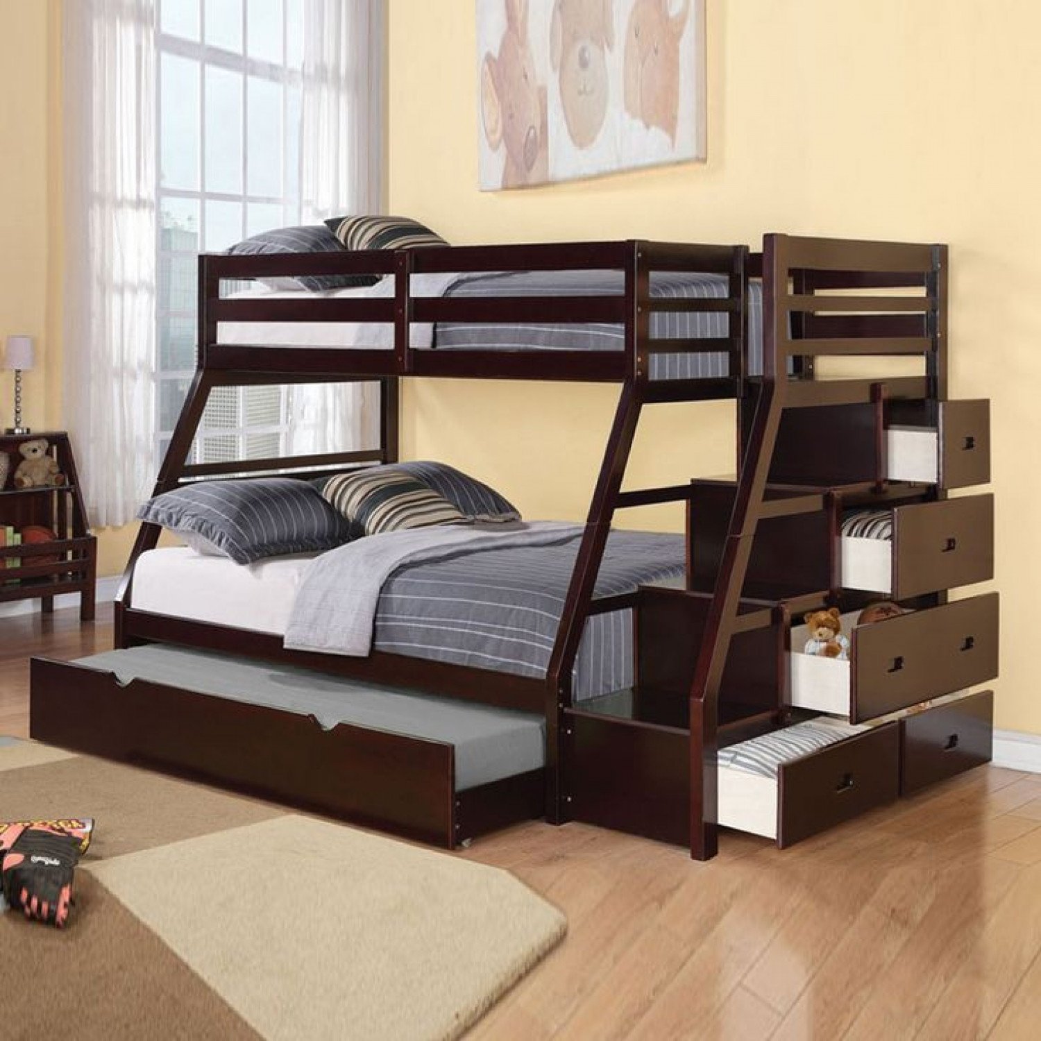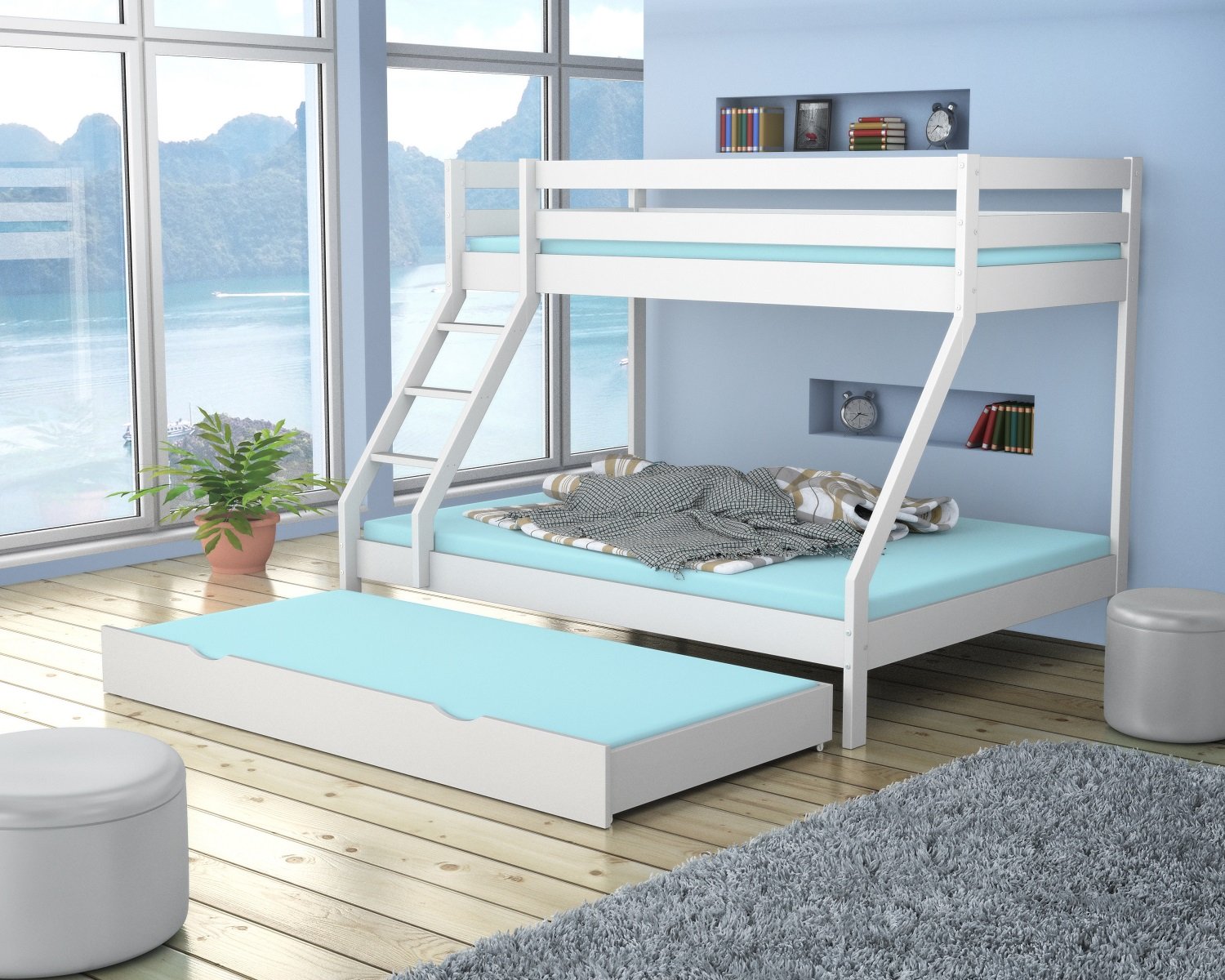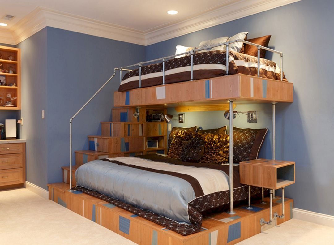 Двухъярусная кровать с двуспальной кроватью