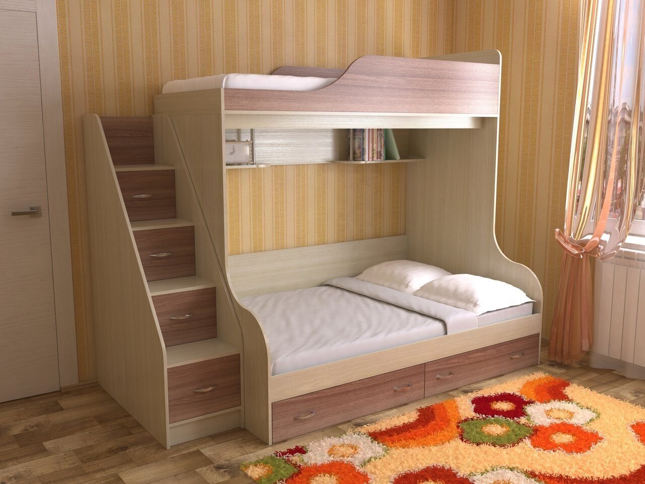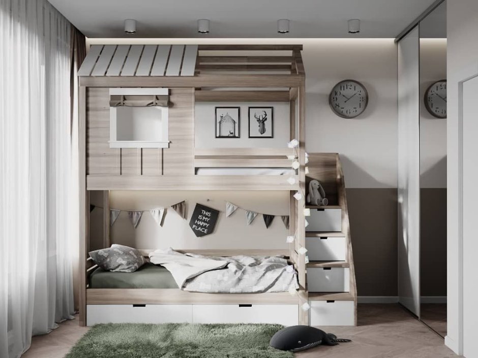 Двухъярусная кровать для детей в маленькой комнате