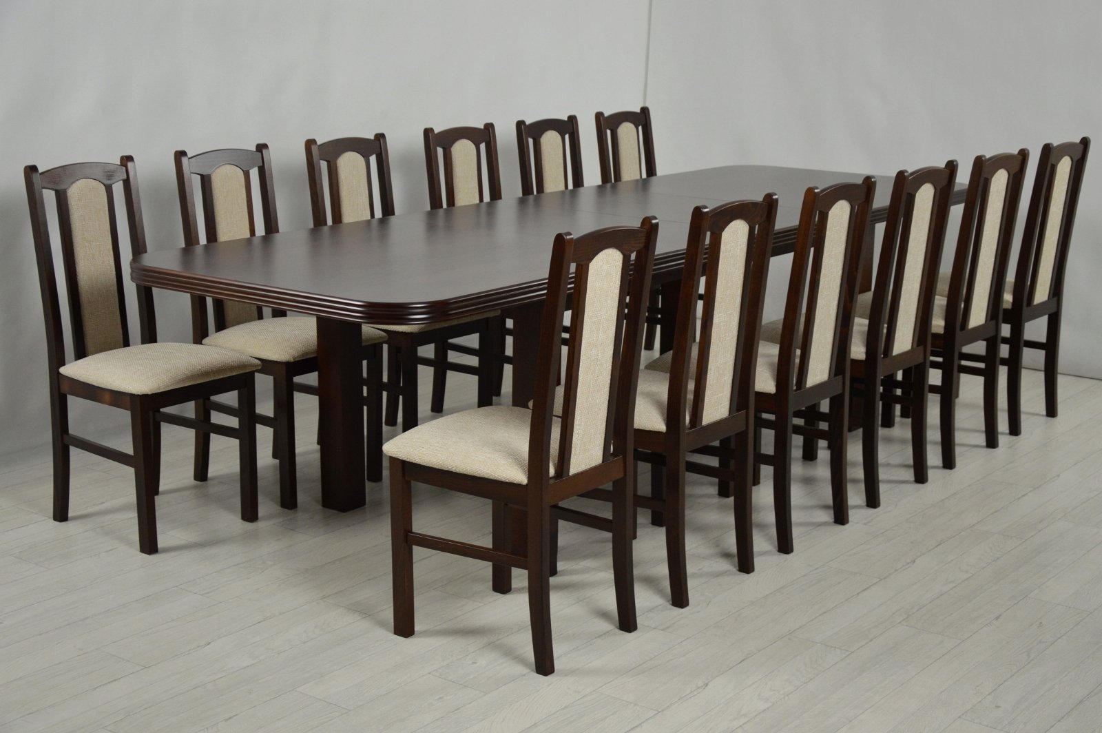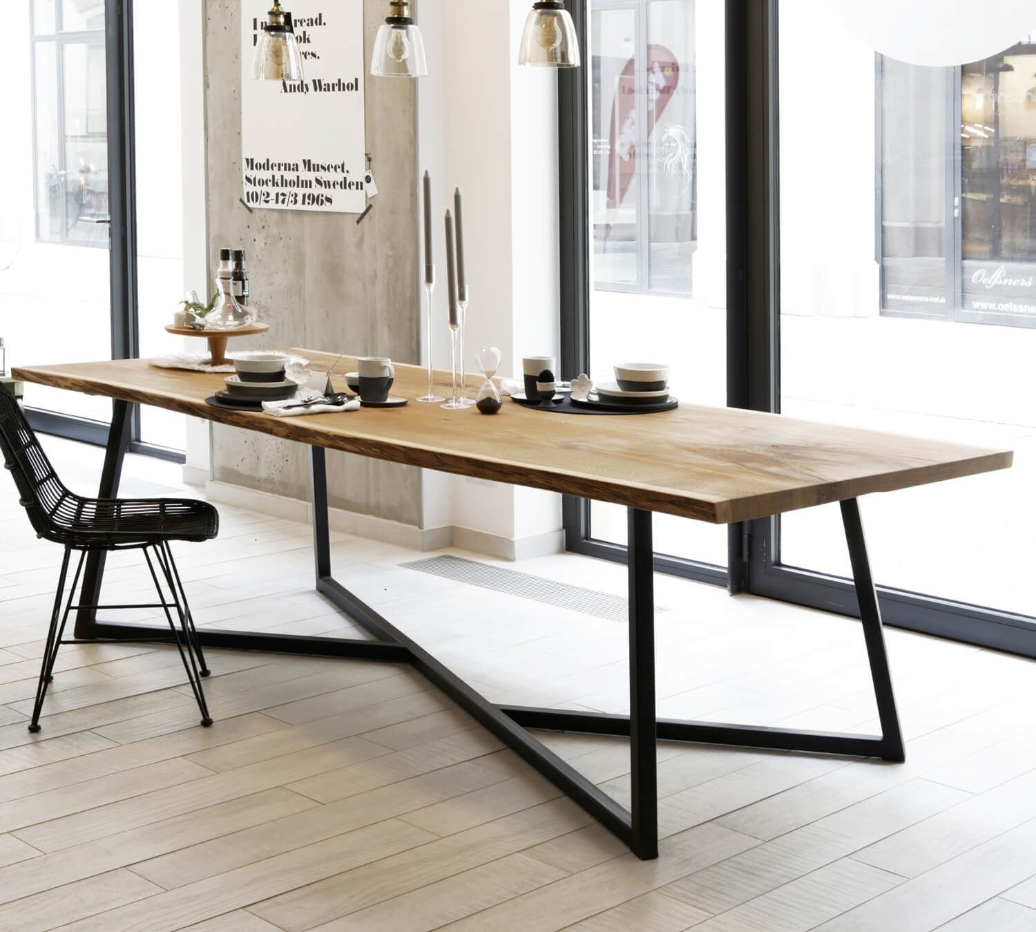 Длинный деревянный обеденный стол
