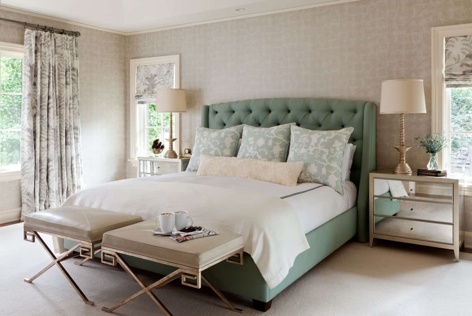 Спальня в изумрудно бежевых тонах