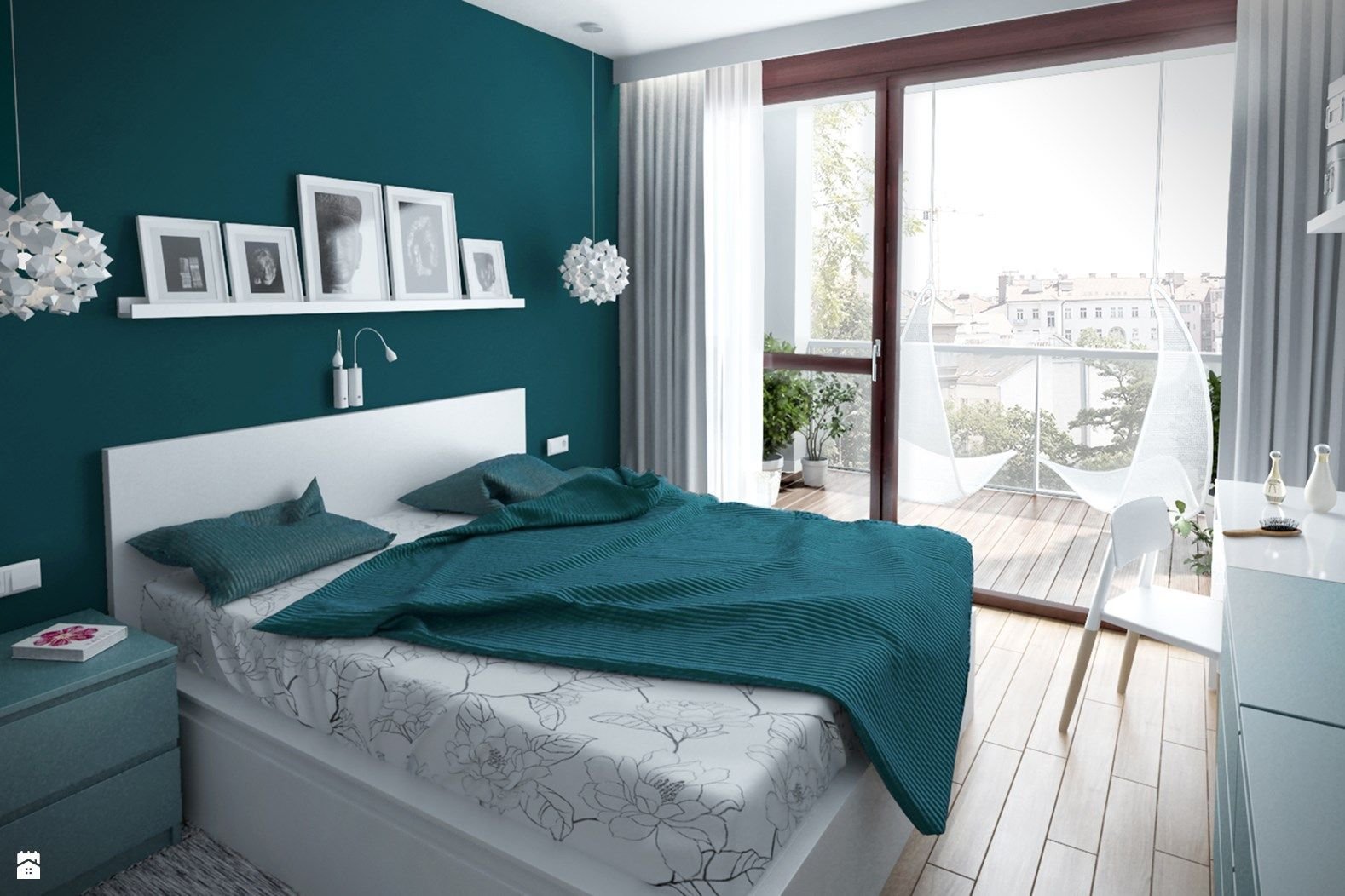 Бирюза в интерьере спальни