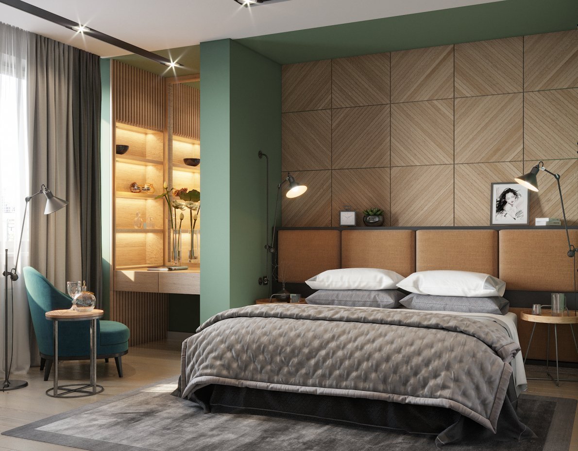 Спальня в зеленых тонах