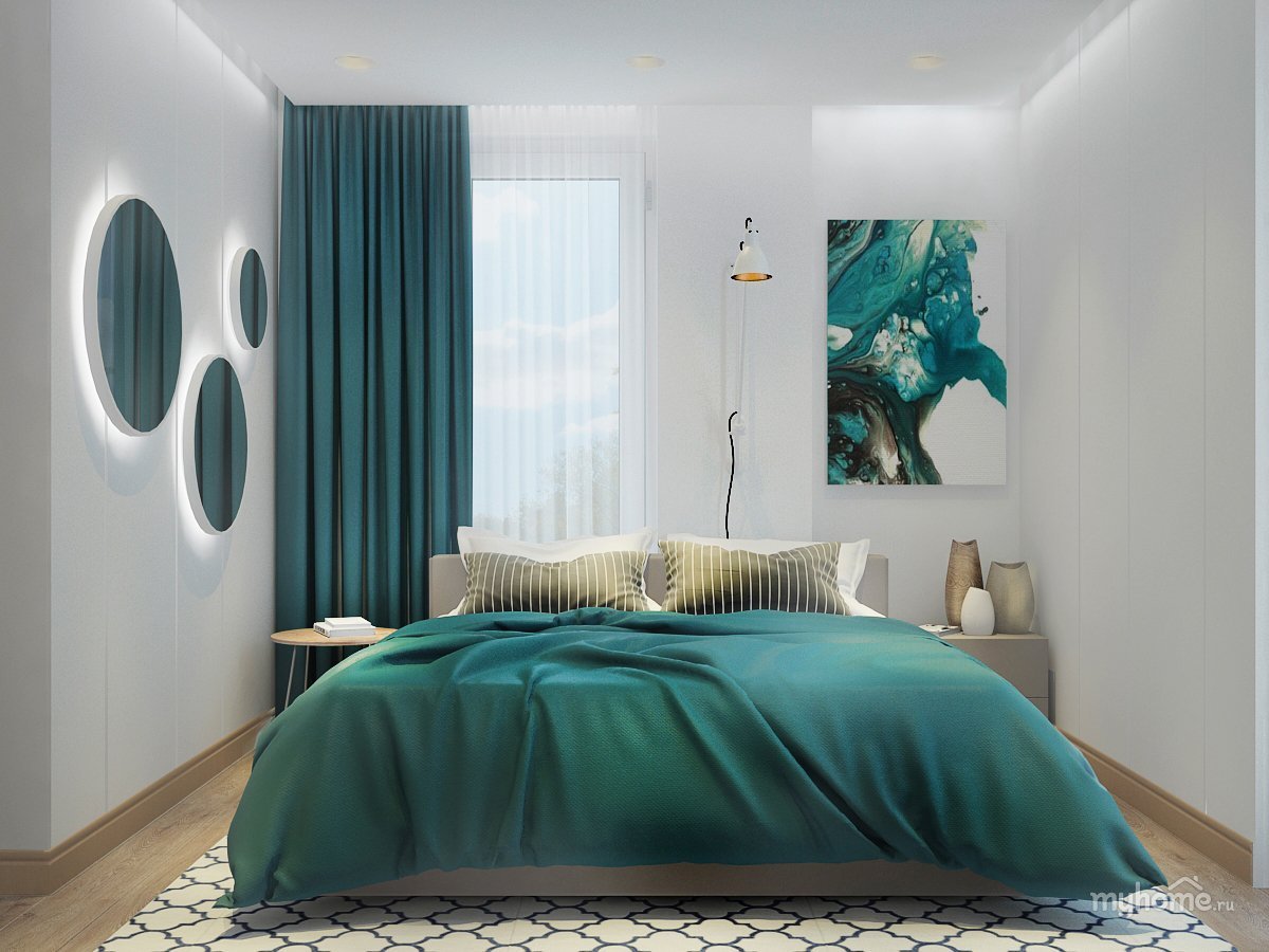 Спальня в бирюзовых тонах