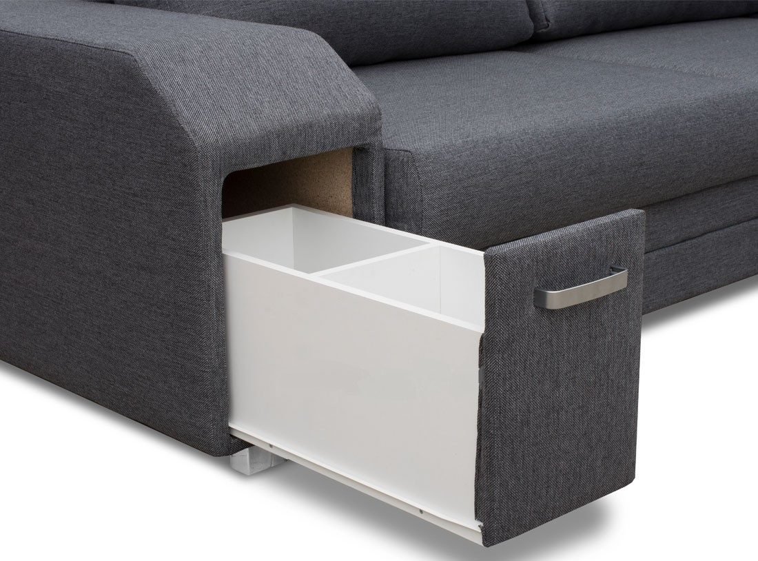 Квадро-2 угловой диван с баром, с пуфиками и столиком в подлокотниках