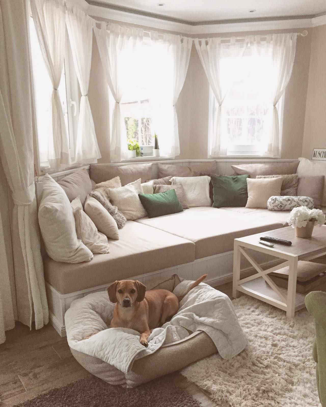 Диван у окна в интерьере