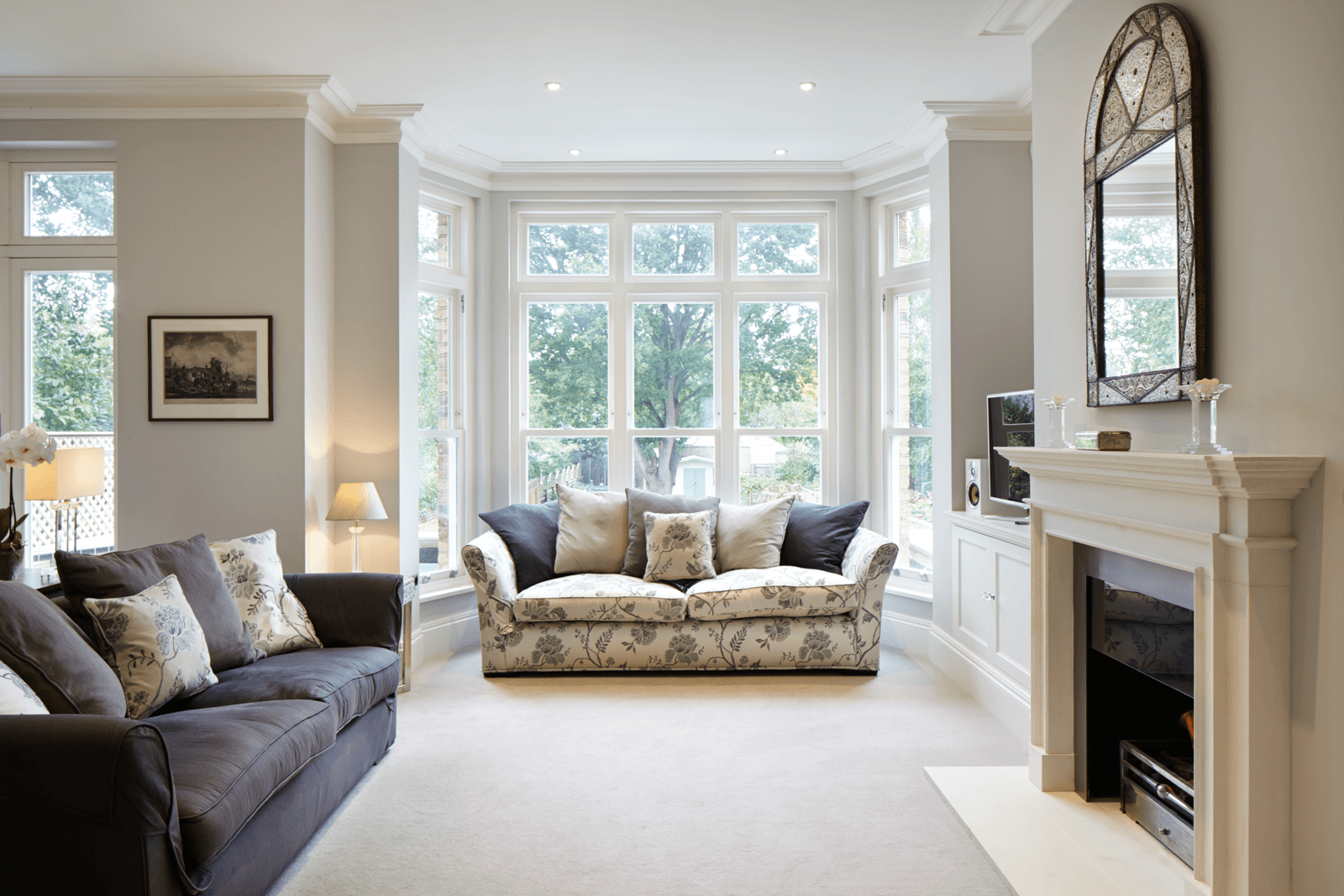 Диван в эркере гостиной