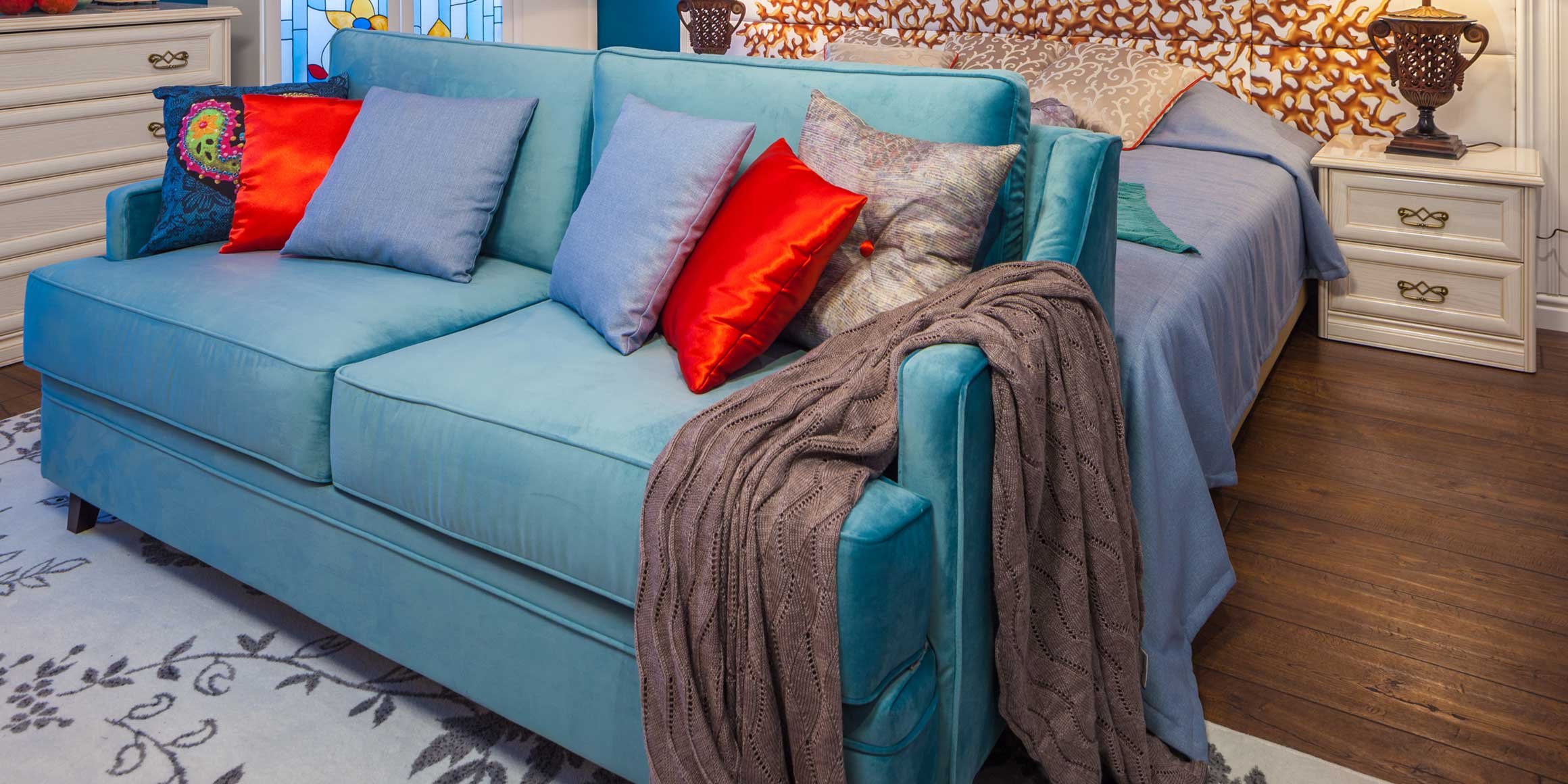 Широкий диван с подушками