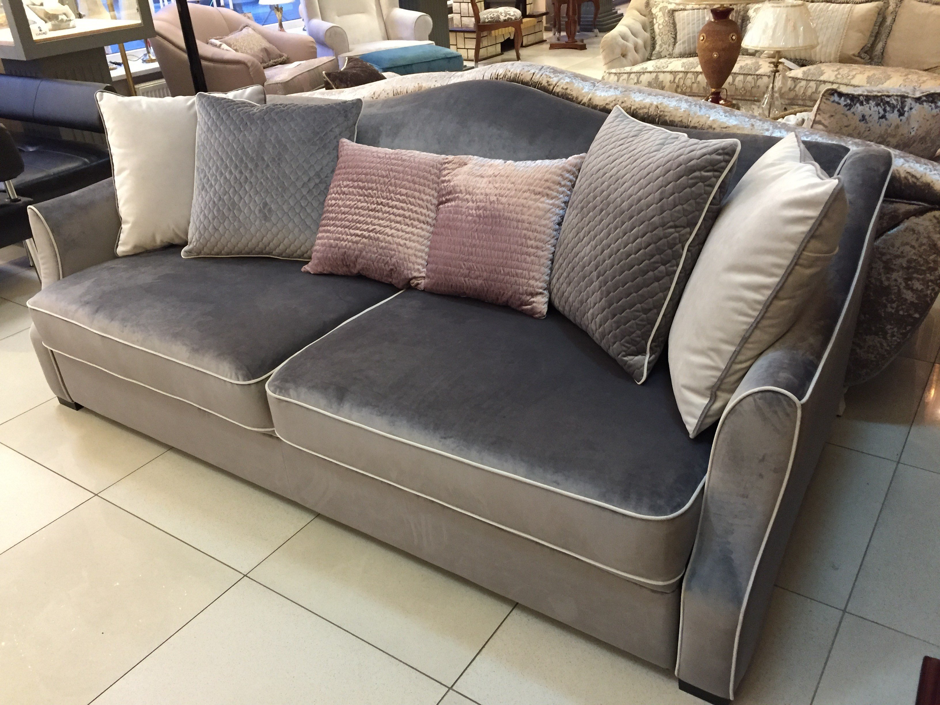Серый диван с подушками