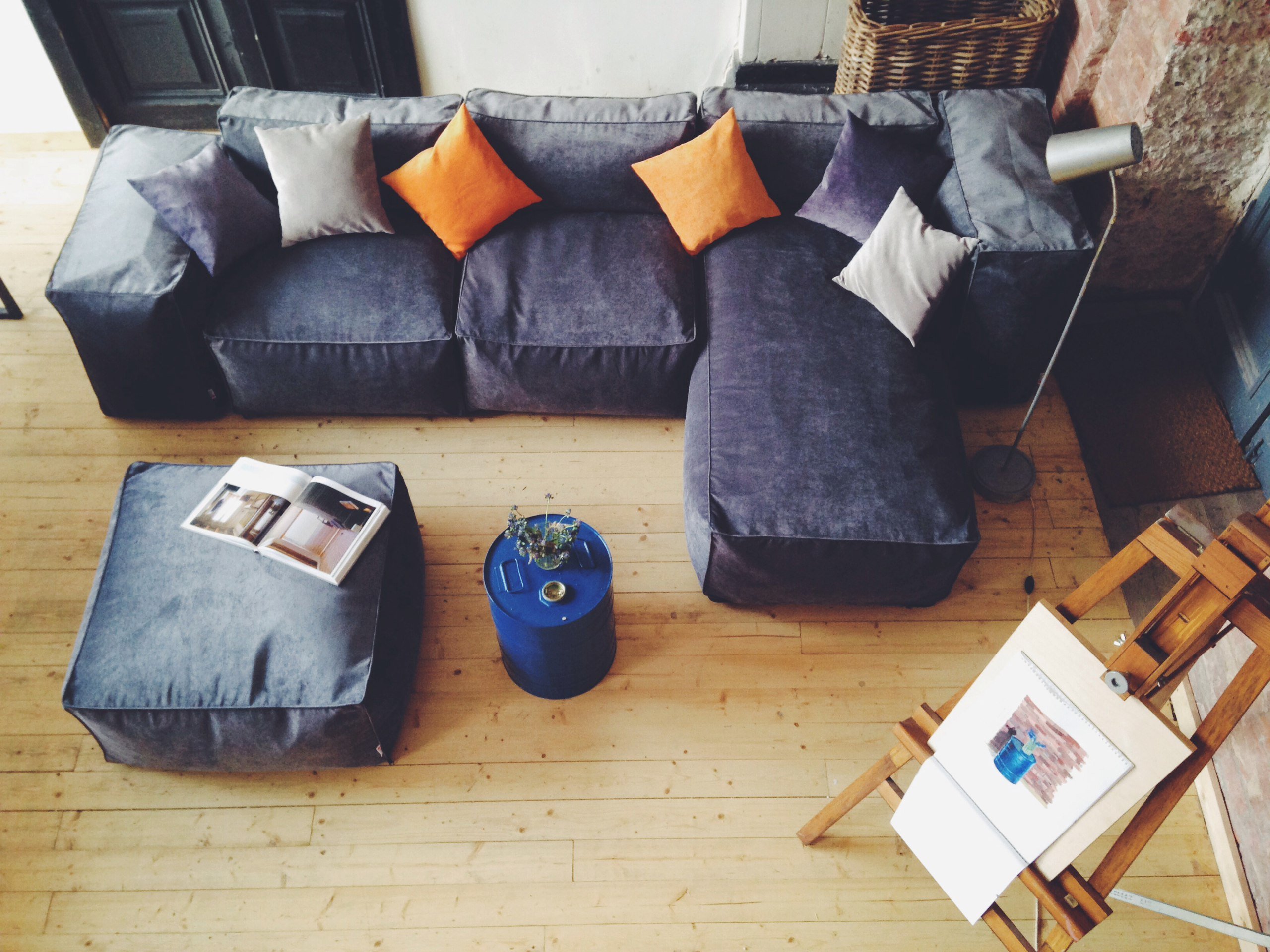 Угловой диван с подушками вместо спинки