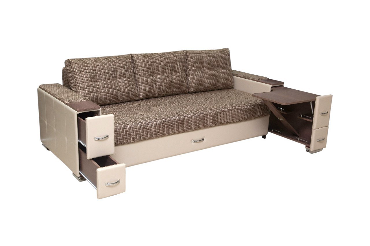 Диван Бруклин со столиком и ящиками в подлокотниках