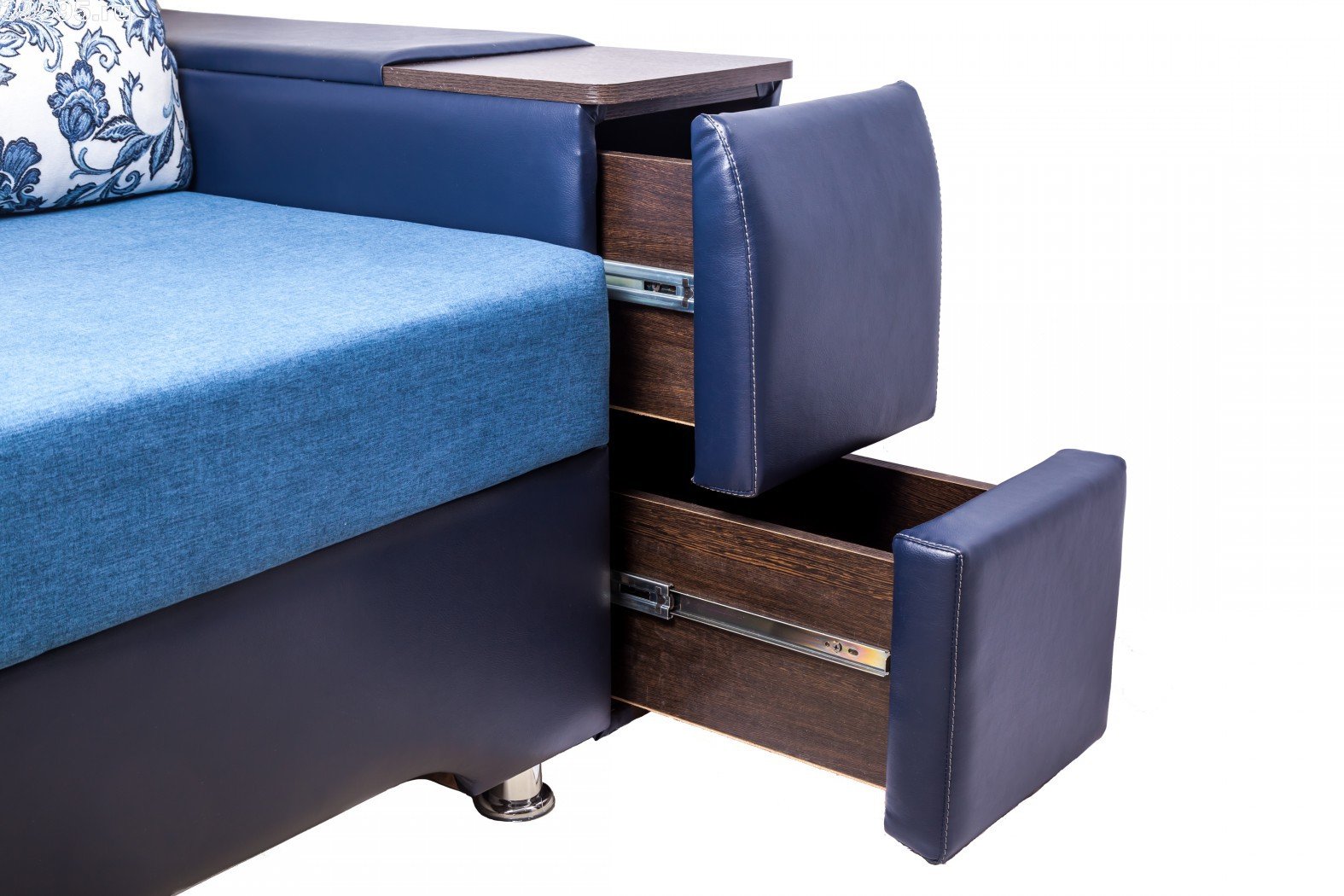 Диван с выдвижными ящиками в подлокотниках