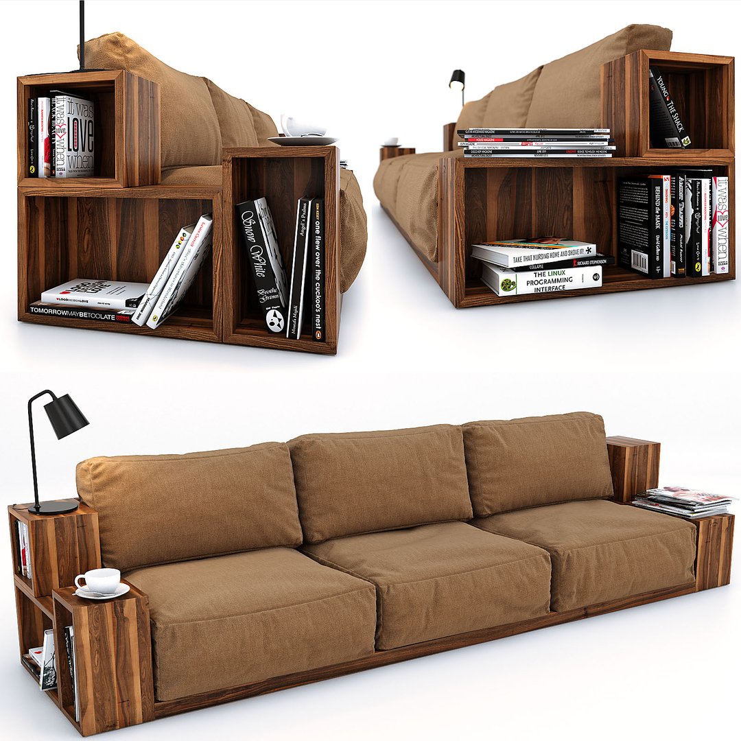 Диван с полками в подлокотниках
