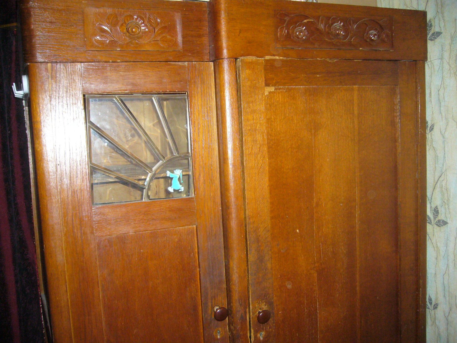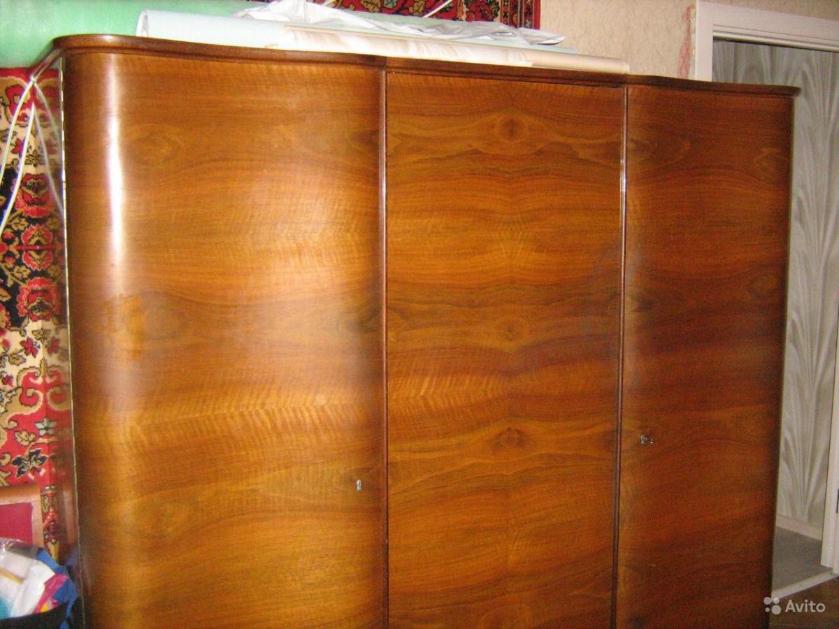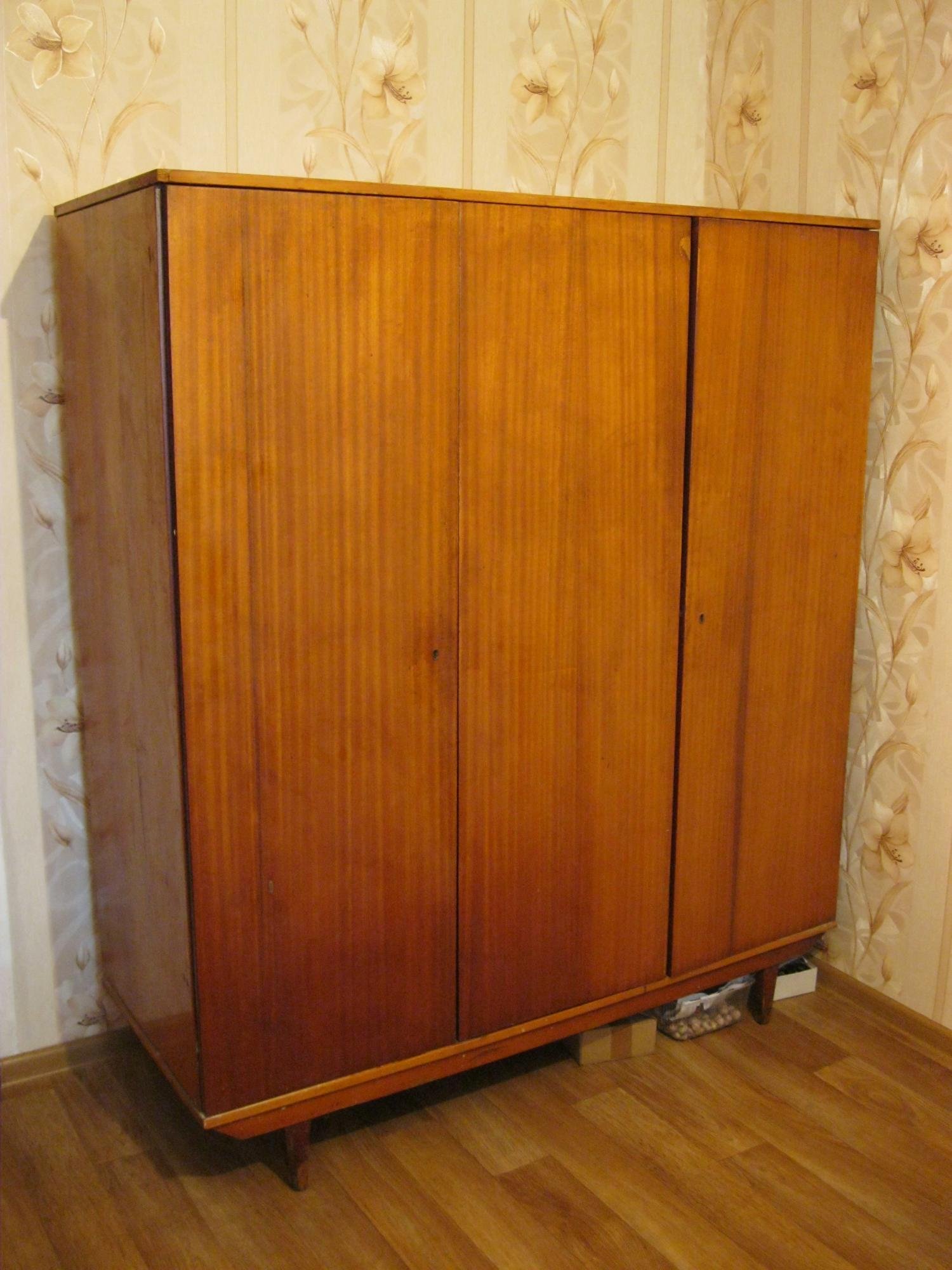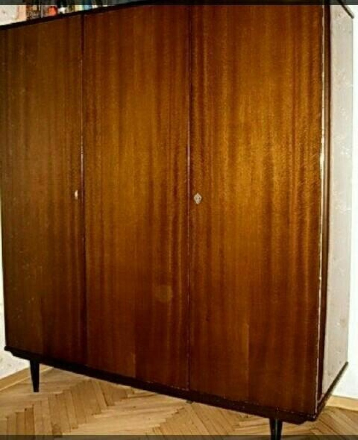 Шкаф СССР полированный трехстворчатый коричневый снизу с дверкой