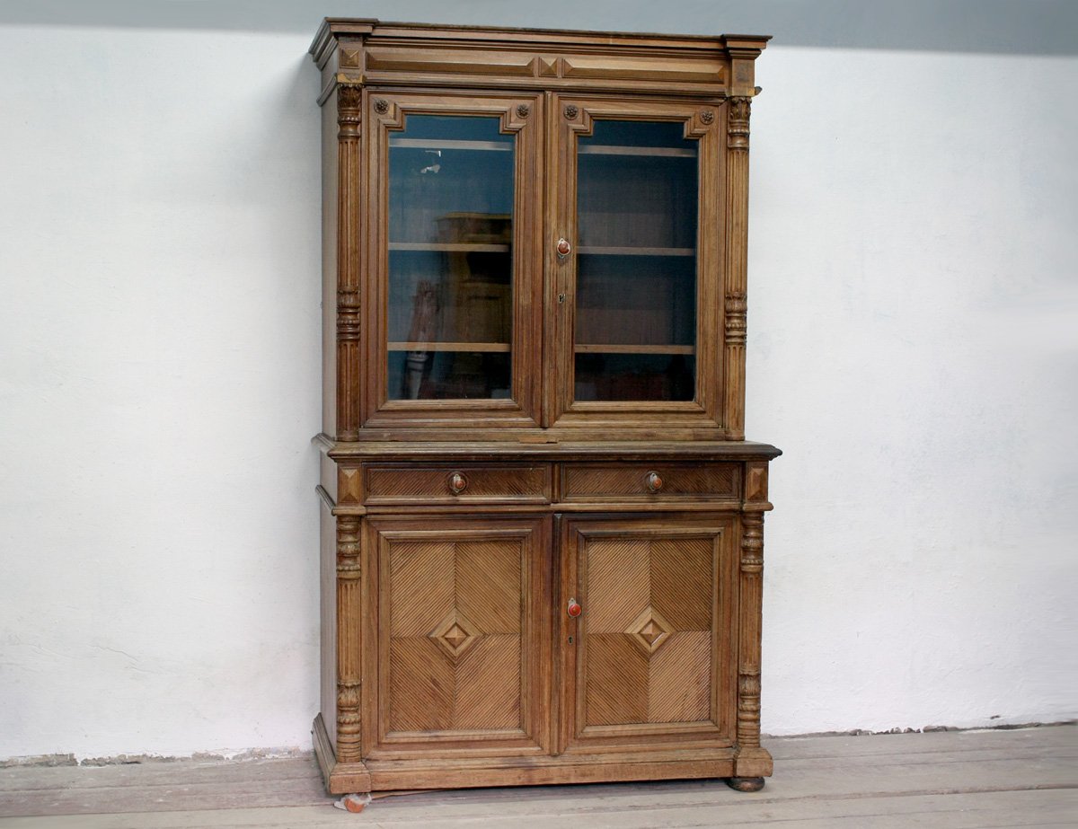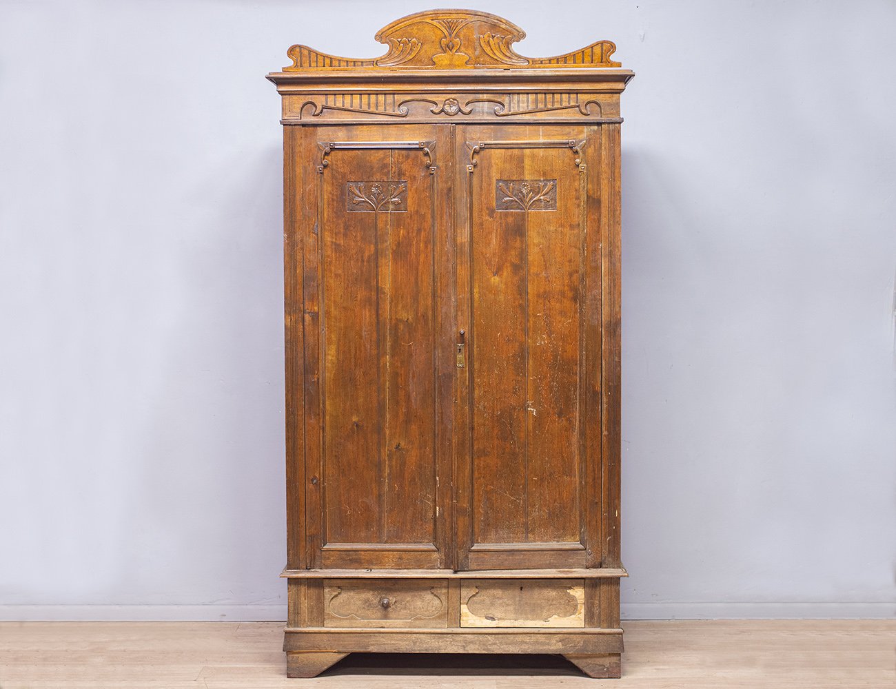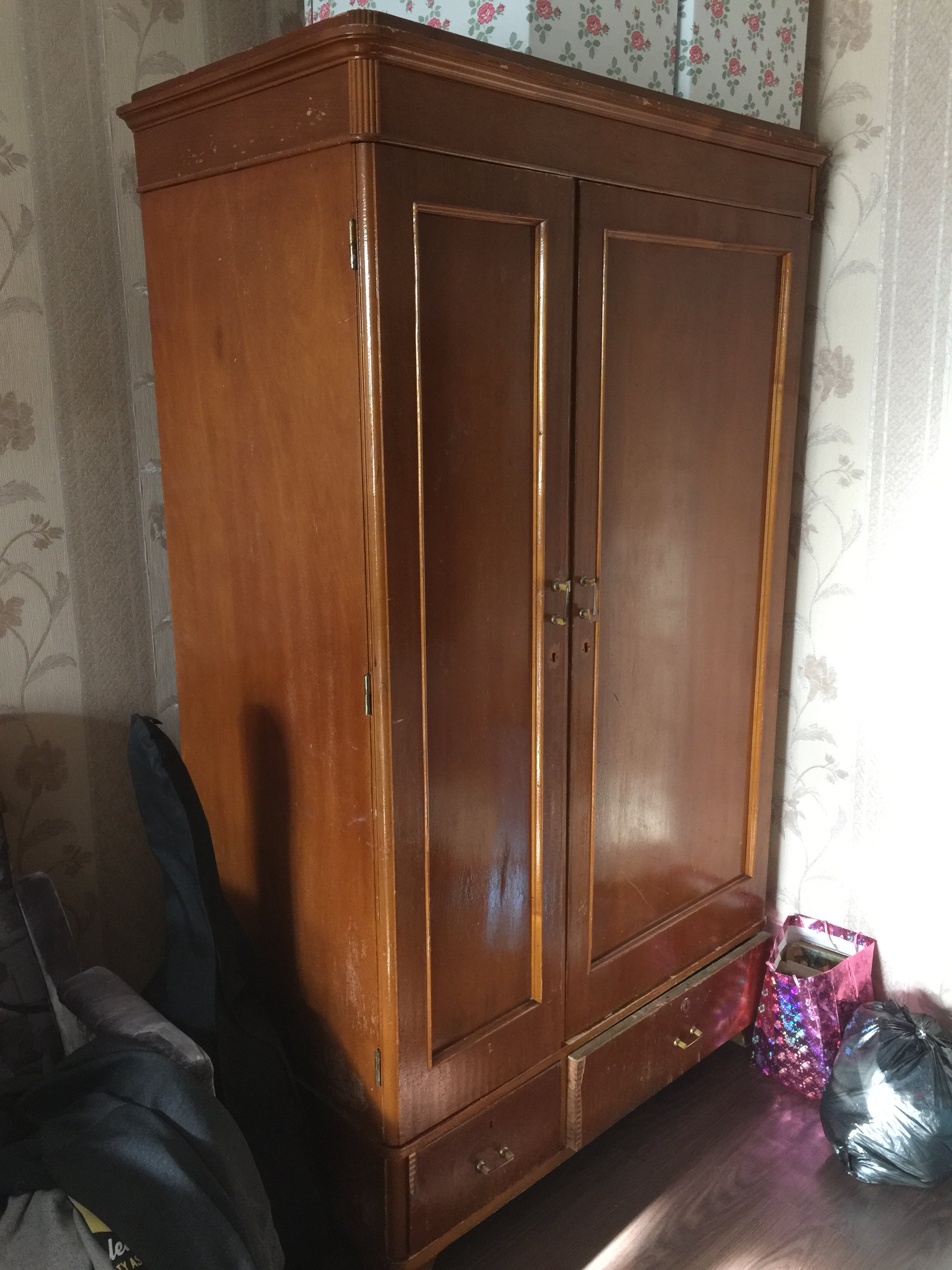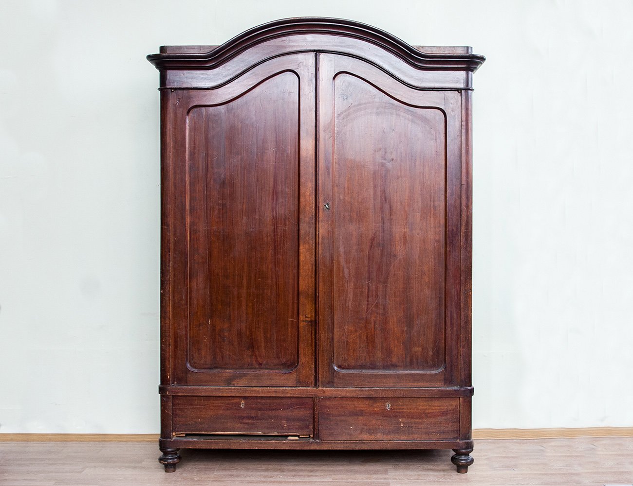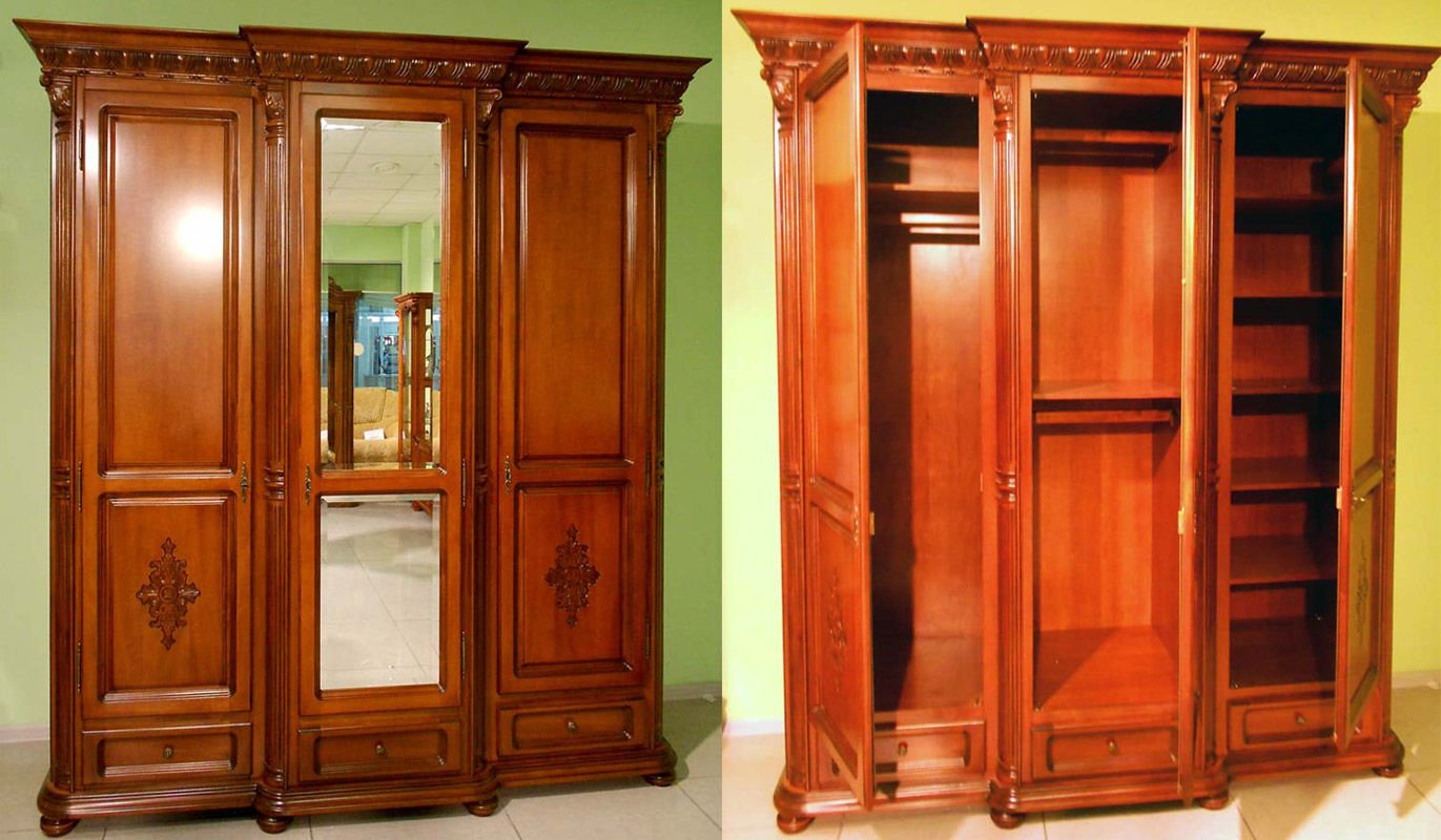 Шкаф СССР полированный трехстворчатый коричневый снизу с дверкой