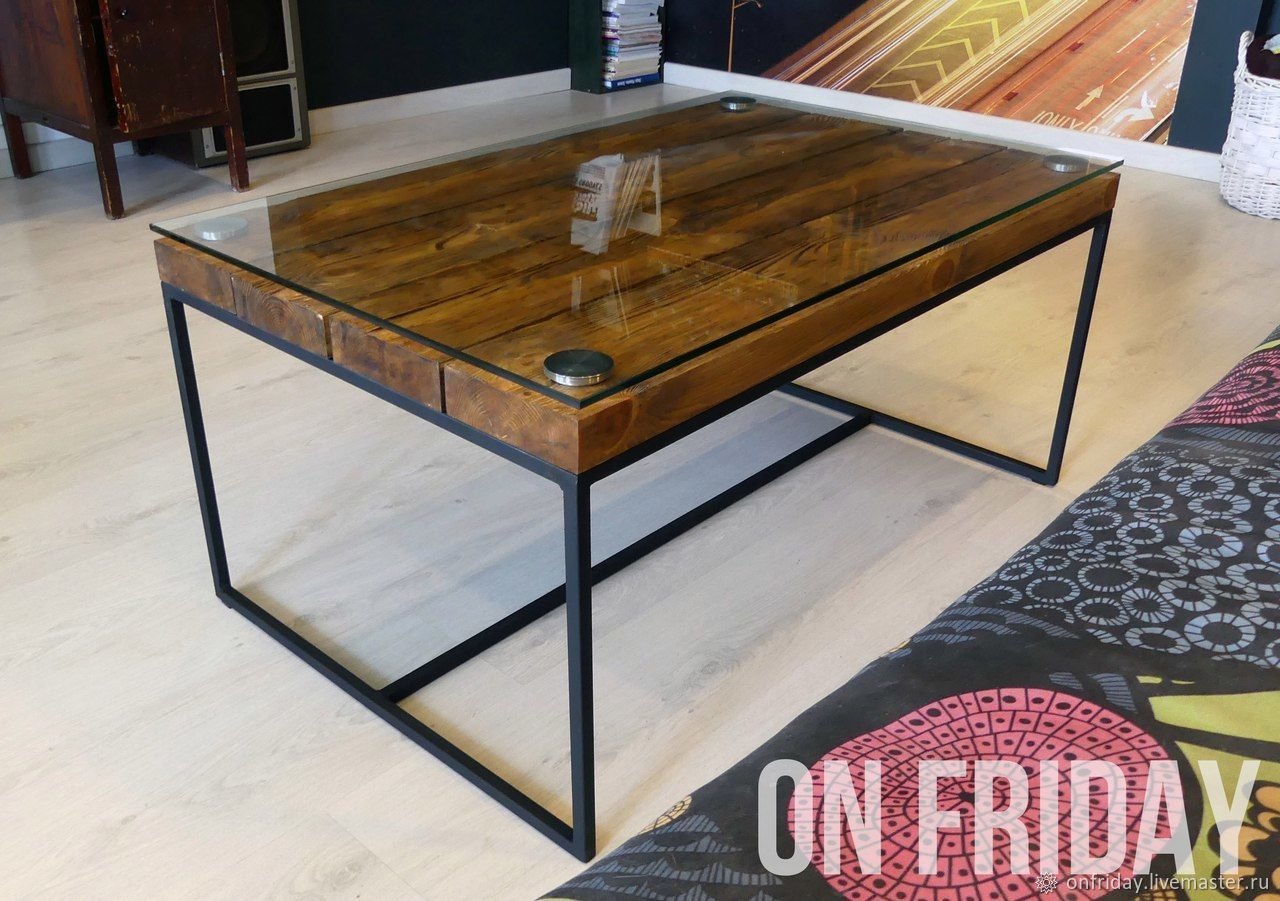 Стеклянный стол в Индустриальном стиле
