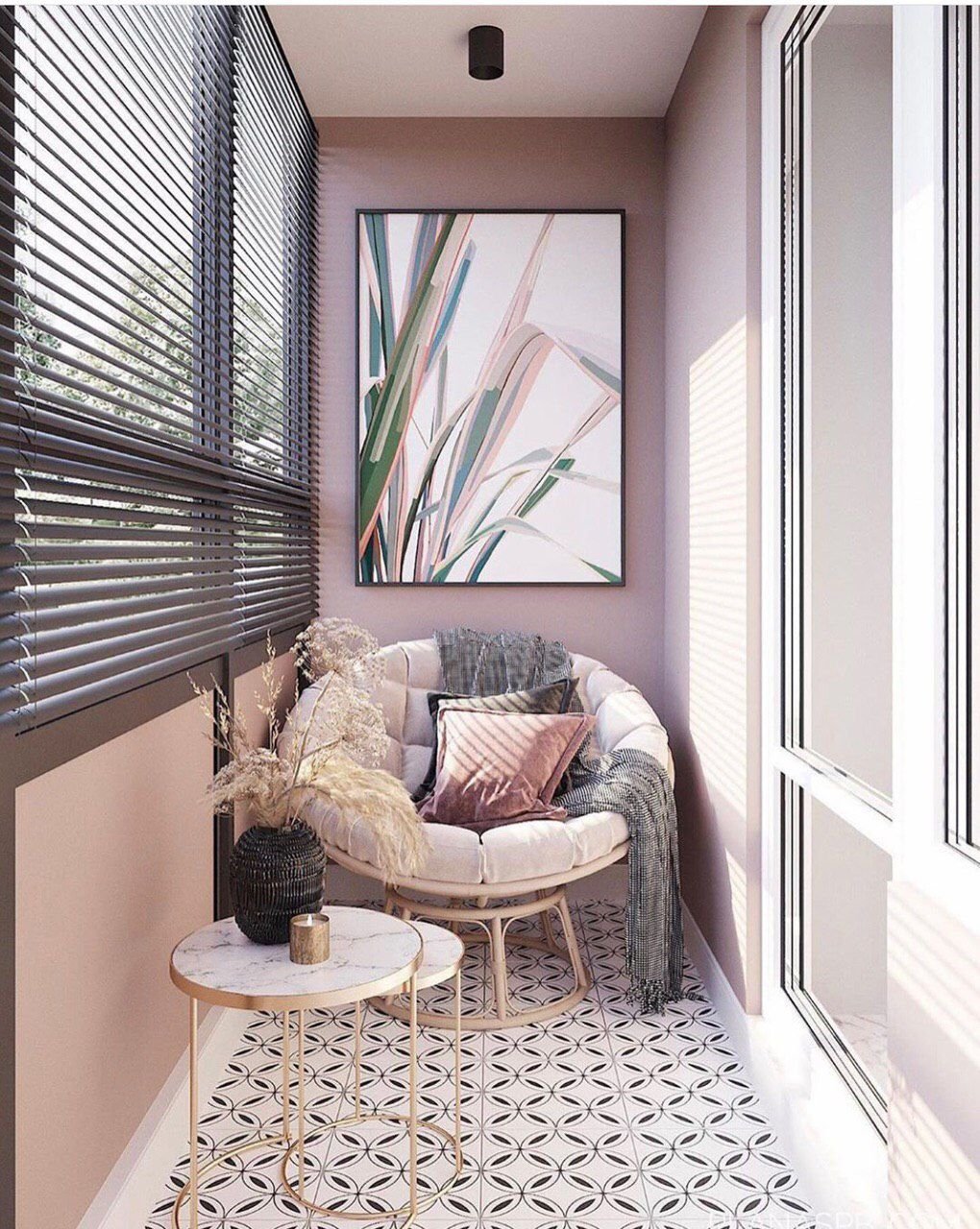 Розовый балкон интерьер