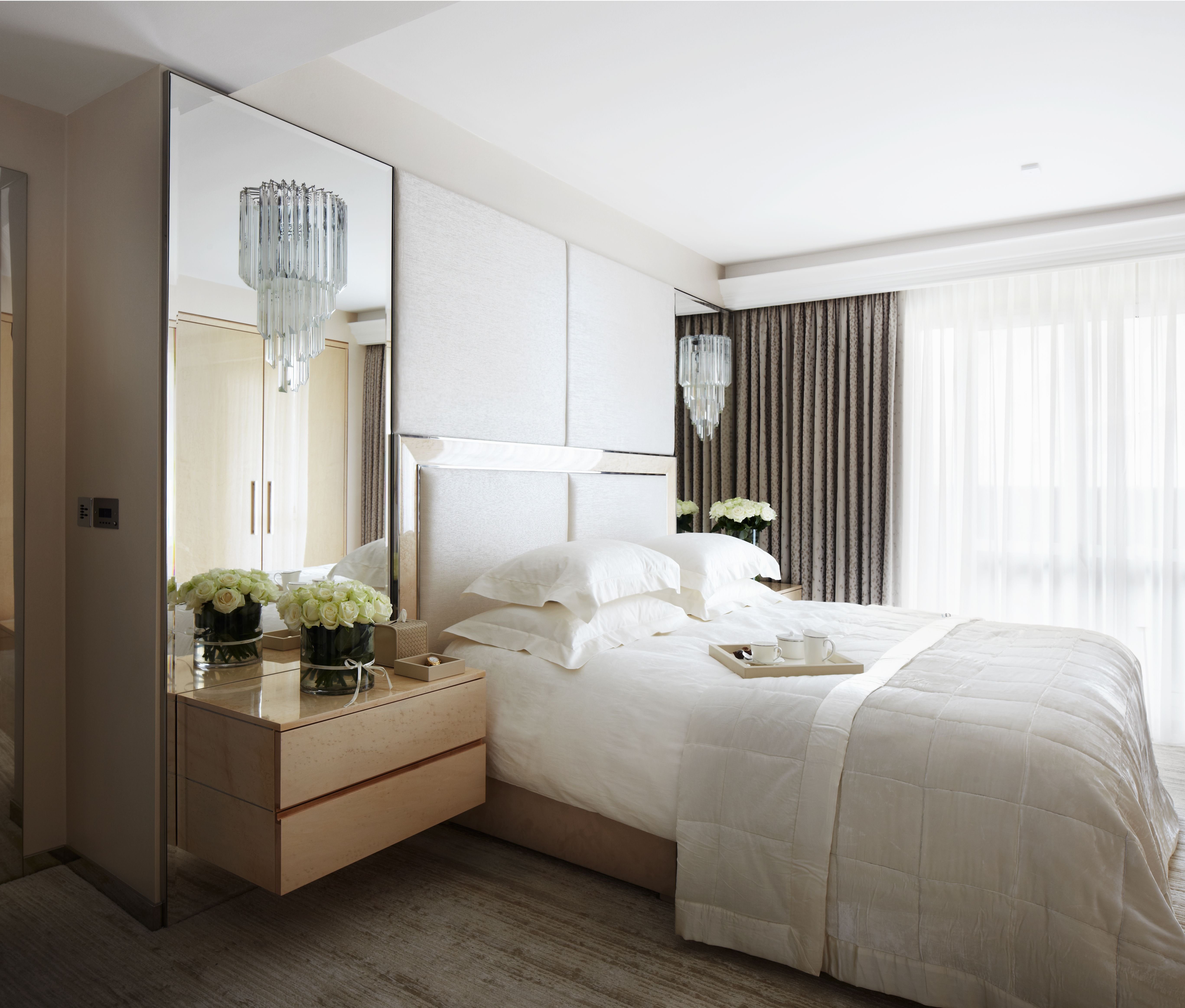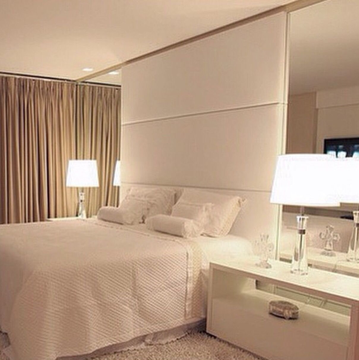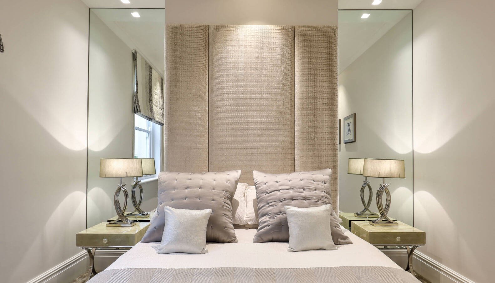 Зеркальные шкафы по бокам кровати