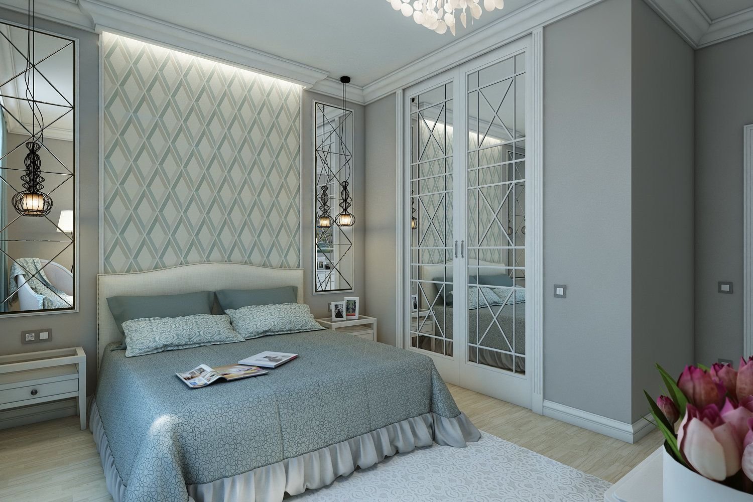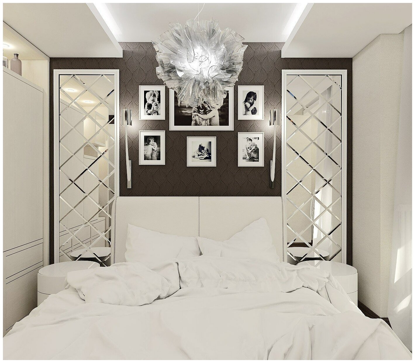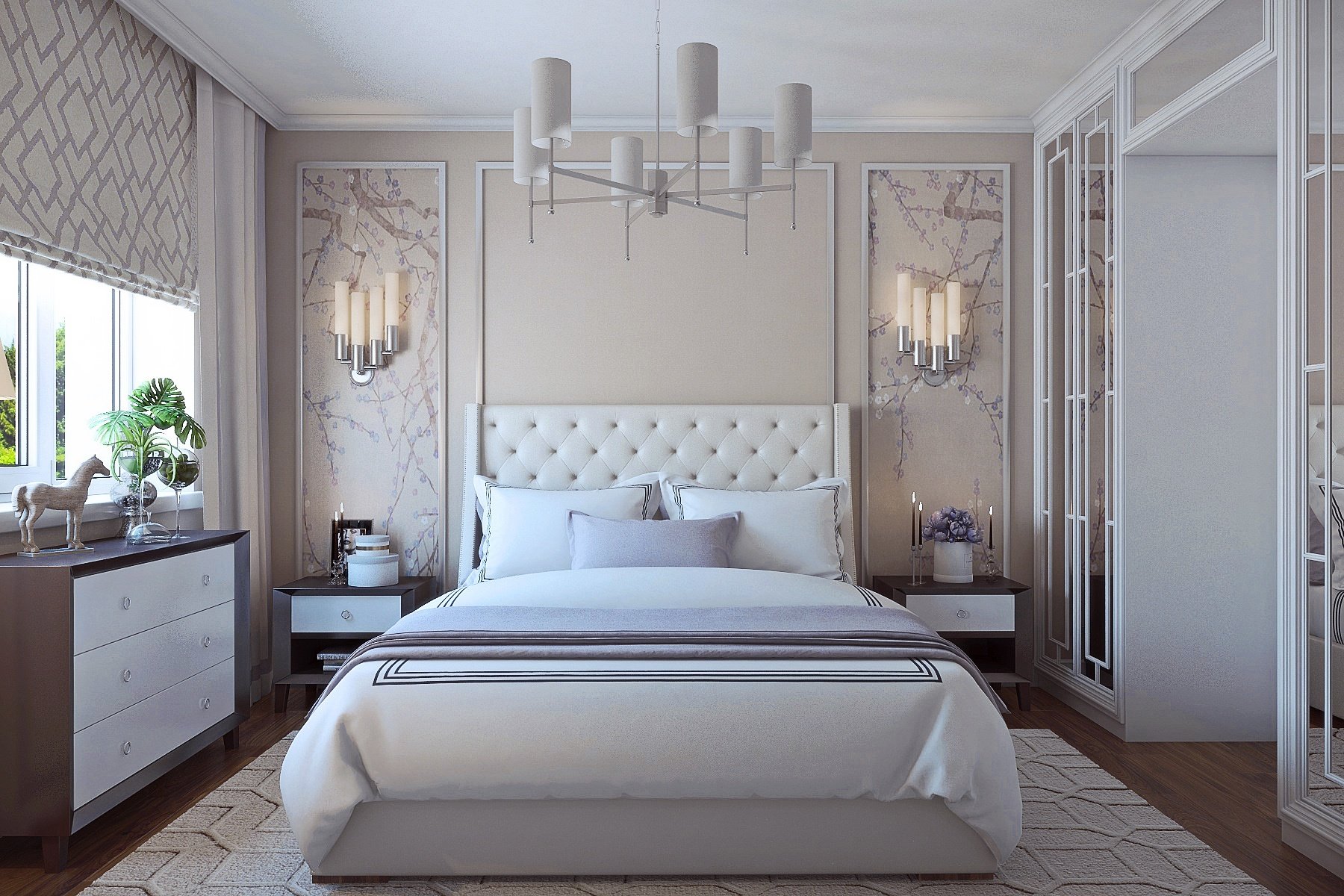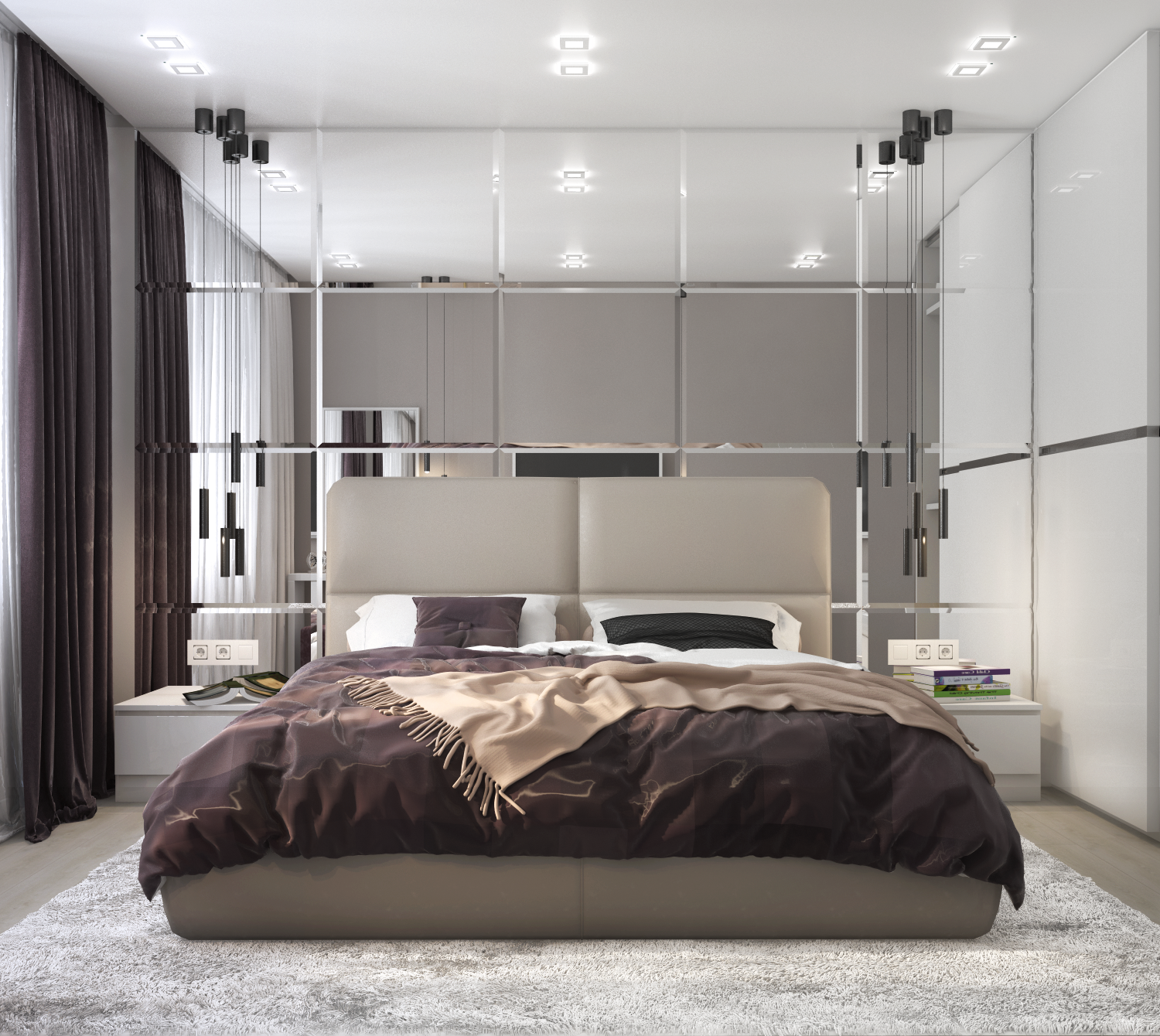 Зеркальные шкафы по бокам кровати