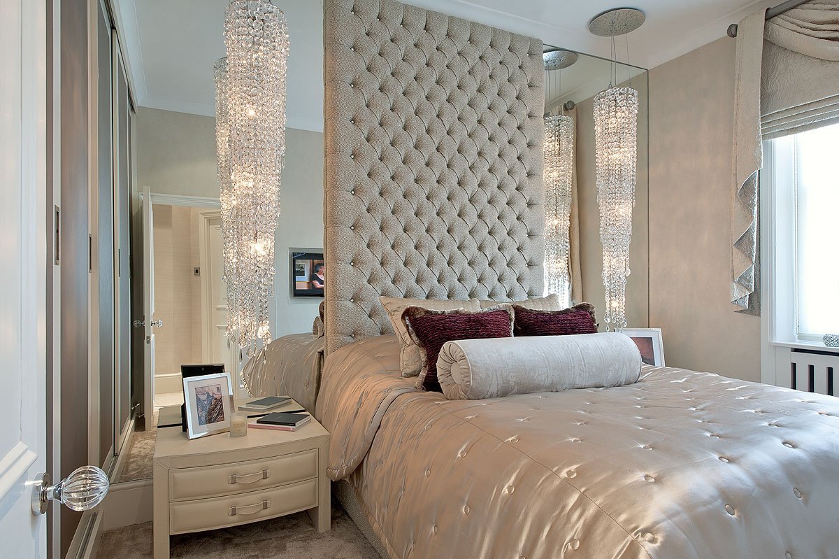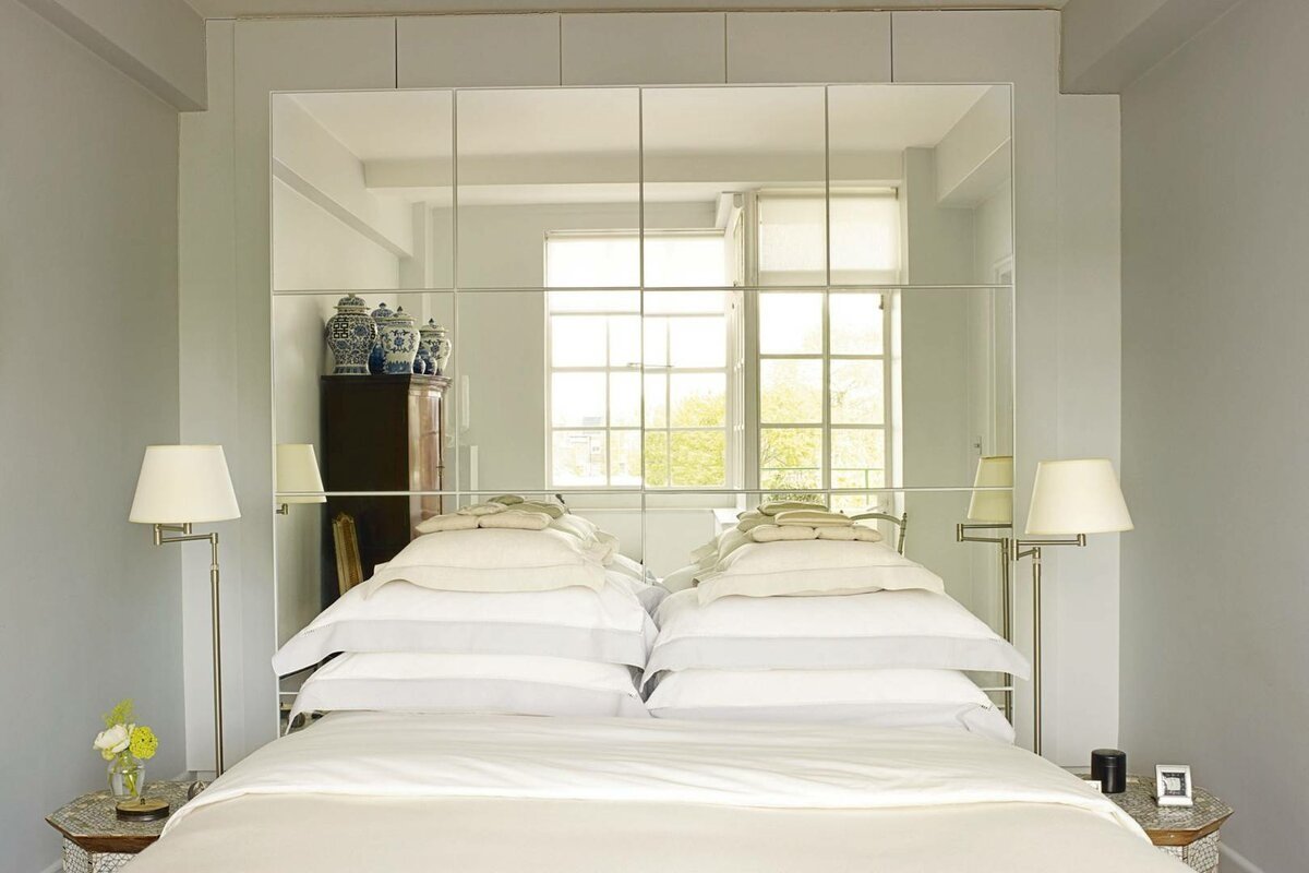Зеркальная стена за изголовьем кровати