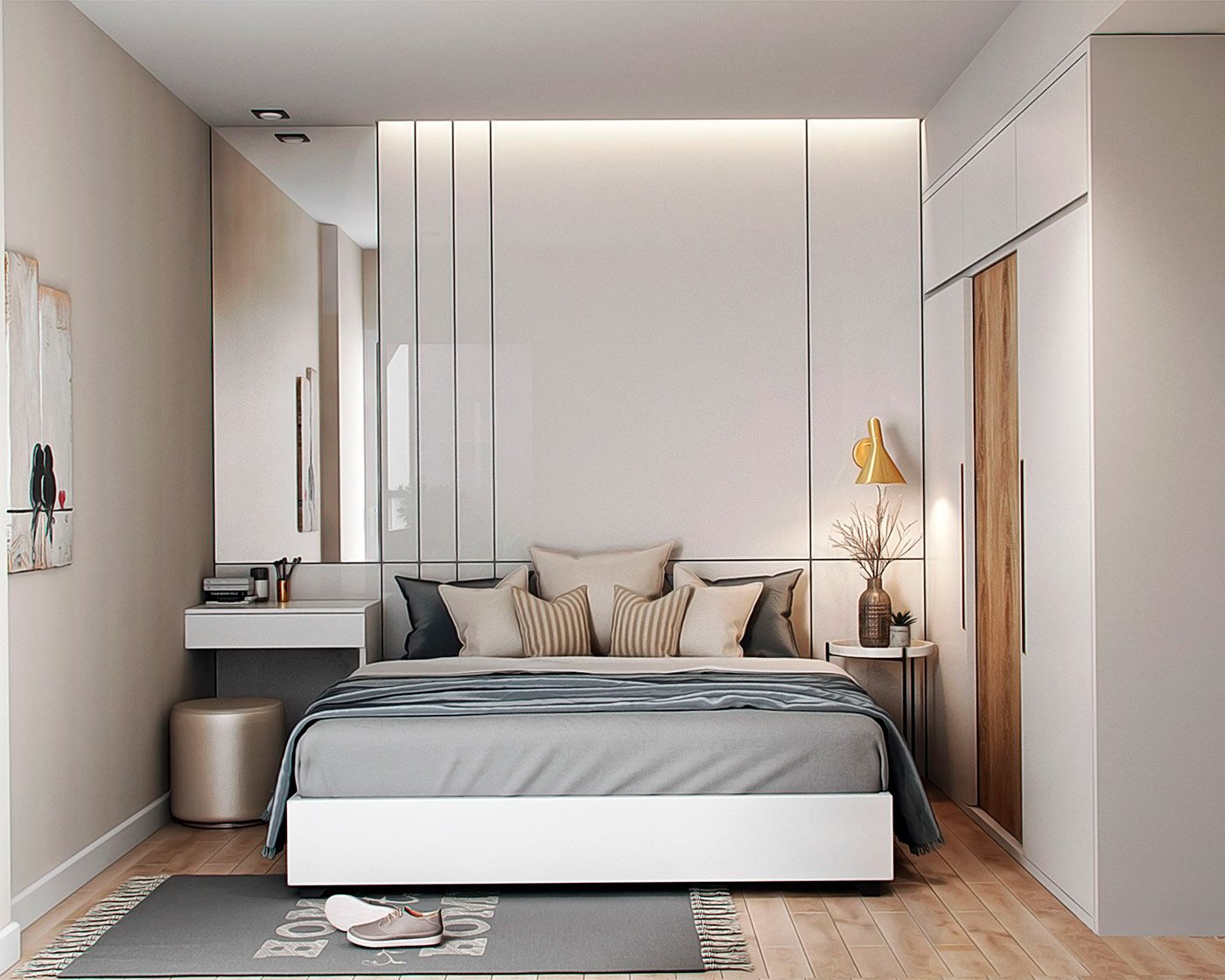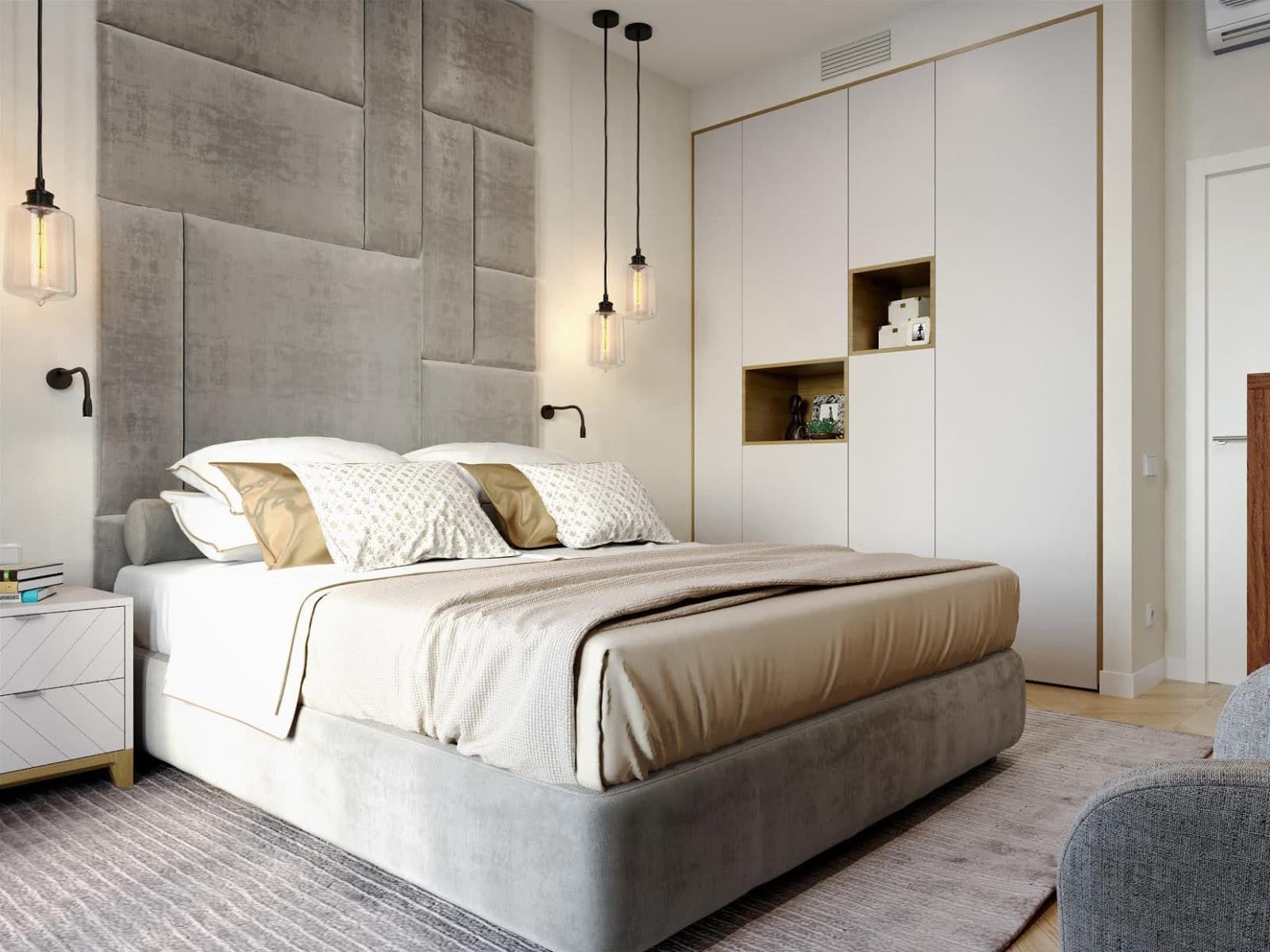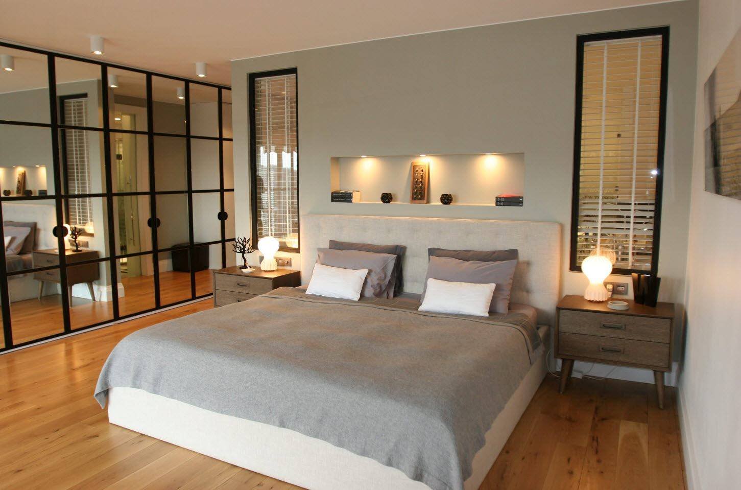 Серая спальня шкаф вокруг кровати