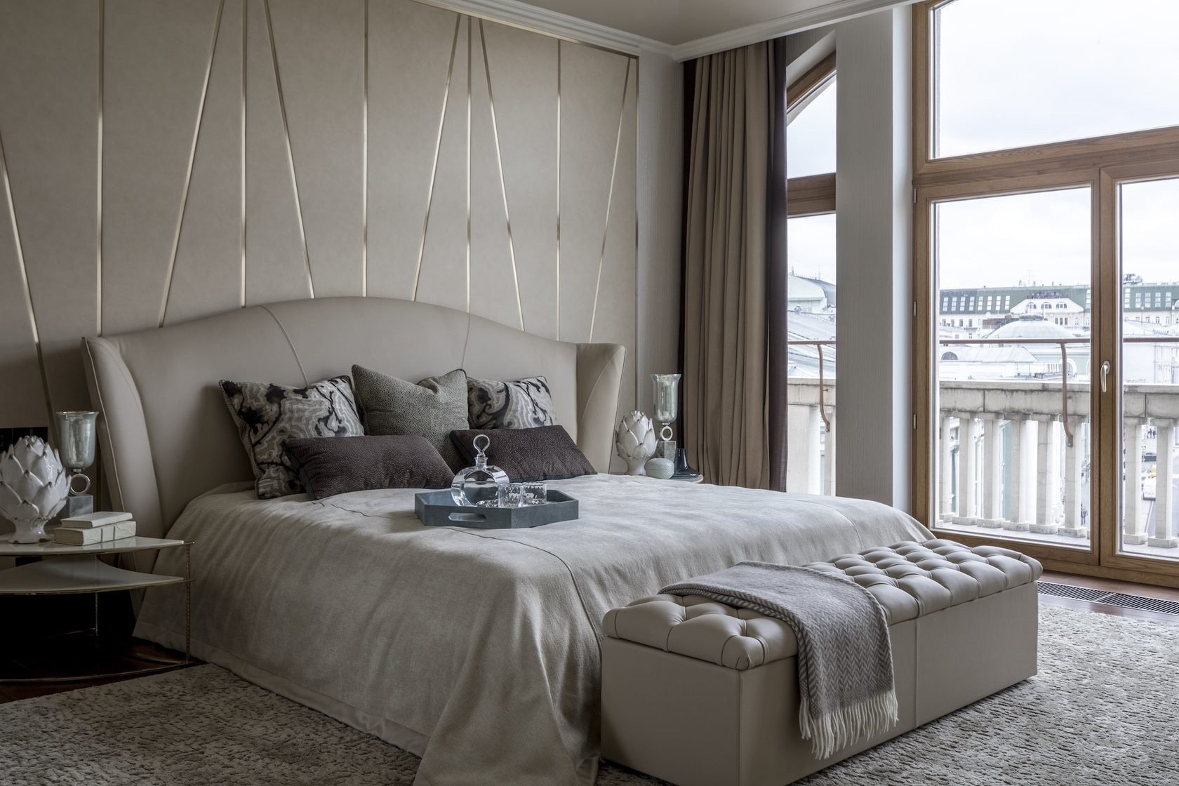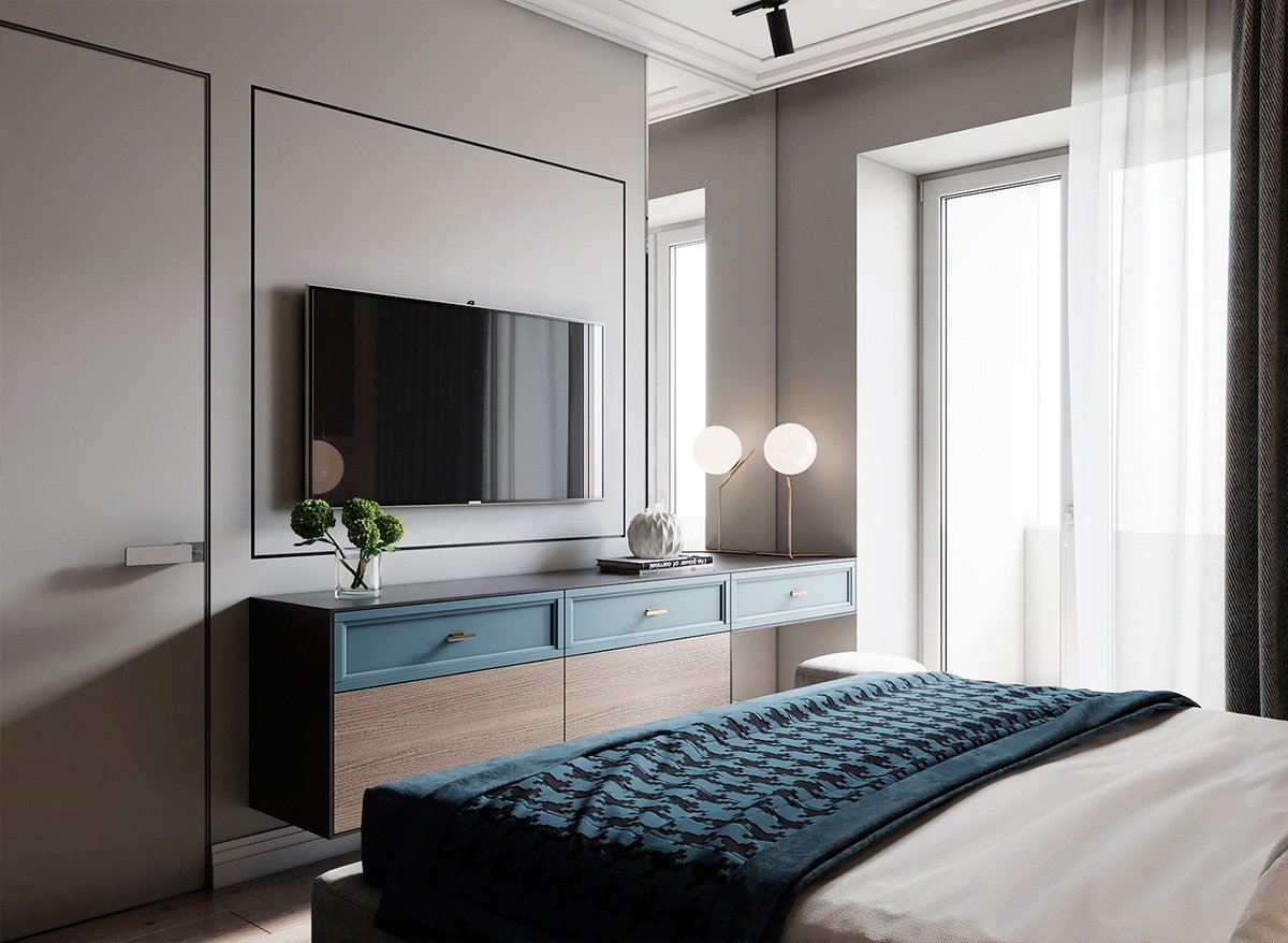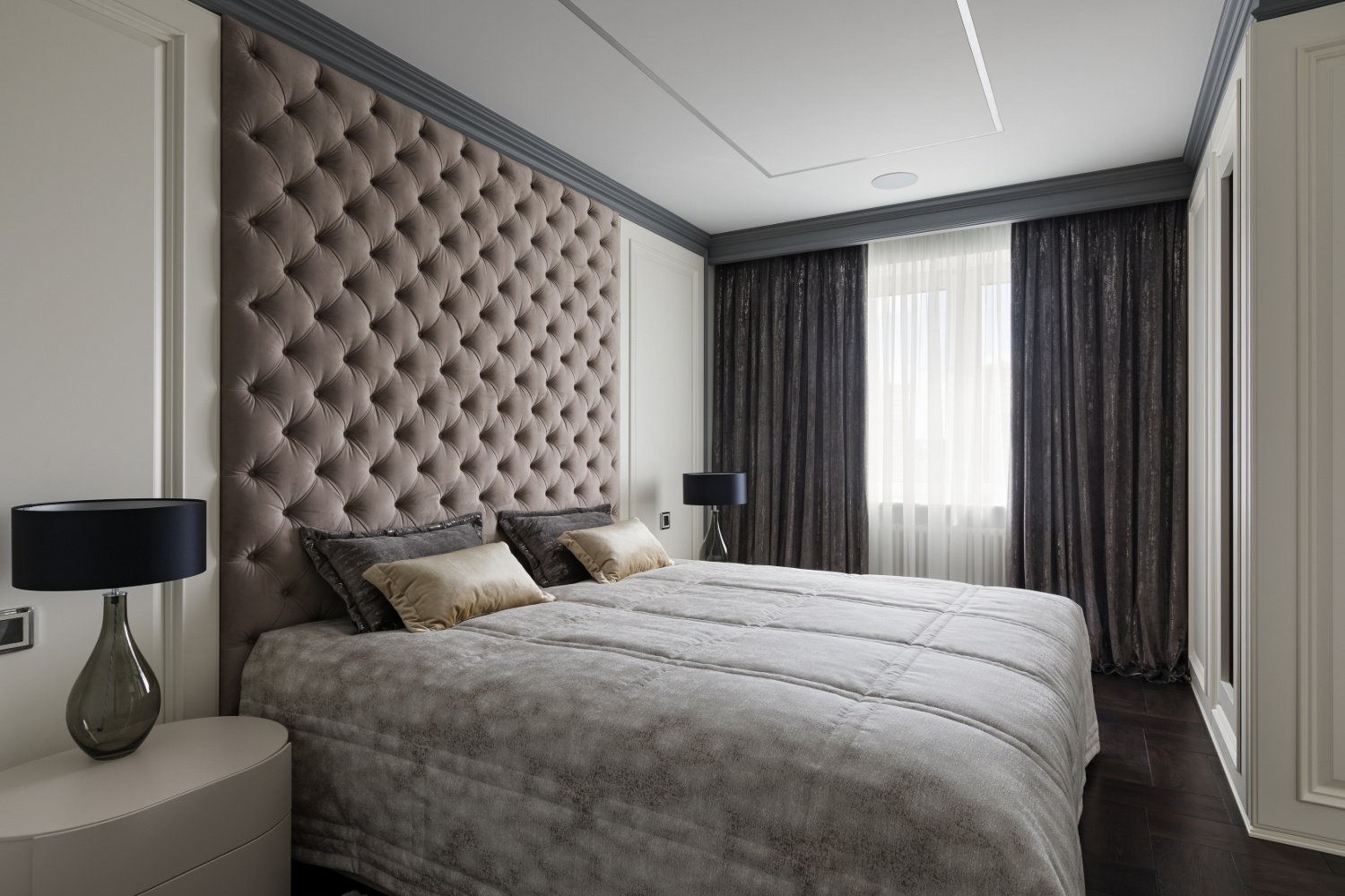 Серая спальня шкаф вокруг кровати
