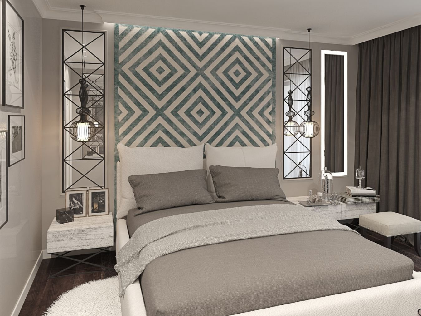 Спальня в стиле ар-деко с зеркалами
