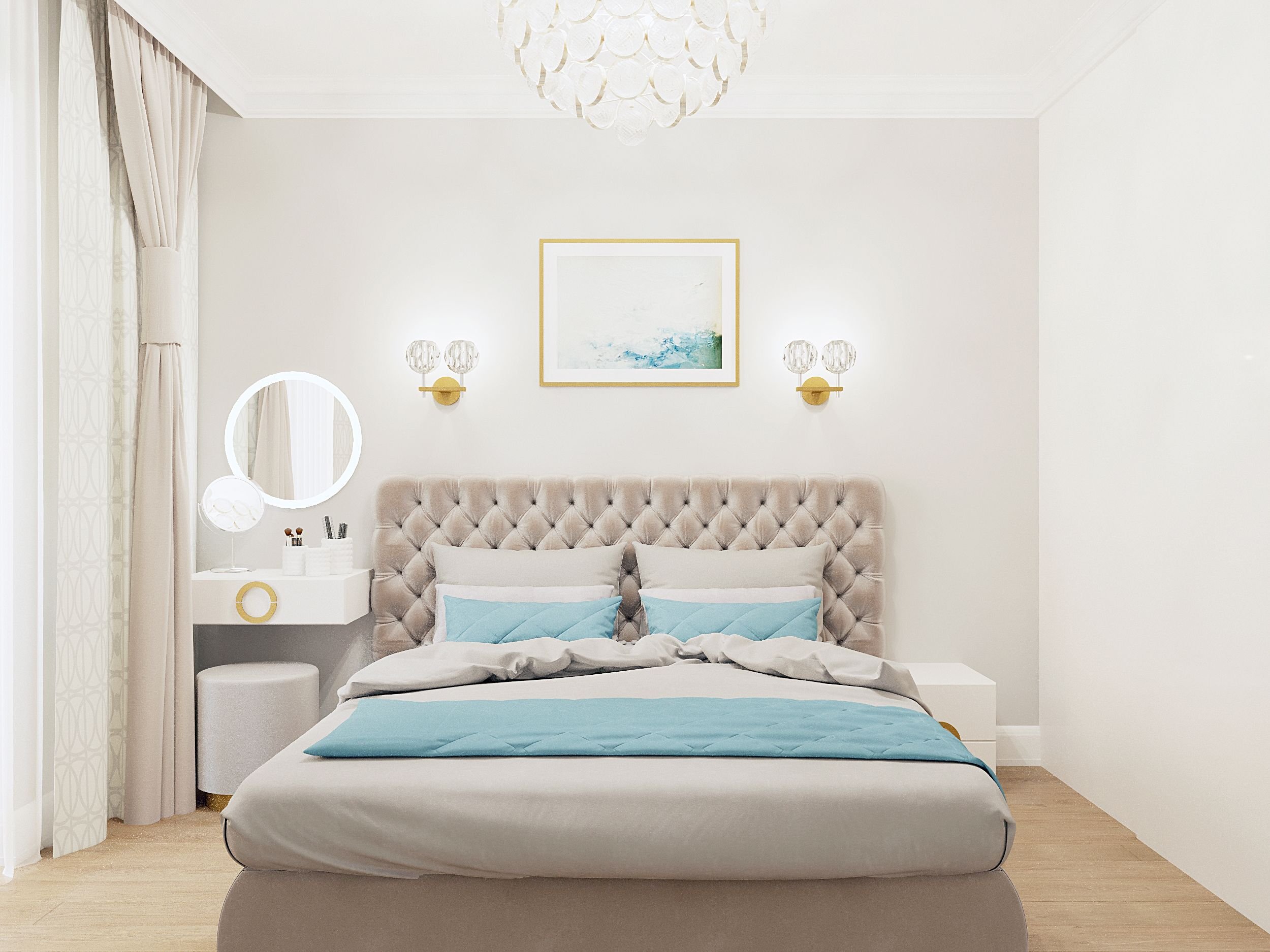 Светлая кровать в интерьере