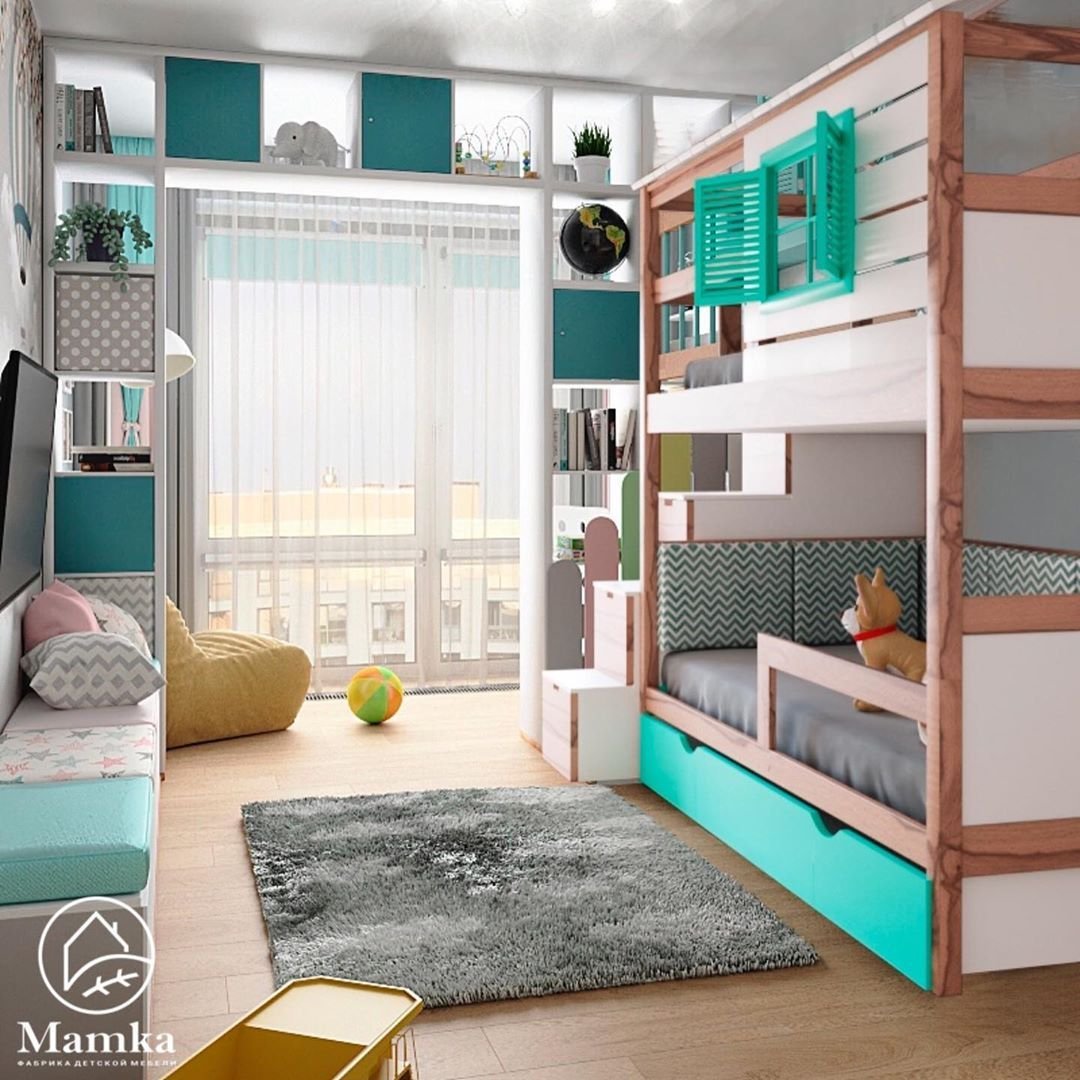 Детская для двоих разнополых с двухъярусной кроватью 20 кв.м