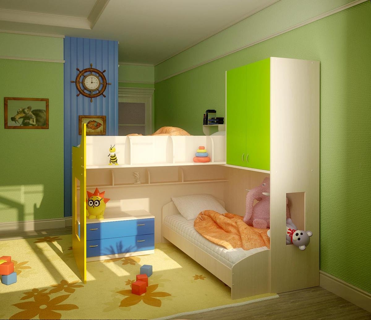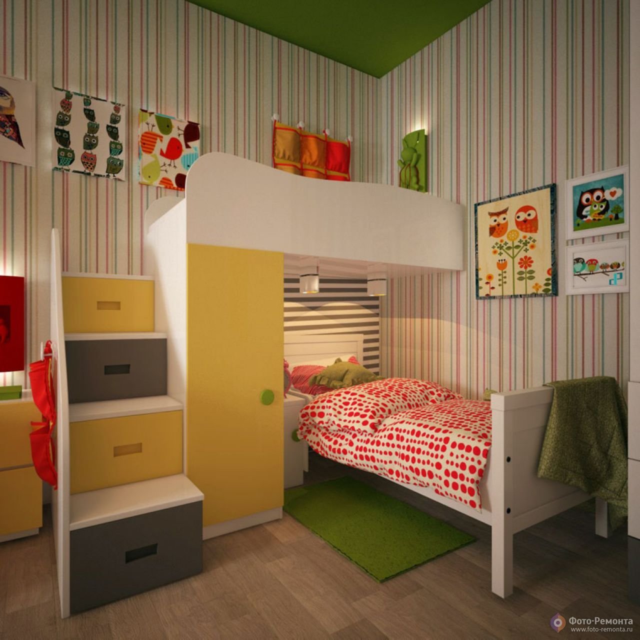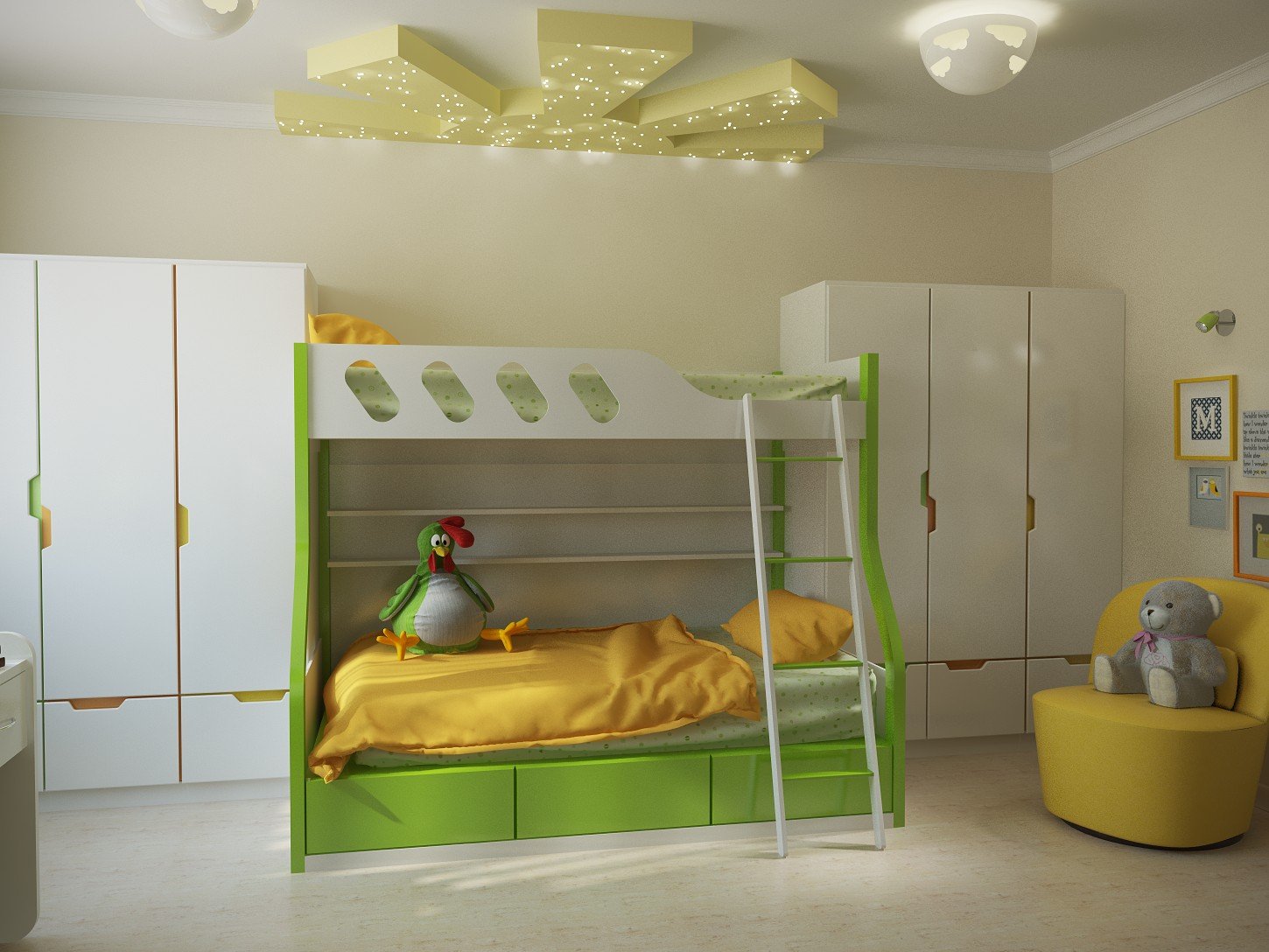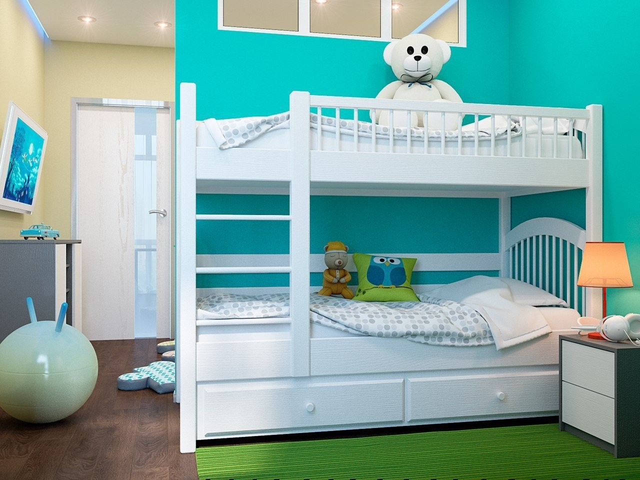 Интерьер детской для двоих разнополых с двухъярусной кроватью