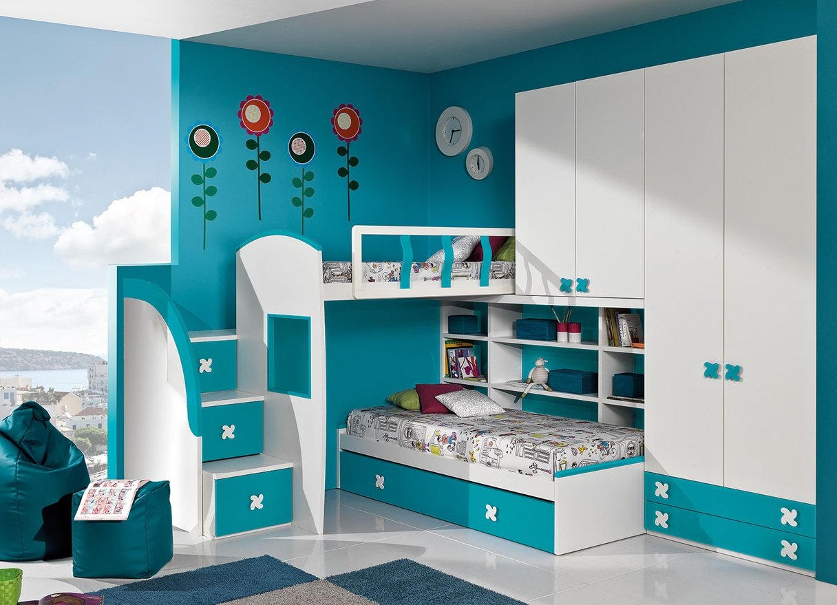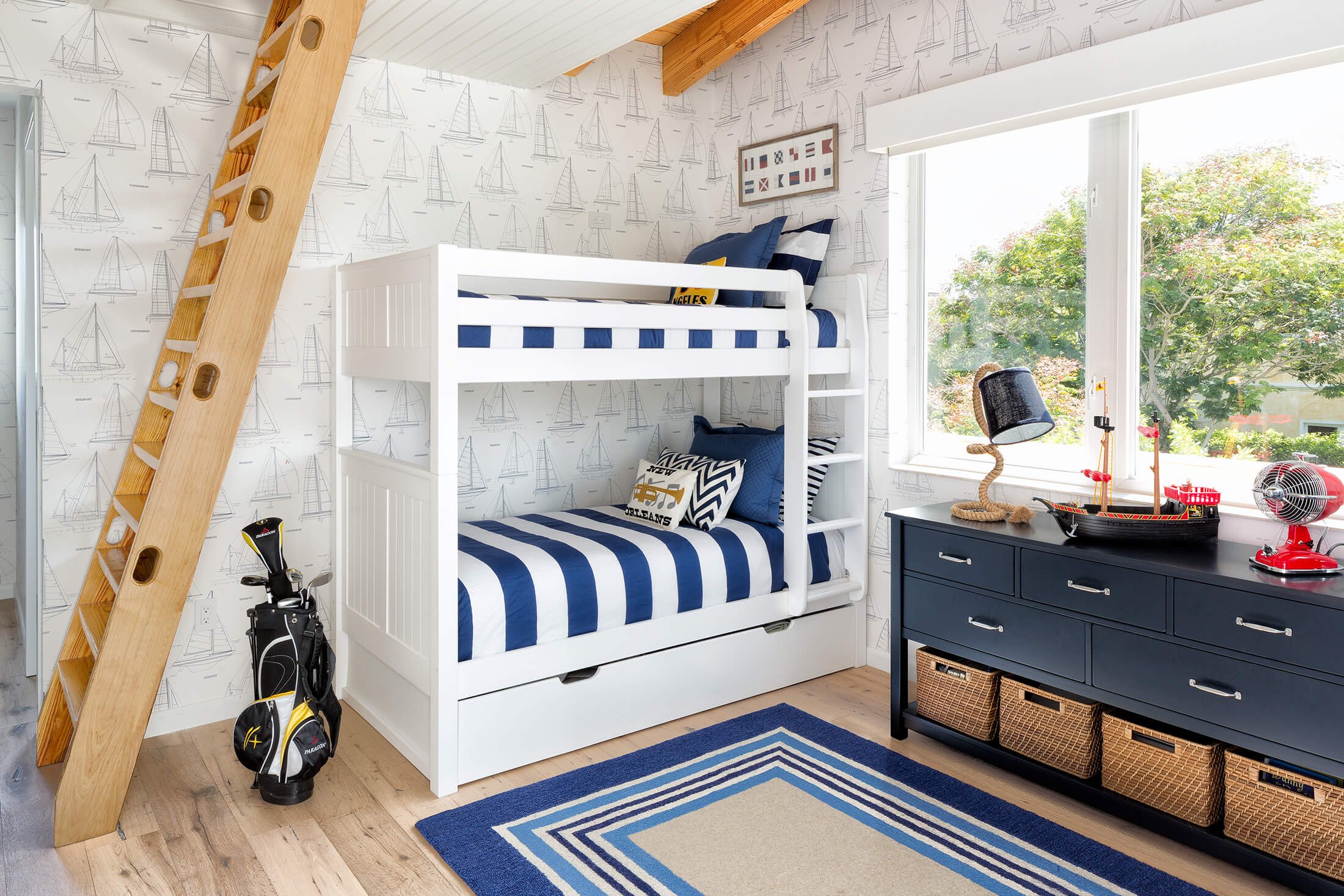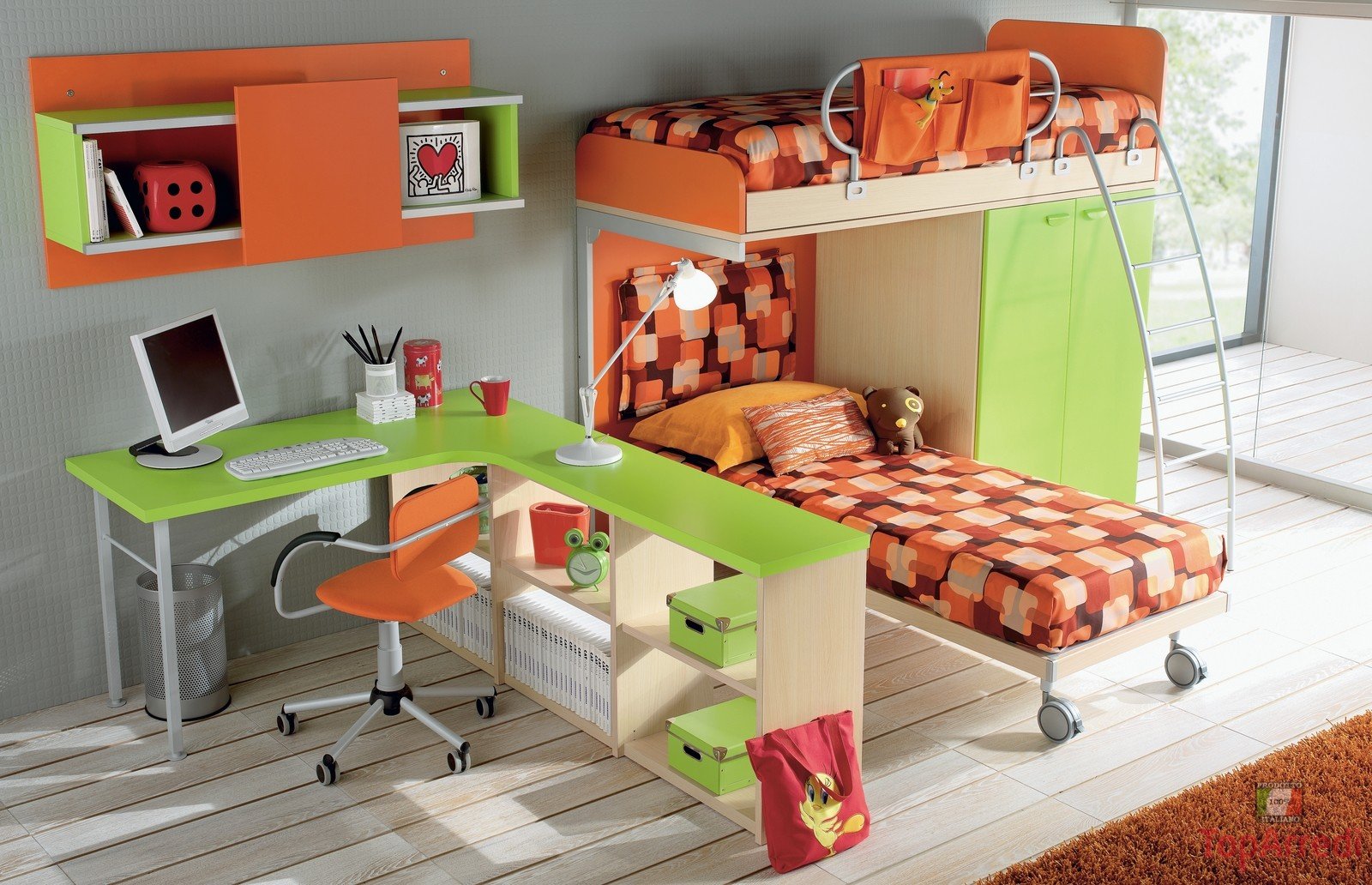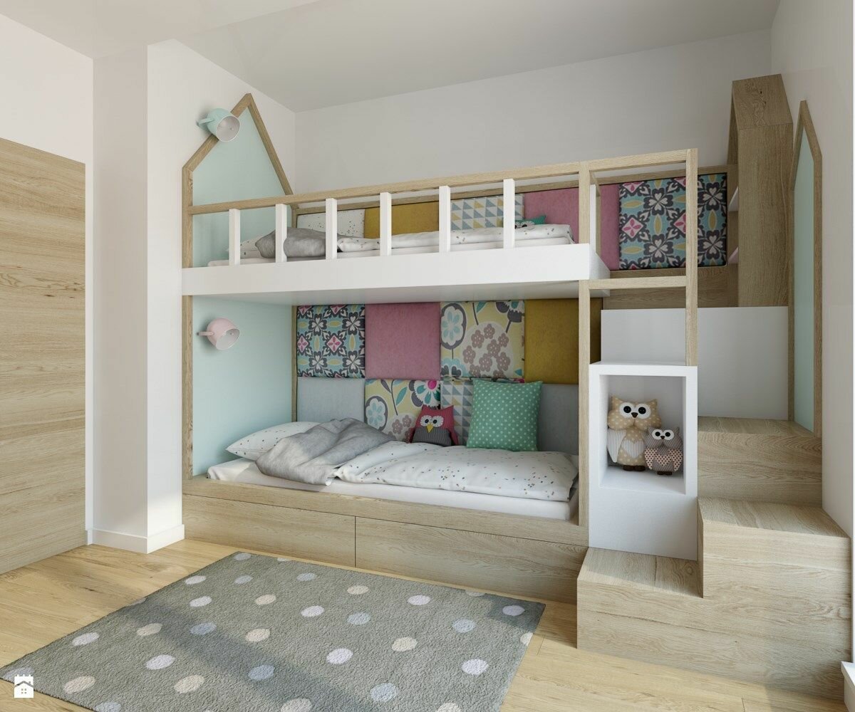 Интерьер детской для двоих разнополых с двухъярусной кроватью