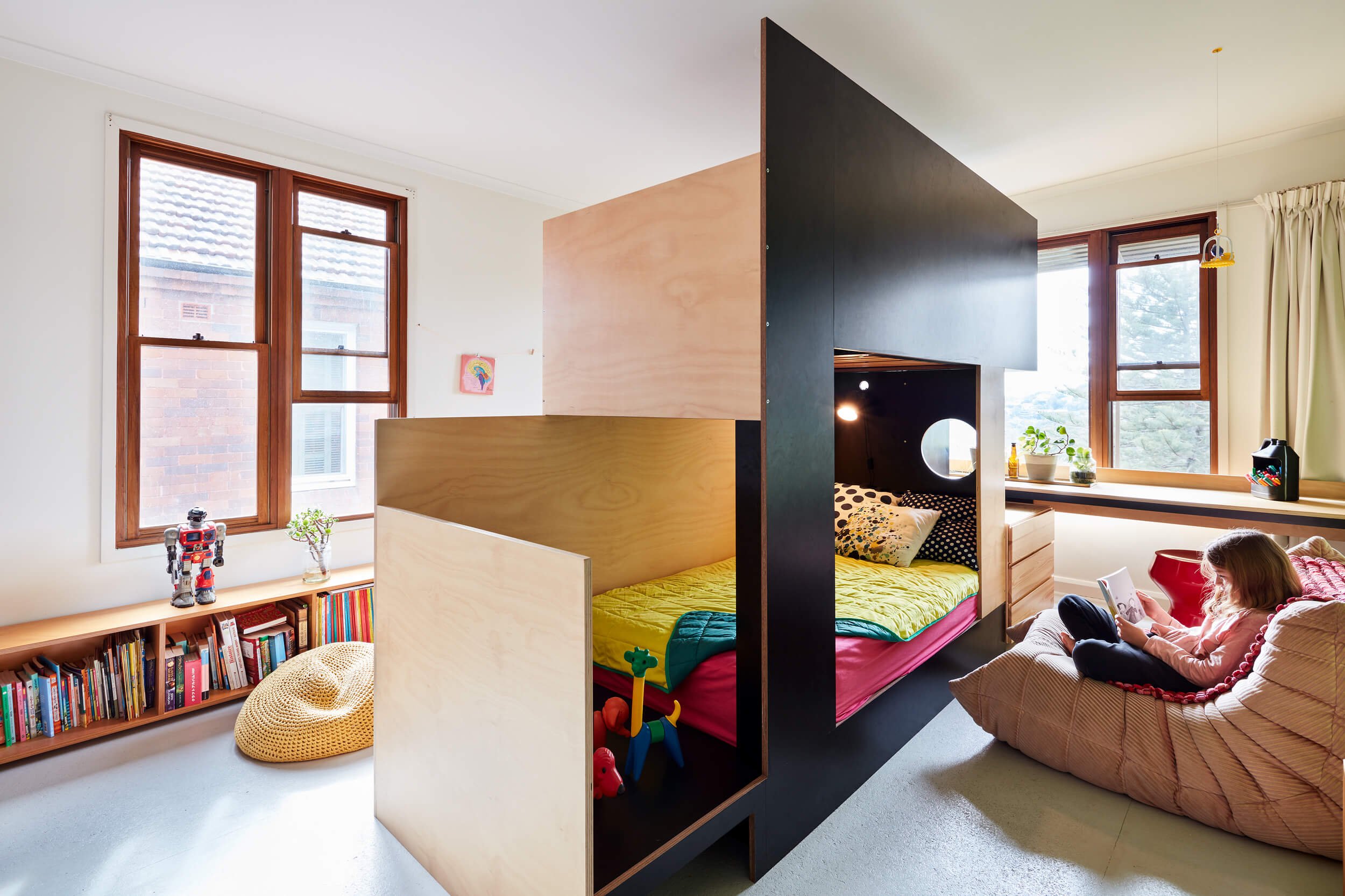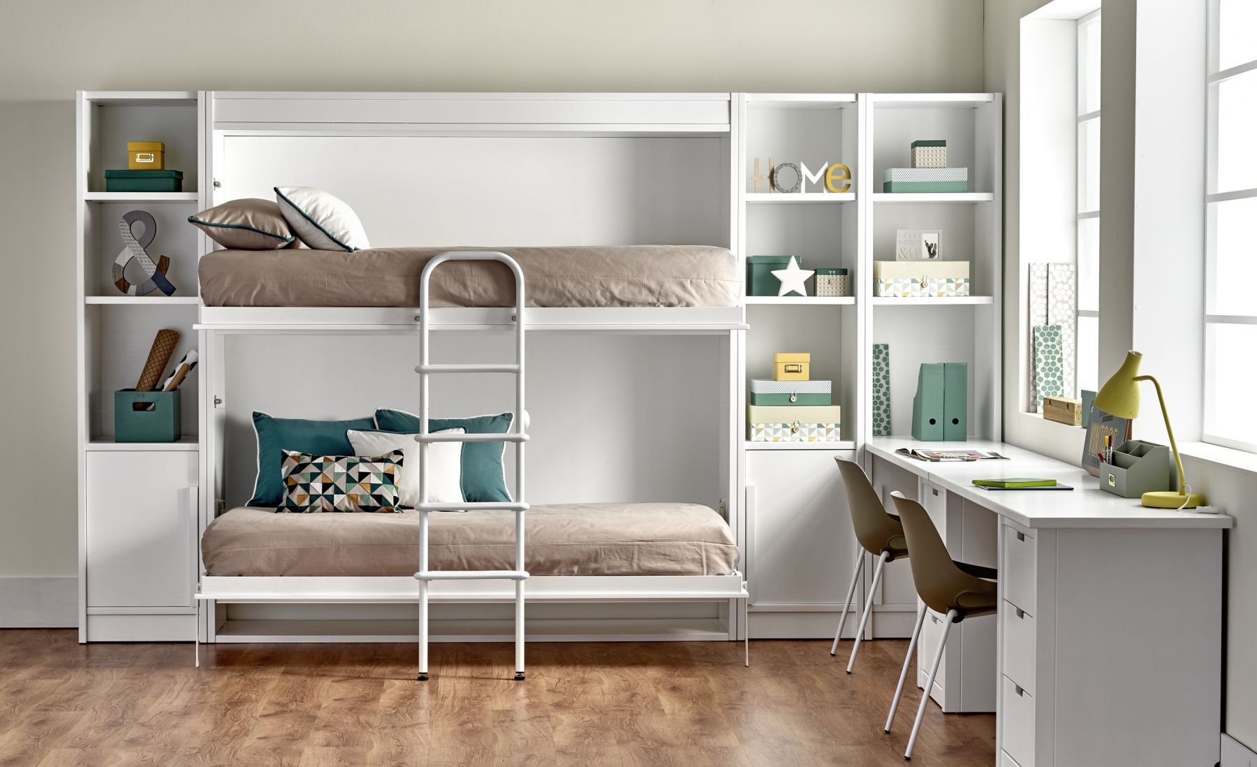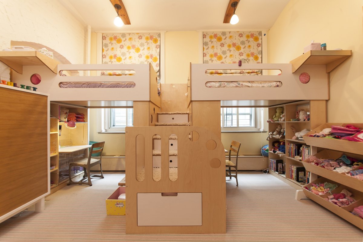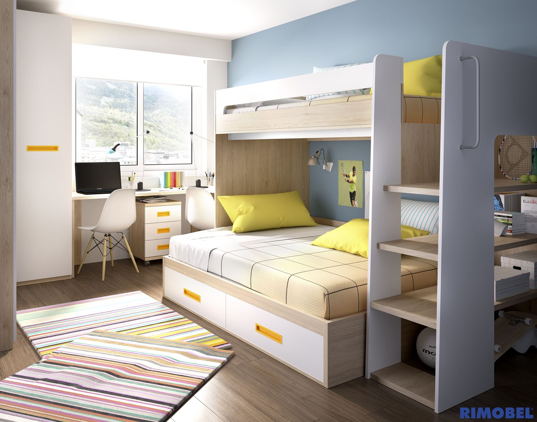 Интерьер детской для двоих разнополых с двухъярусной кроватью