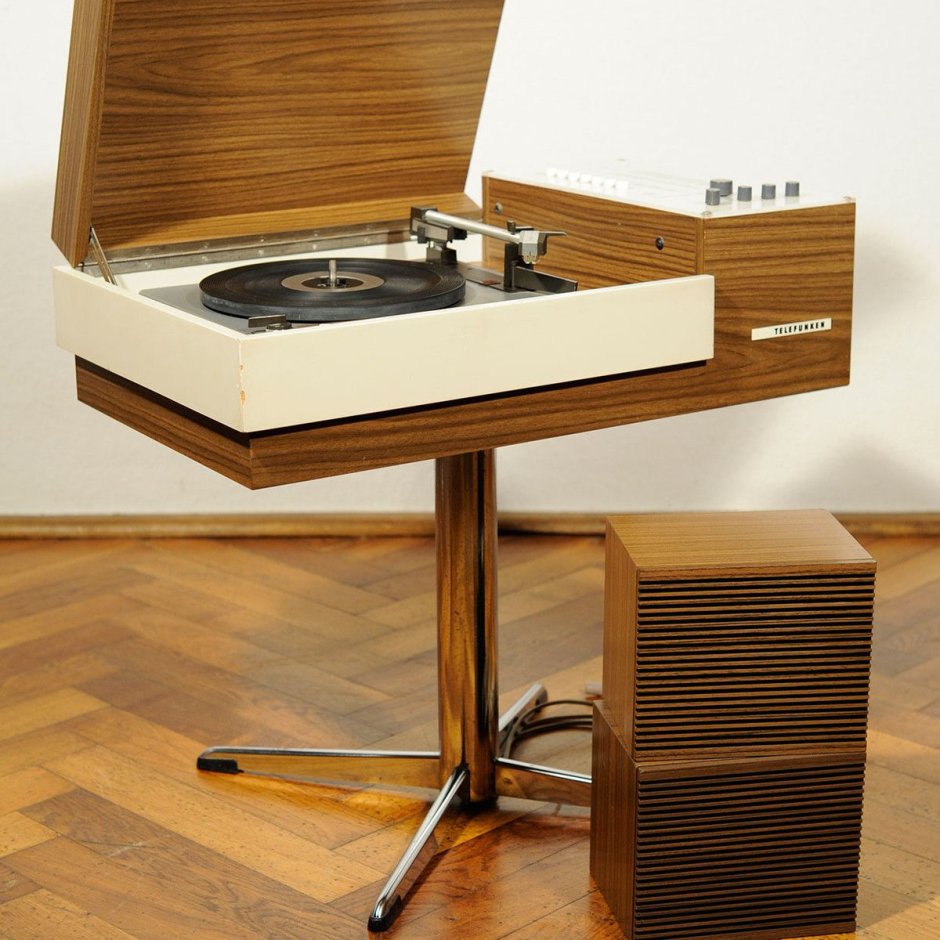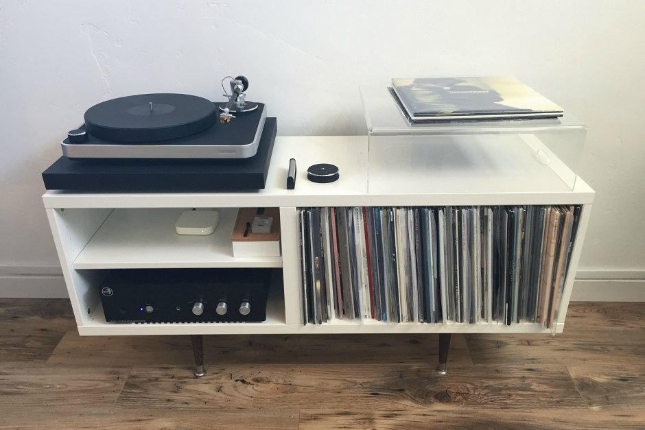 Проигрыватель виниловых пластинок в интерьере Сканди
