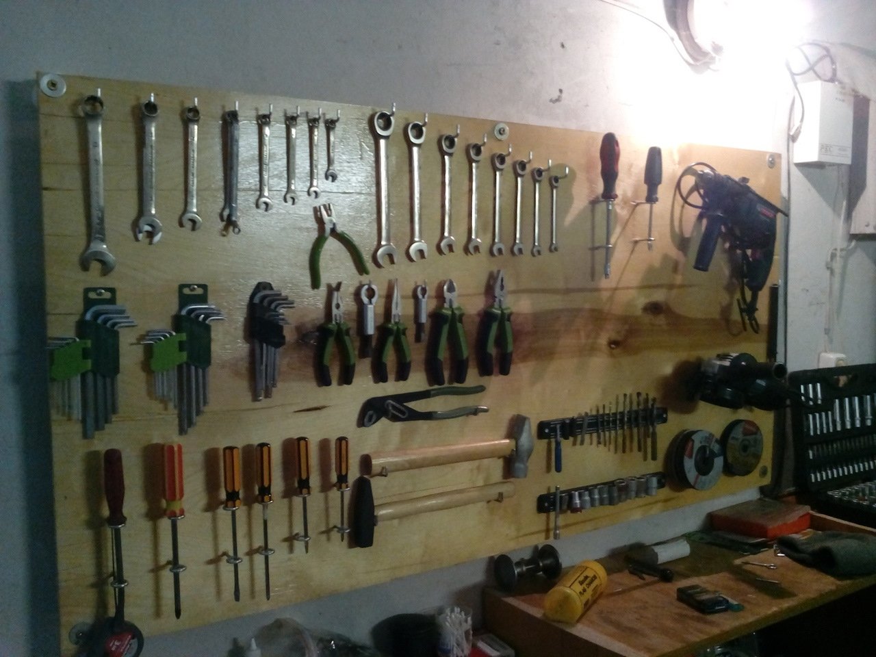 Размещение инструмента на стене в мастерской