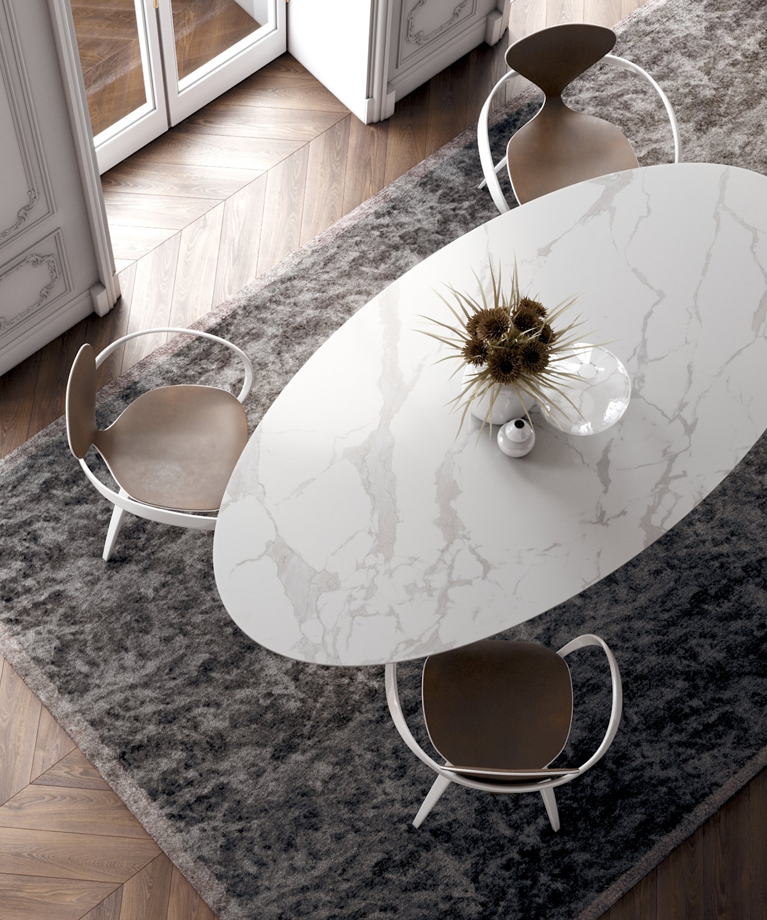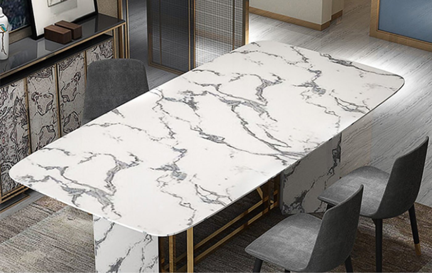Кварц Вайт Марбл обеденный стол