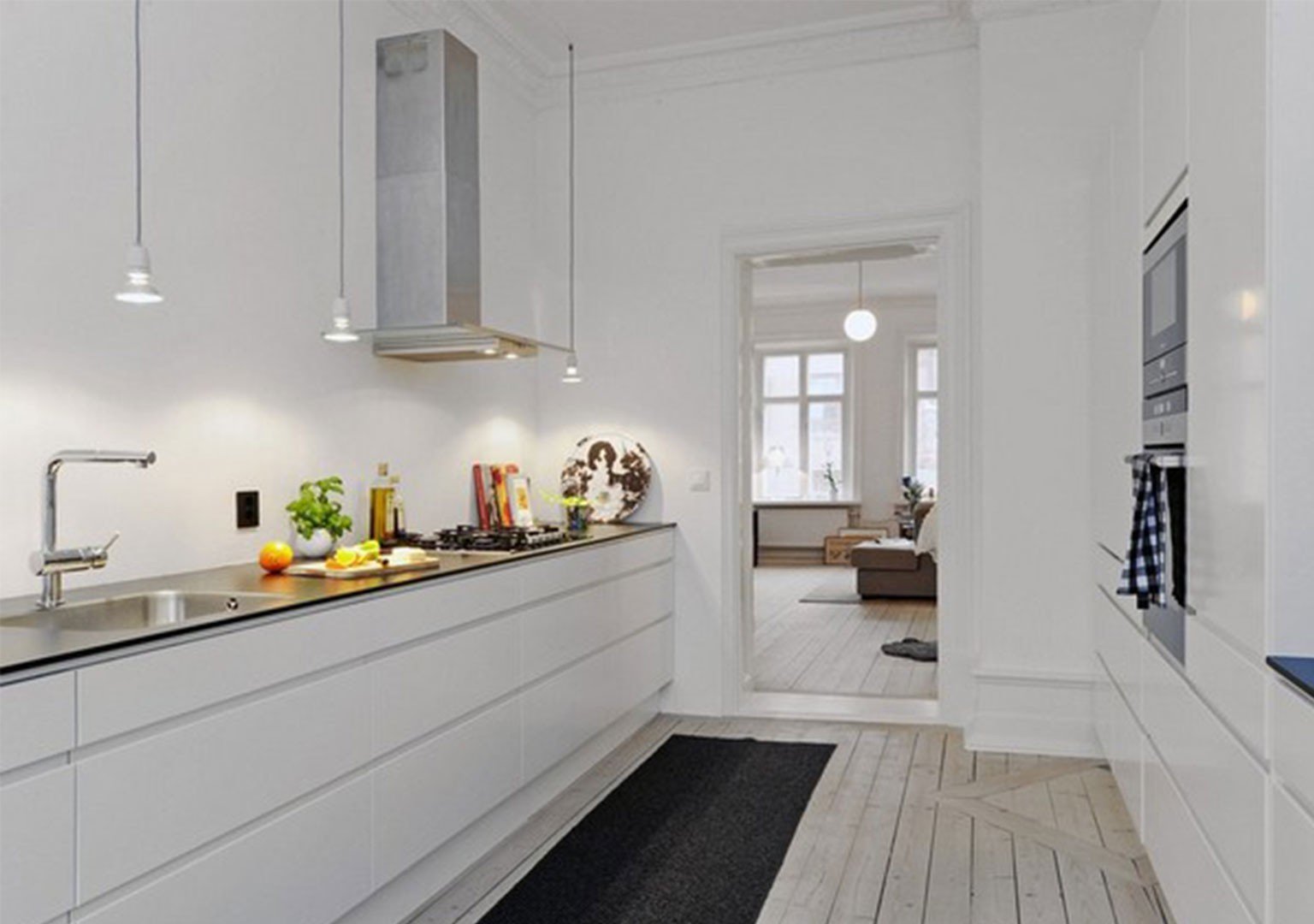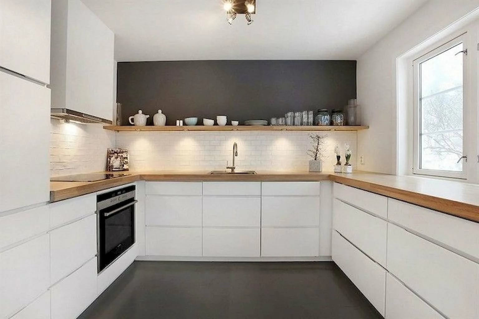 Кухня без верхних шкафов в скандинавском стиле