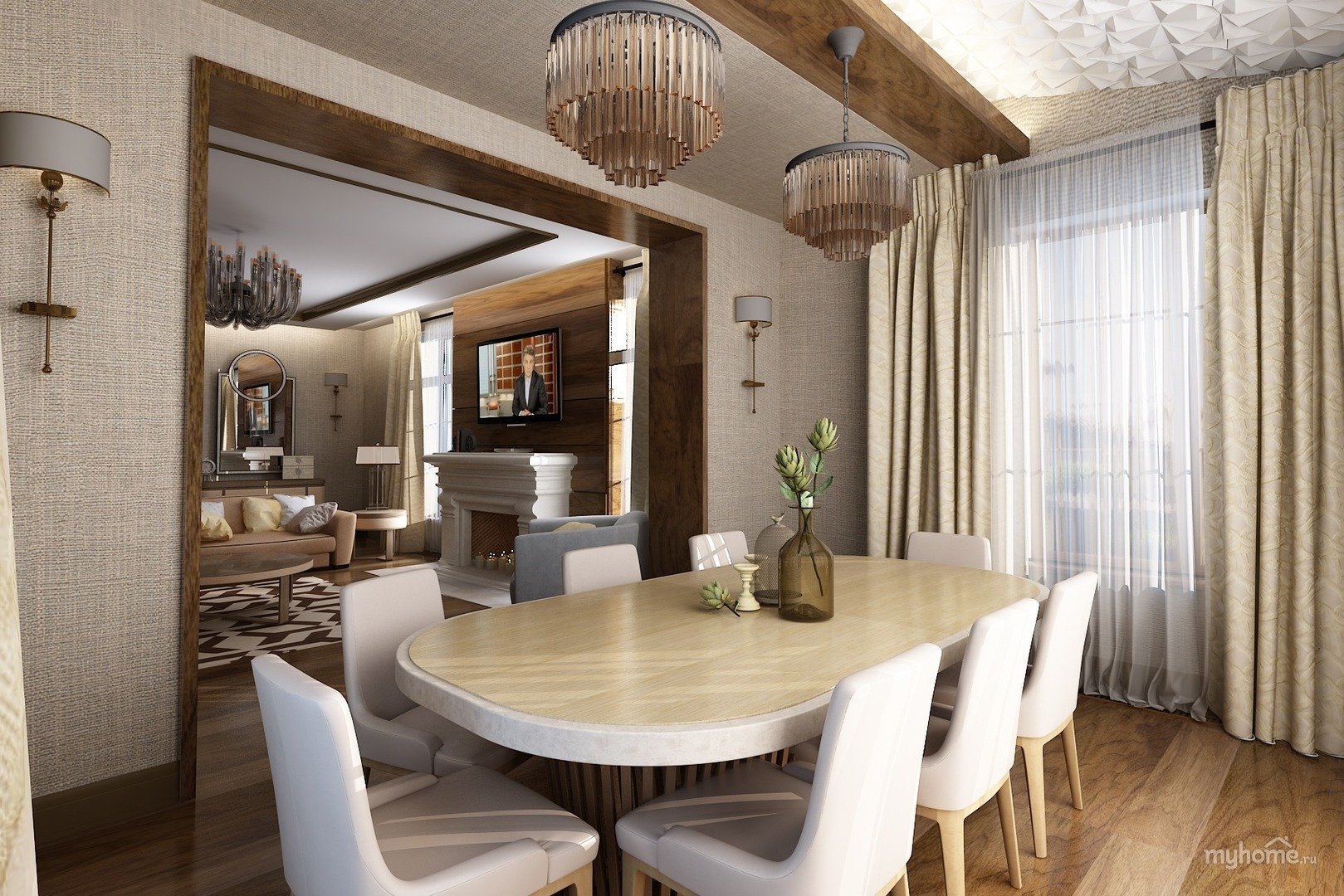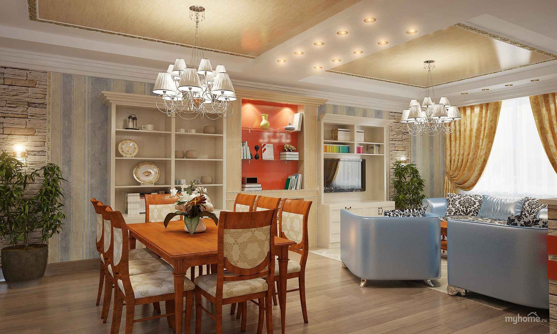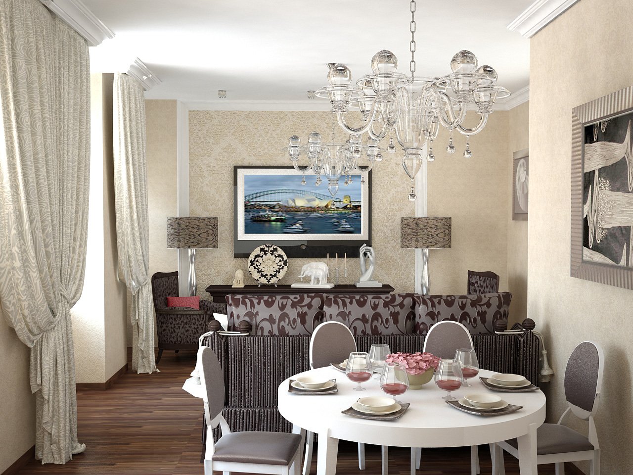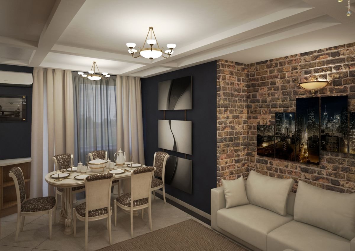 Гостиная столовая современная классика