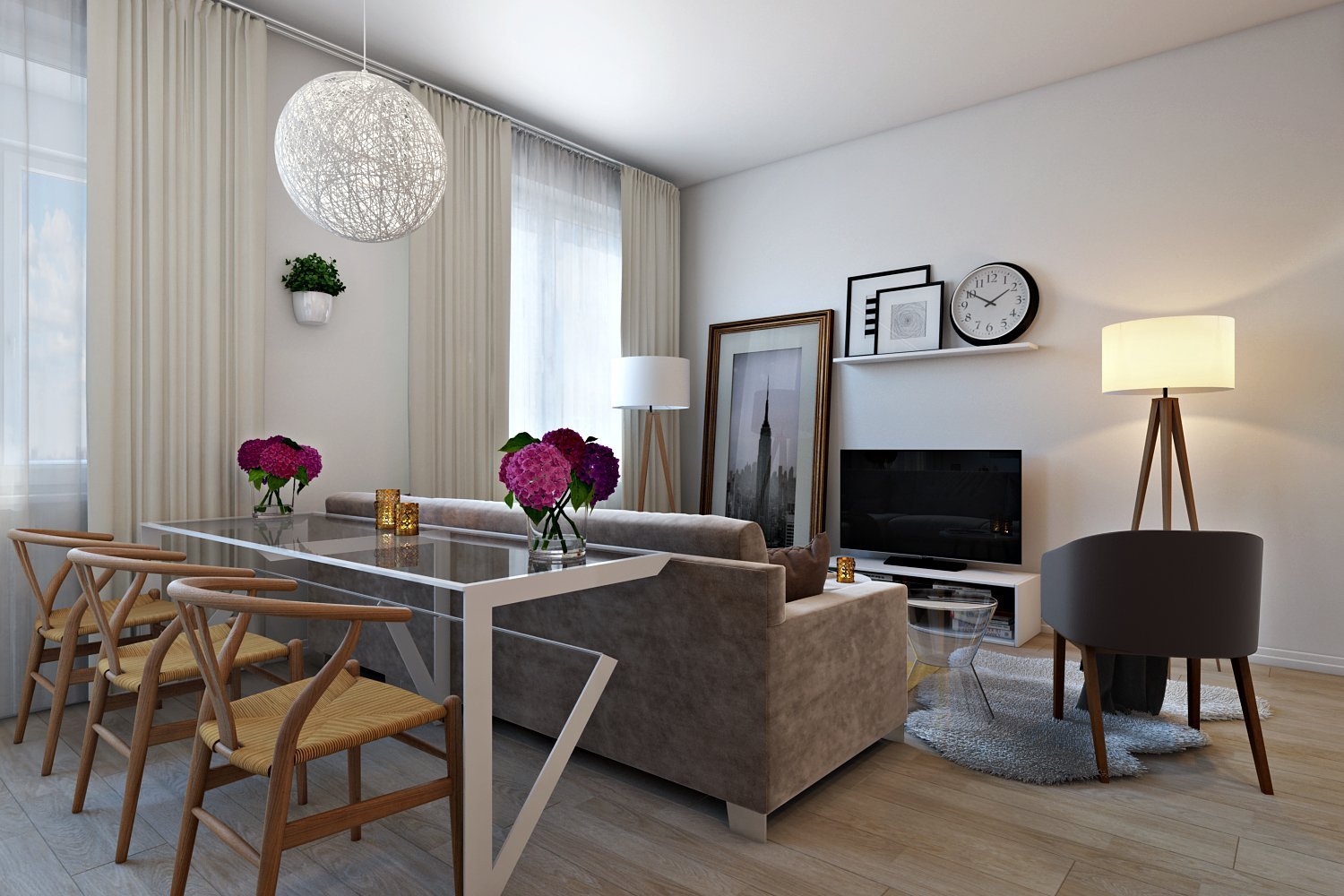 Гостиная совмещенная с обеденным столом