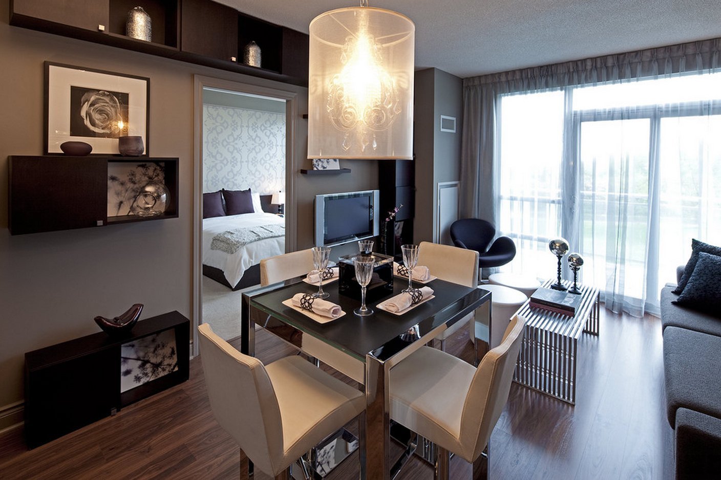 Небольшая гостиная с обеденным столом