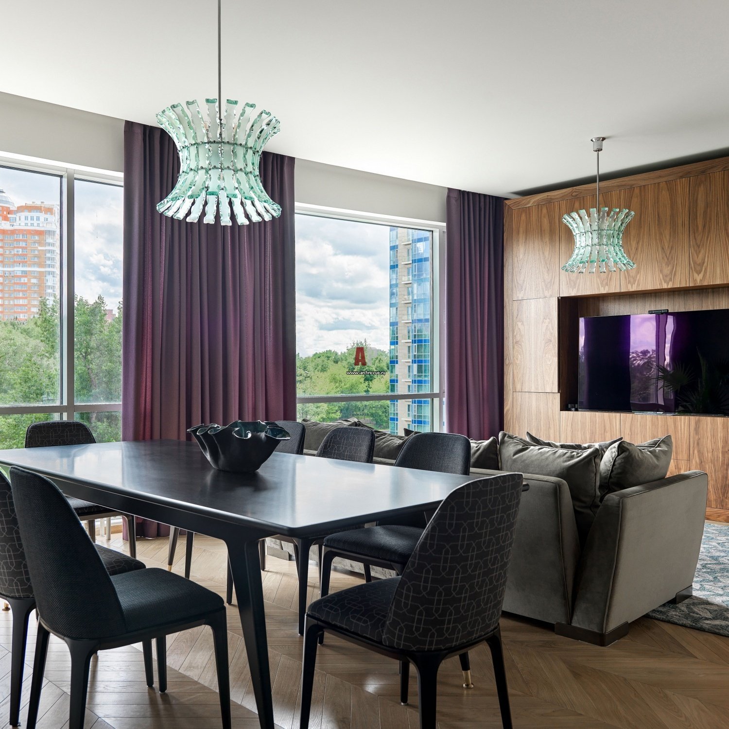Светильники над обеденным столом в гостиной